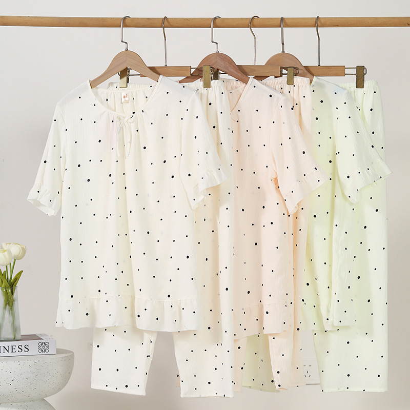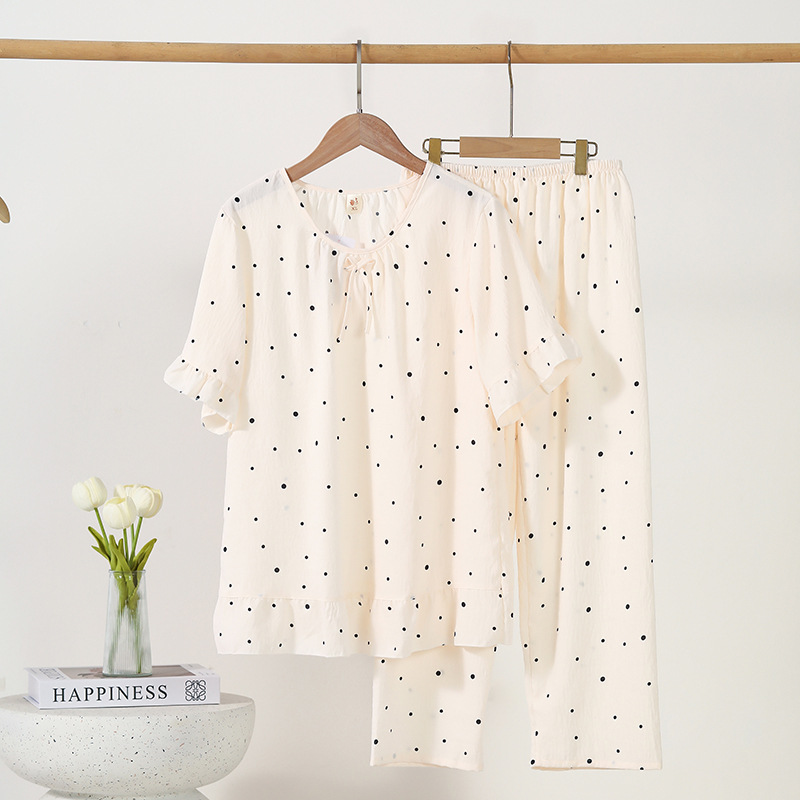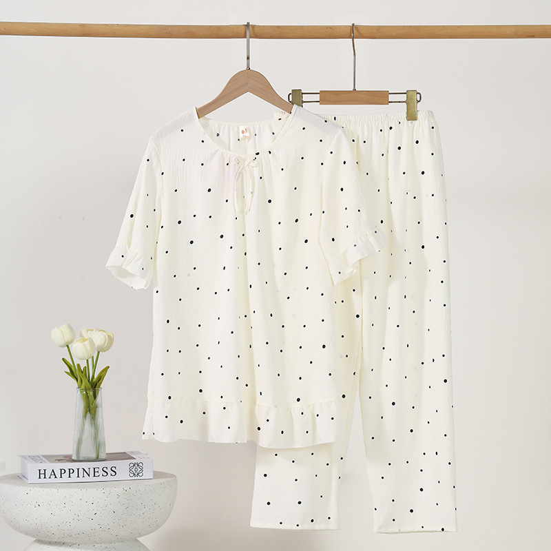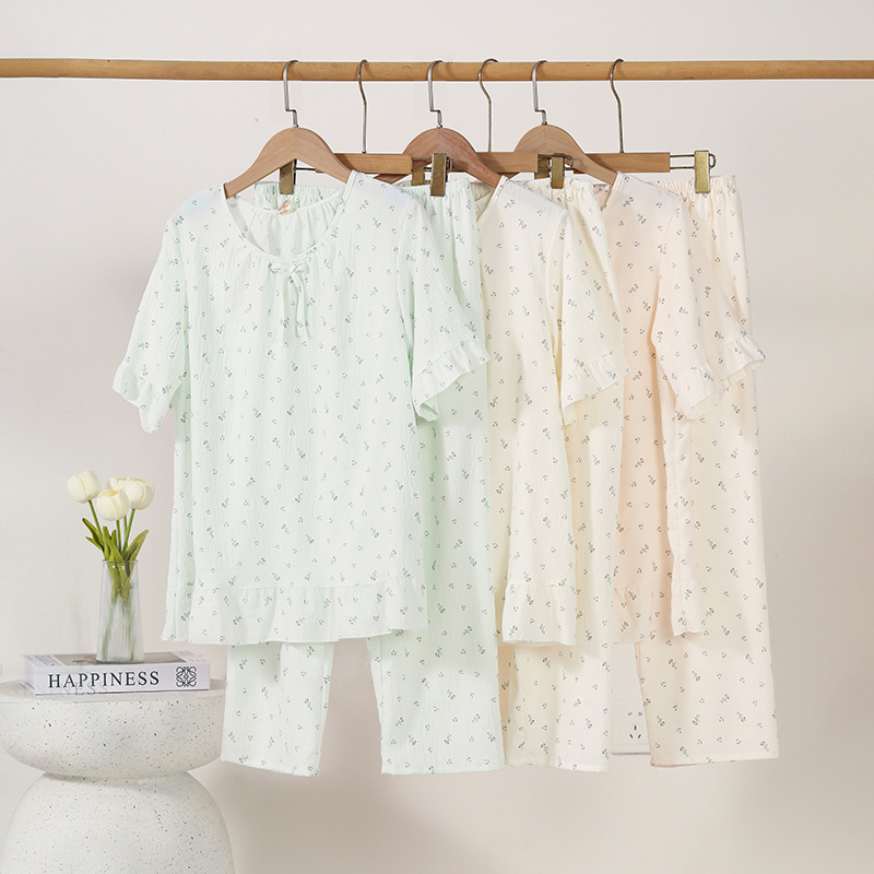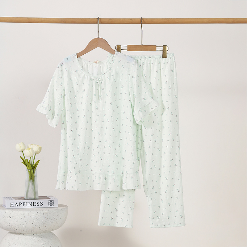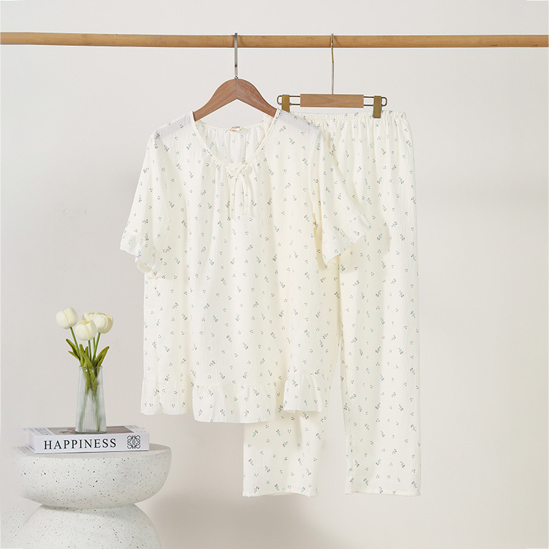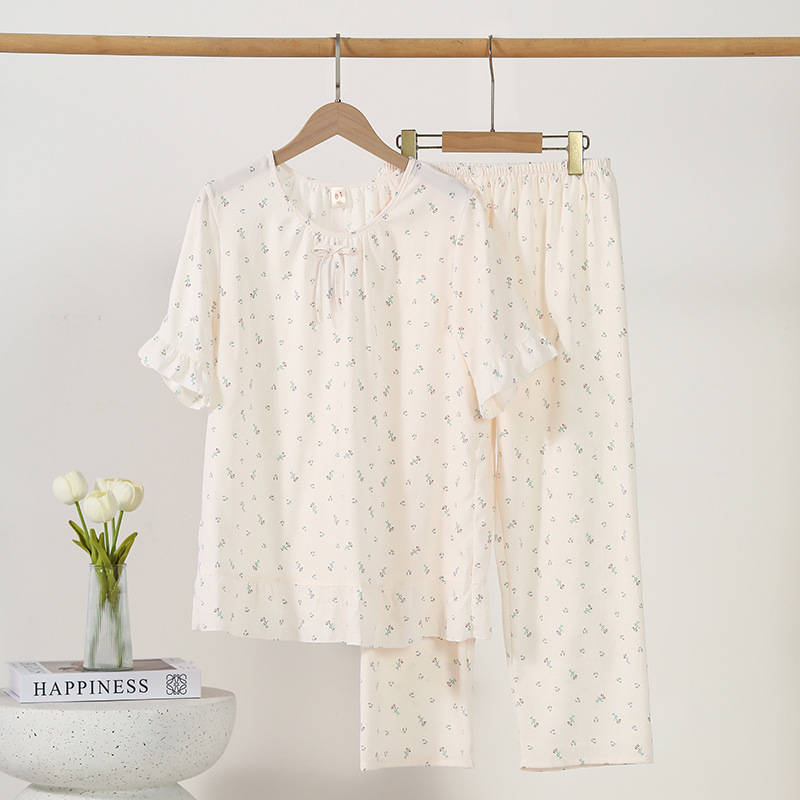 구름면 반팔 바지 세트 홈 옷 활 여름 봄과 가을 여성의 얇은 잠옷 순면 꽃스토어 가기