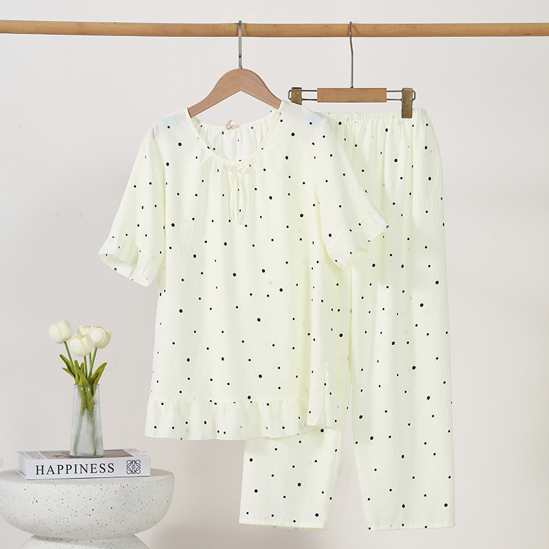 구름면 반팔 바지 세트 홈 옷 활 여름 봄과 가을 여성의 얇은 잠옷 순면 꽃