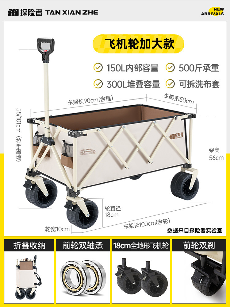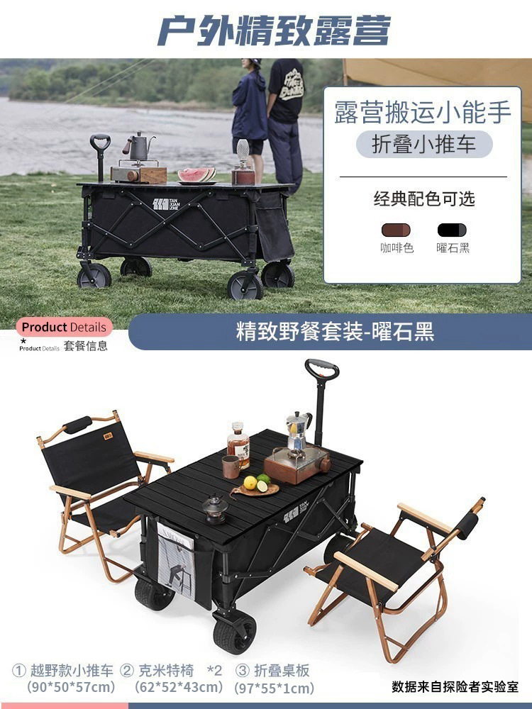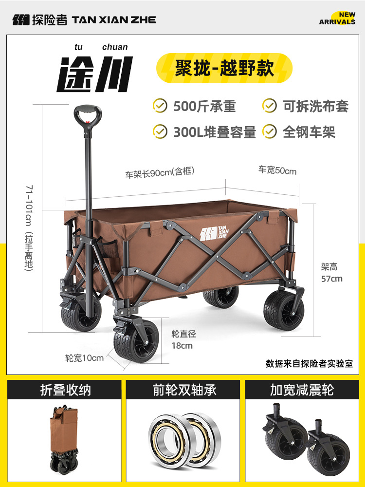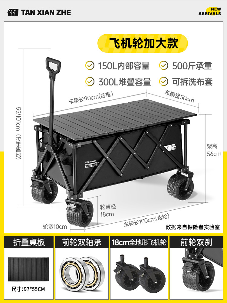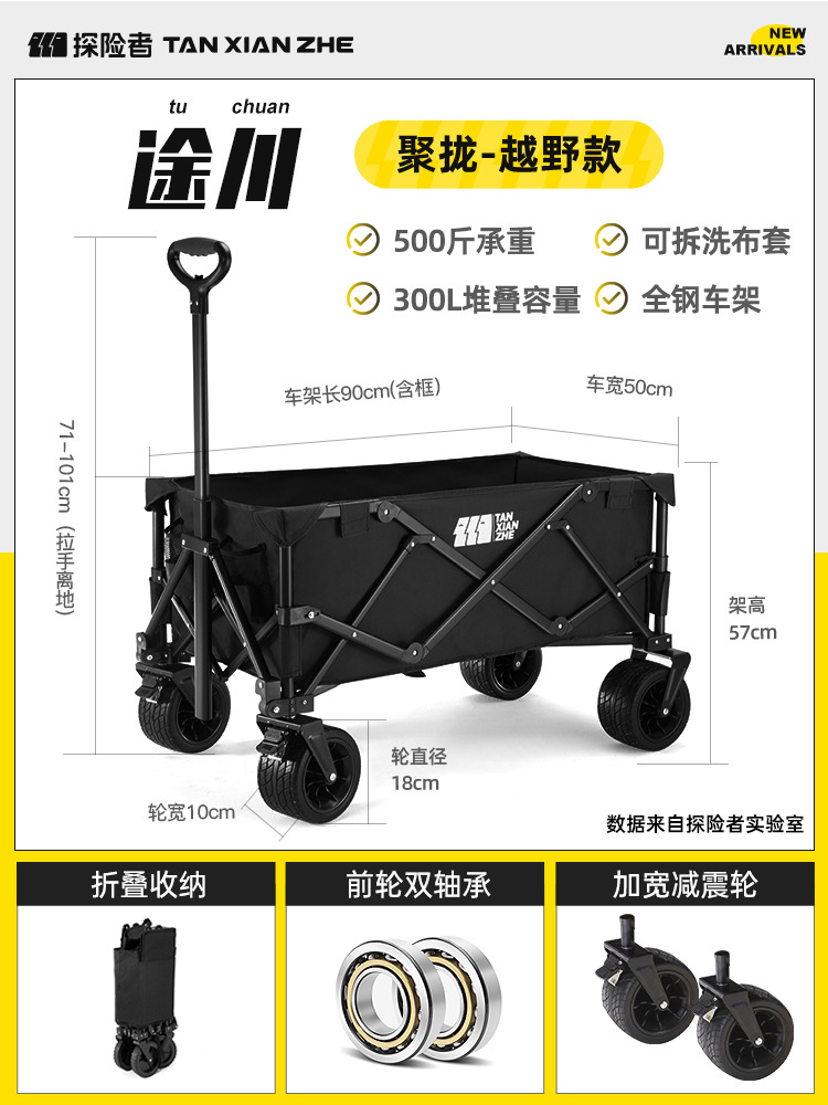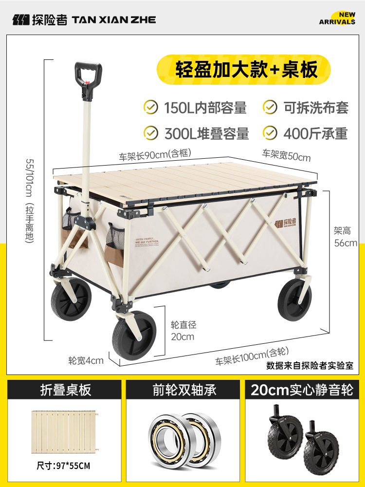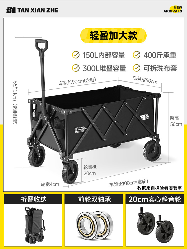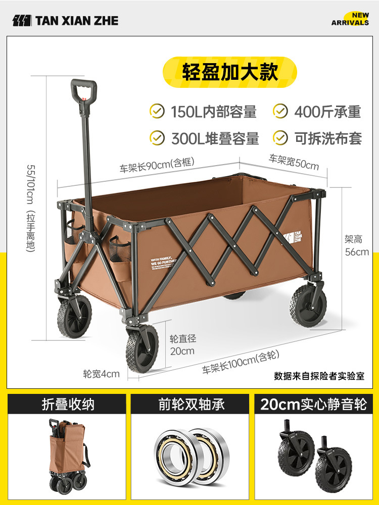 탐험가 캠핑 카트 접이식 야외 피크닉 대형 푸시 캠프 카트 여행 캠핑 작은 Xianzhi스토어 가기