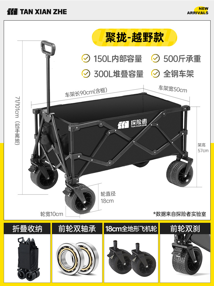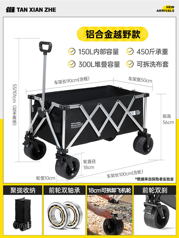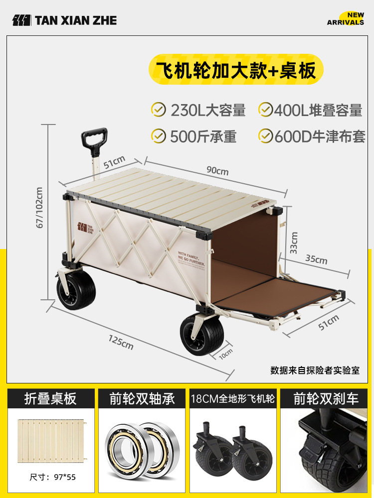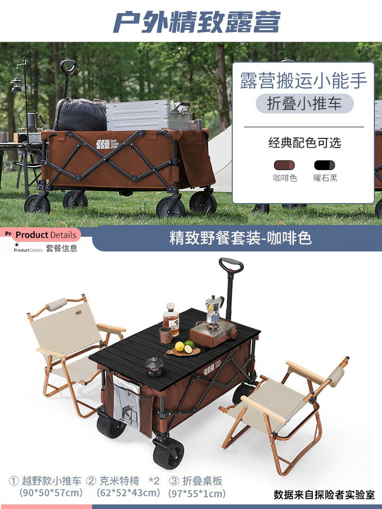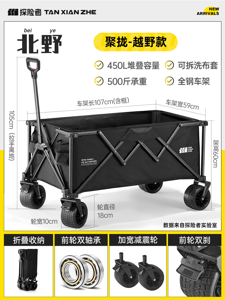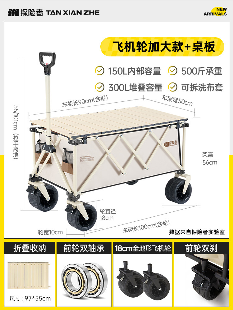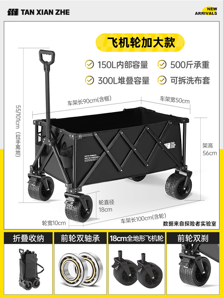 탐험가 캠핑 카트 접이식 야외 피크닉 대형 푸시 캠프 카트 여행 캠핑 작은 Xianzhi스토어 가기