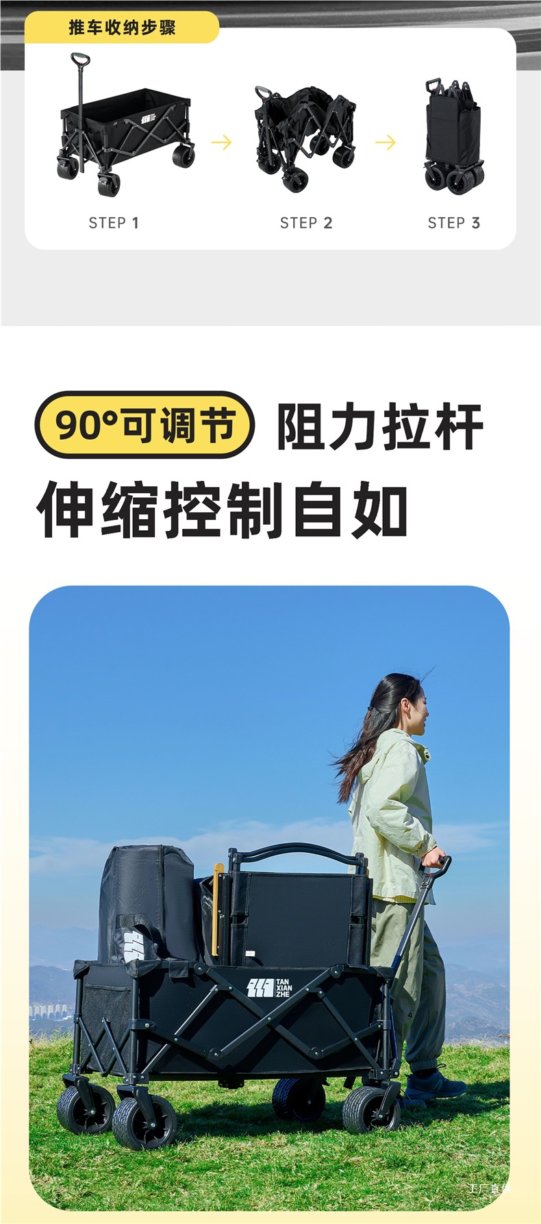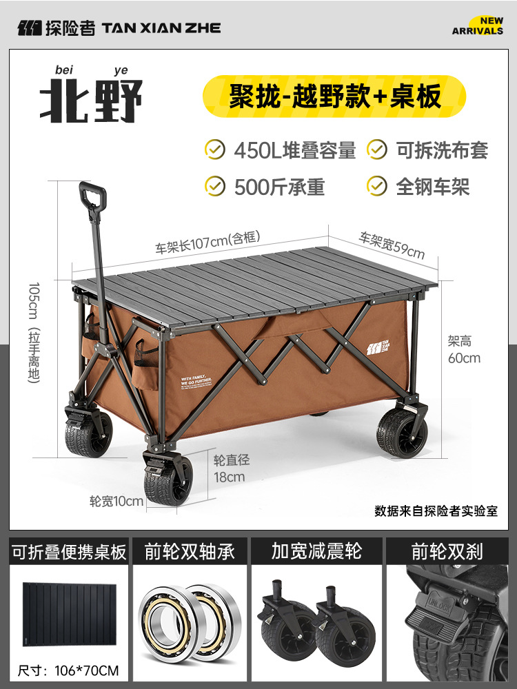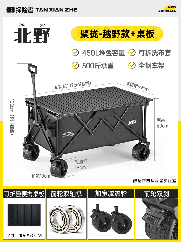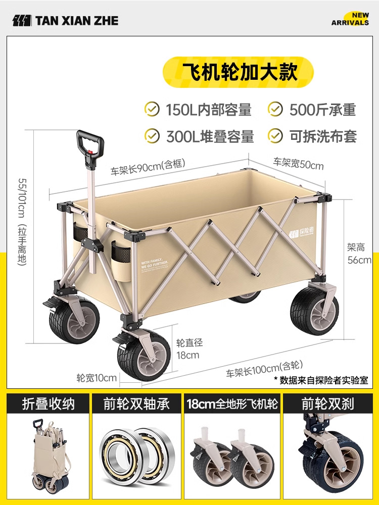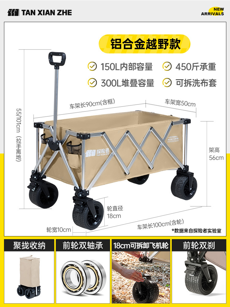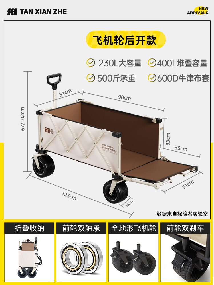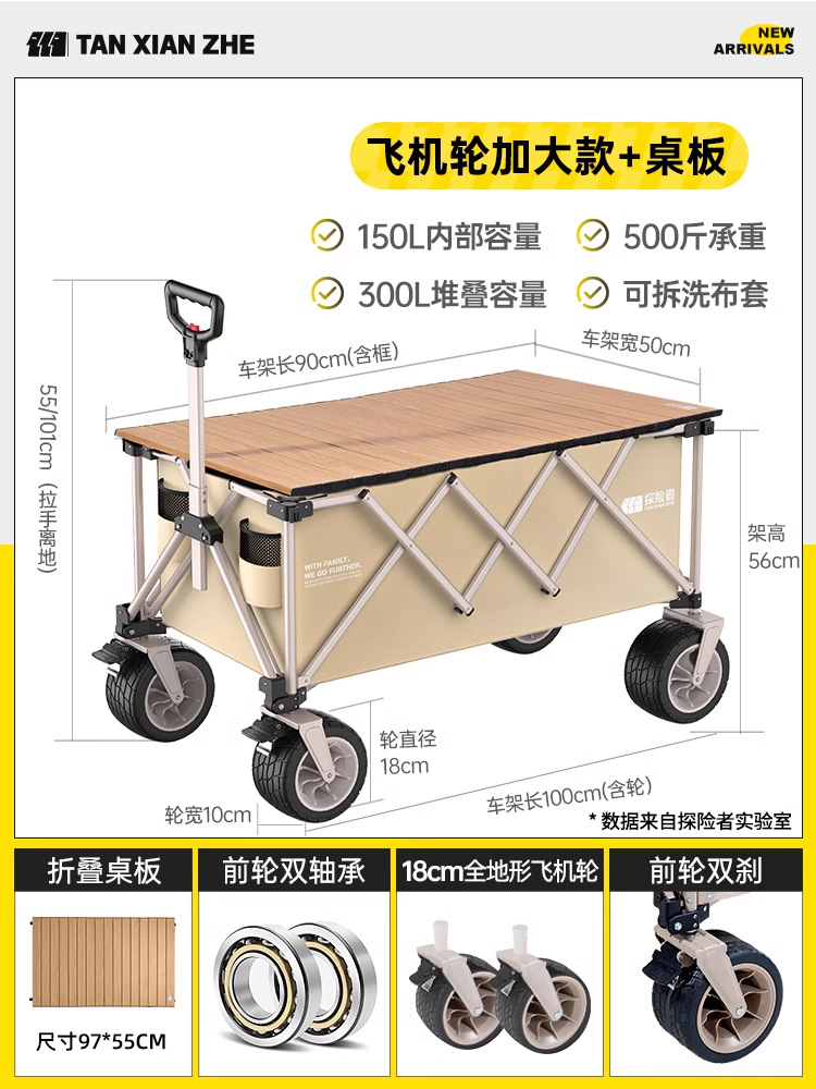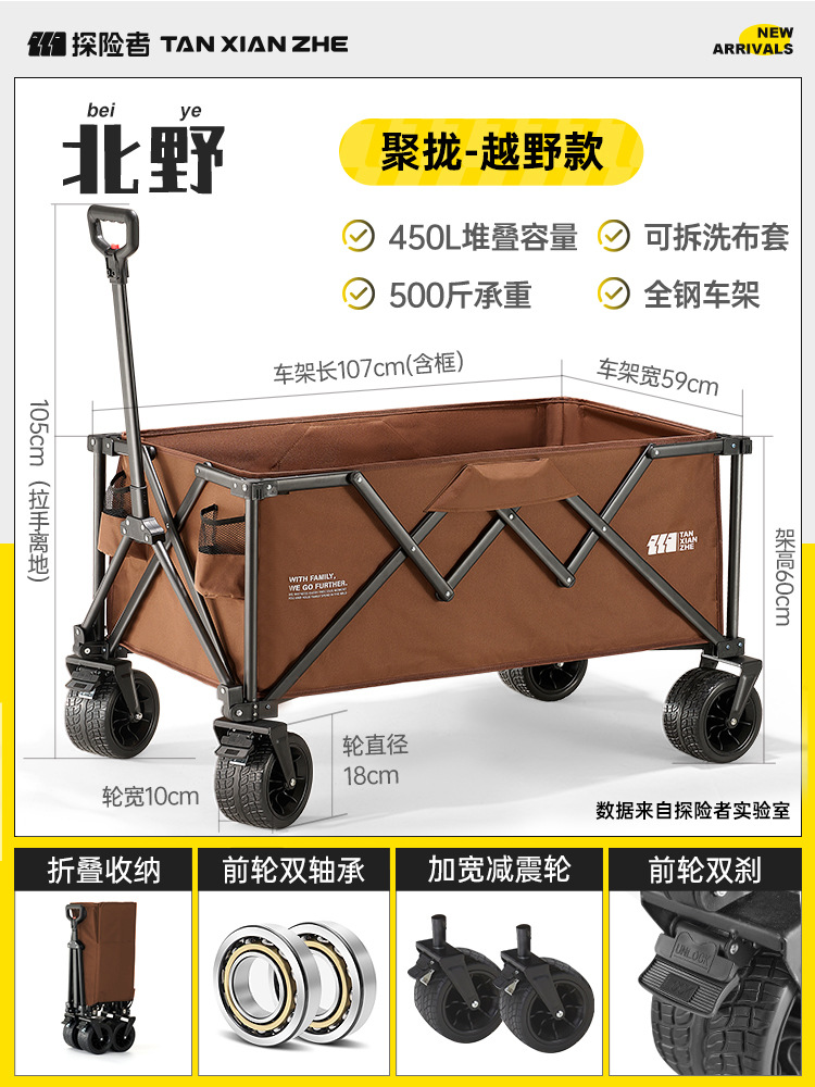 탐험가 캠핑 카트 접이식 야외 피크닉 대형 푸시 캠프 카트 여행 캠핑 작은 Xianzhi스토어 가기