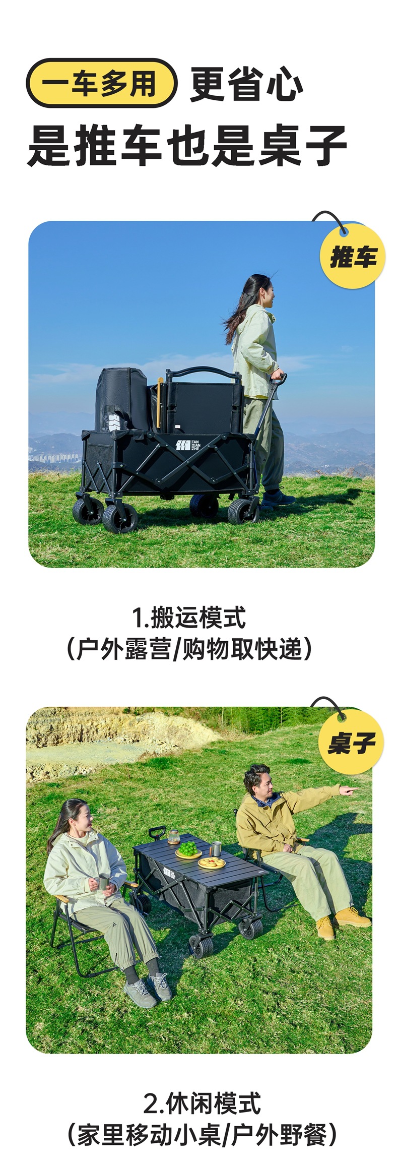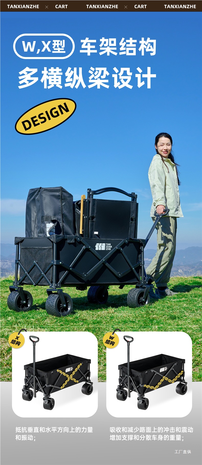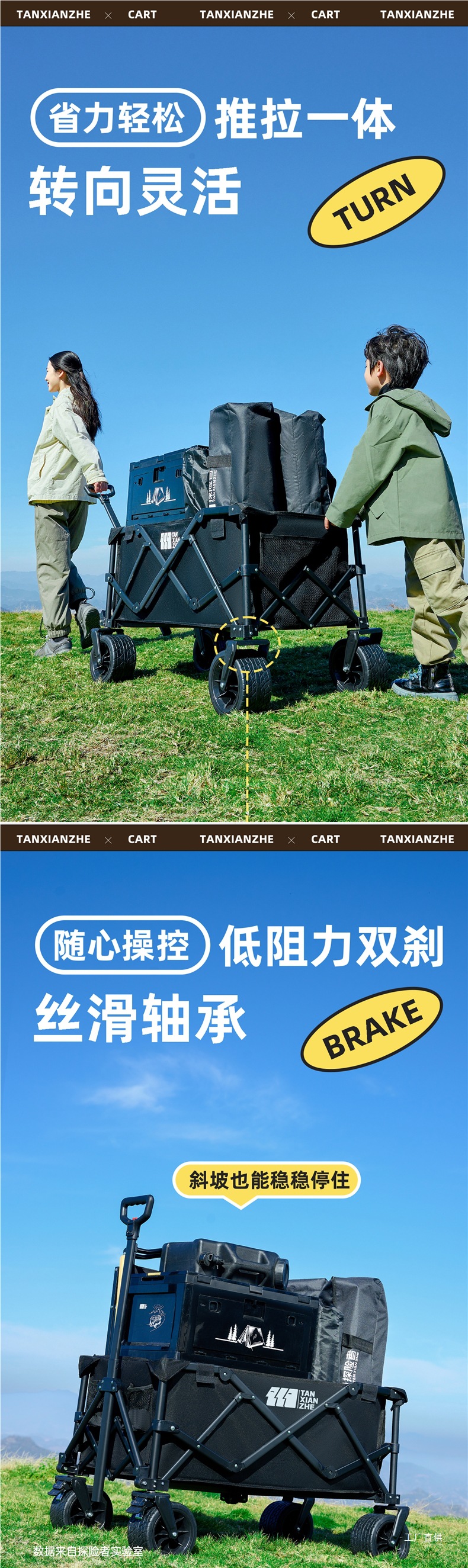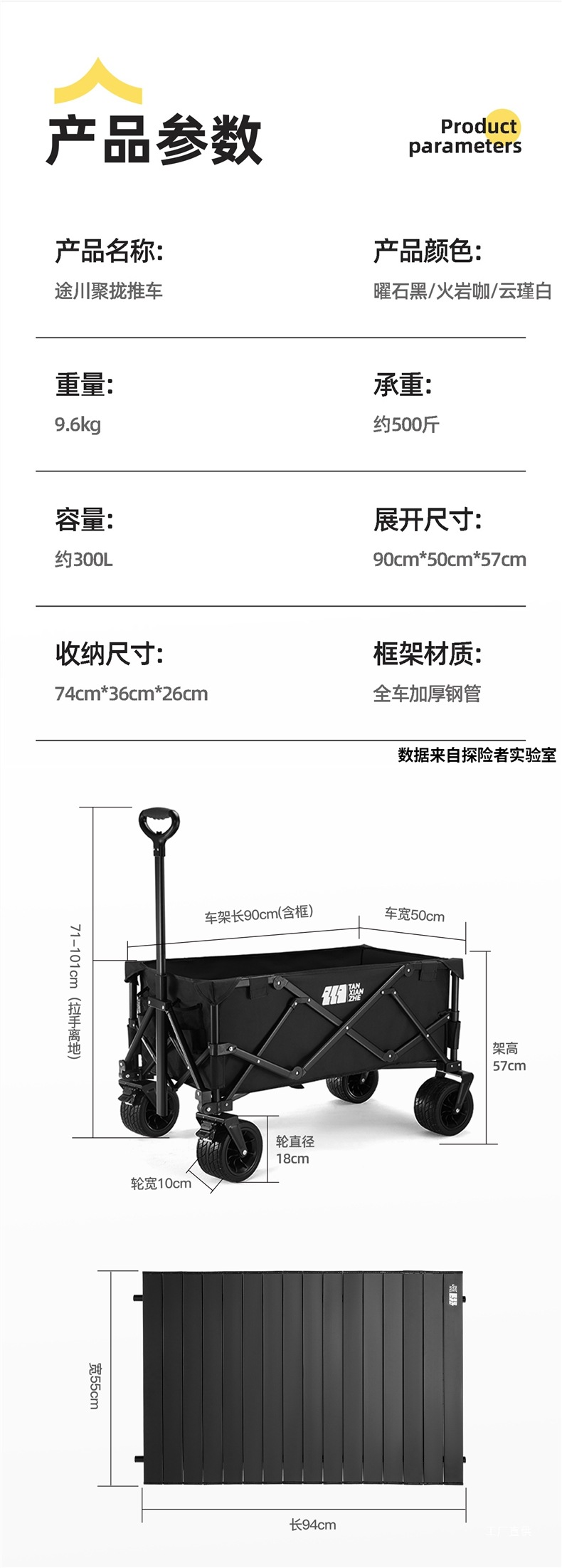 탐험가 캠핑 카트 접이식 야외 피크닉 대형 푸시 캠프 카트 여행 캠핑 작은 Xianzhi스토어 가기