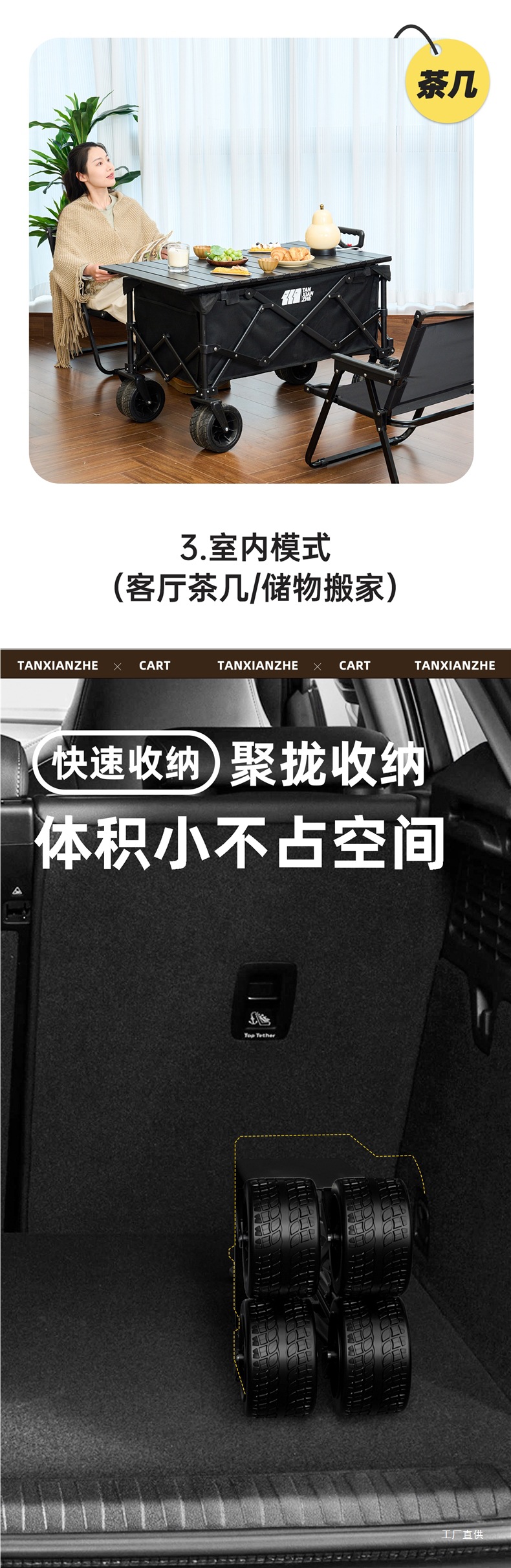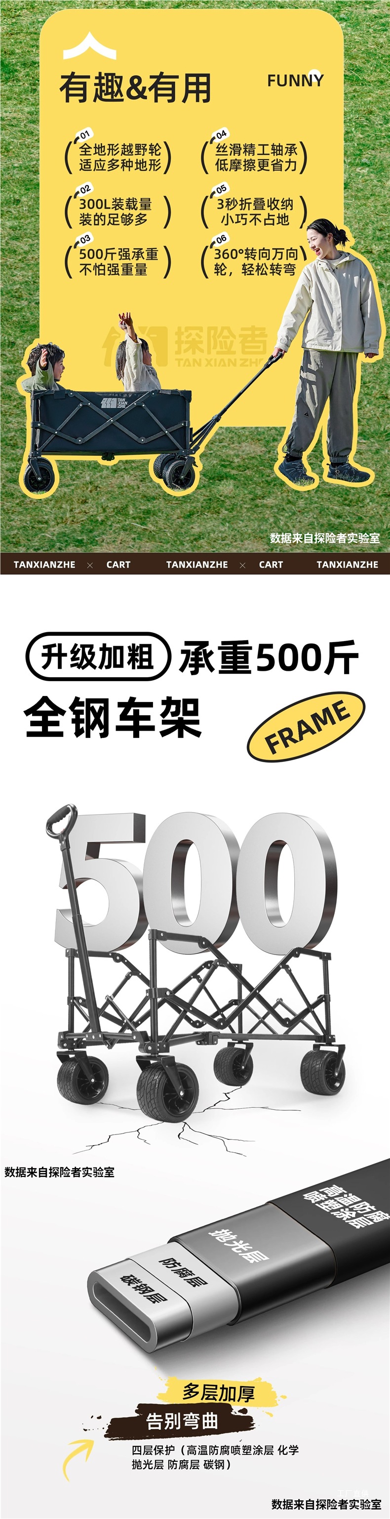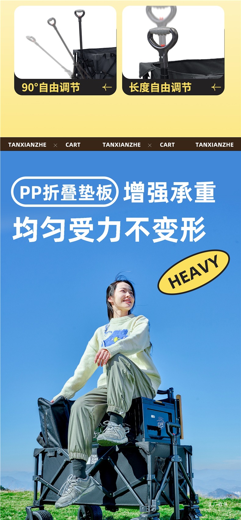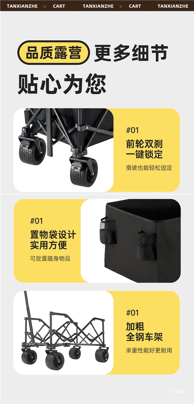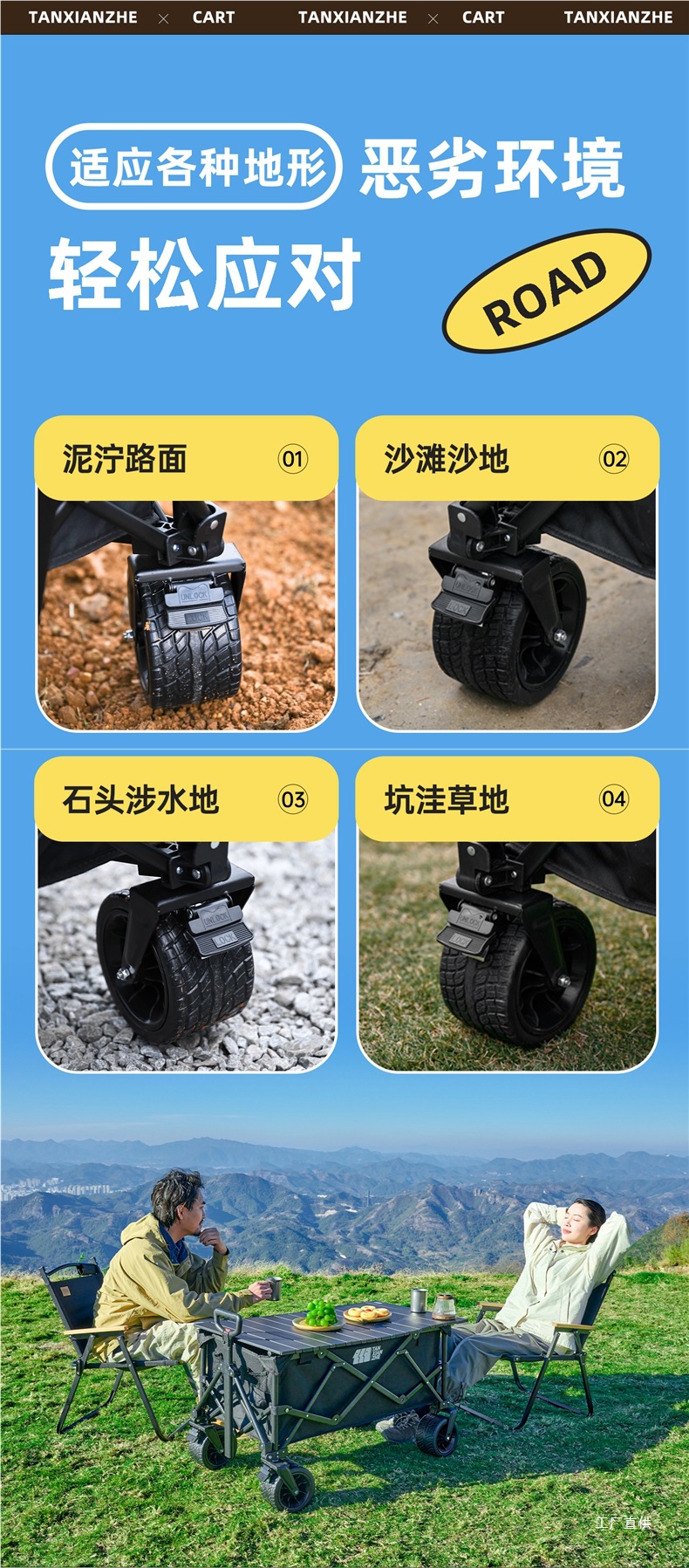 탐험가 캠핑 카트 접이식 야외 피크닉 대형 푸시 캠프 카트 여행 캠핑 작은 Xianzhi스토어 가기