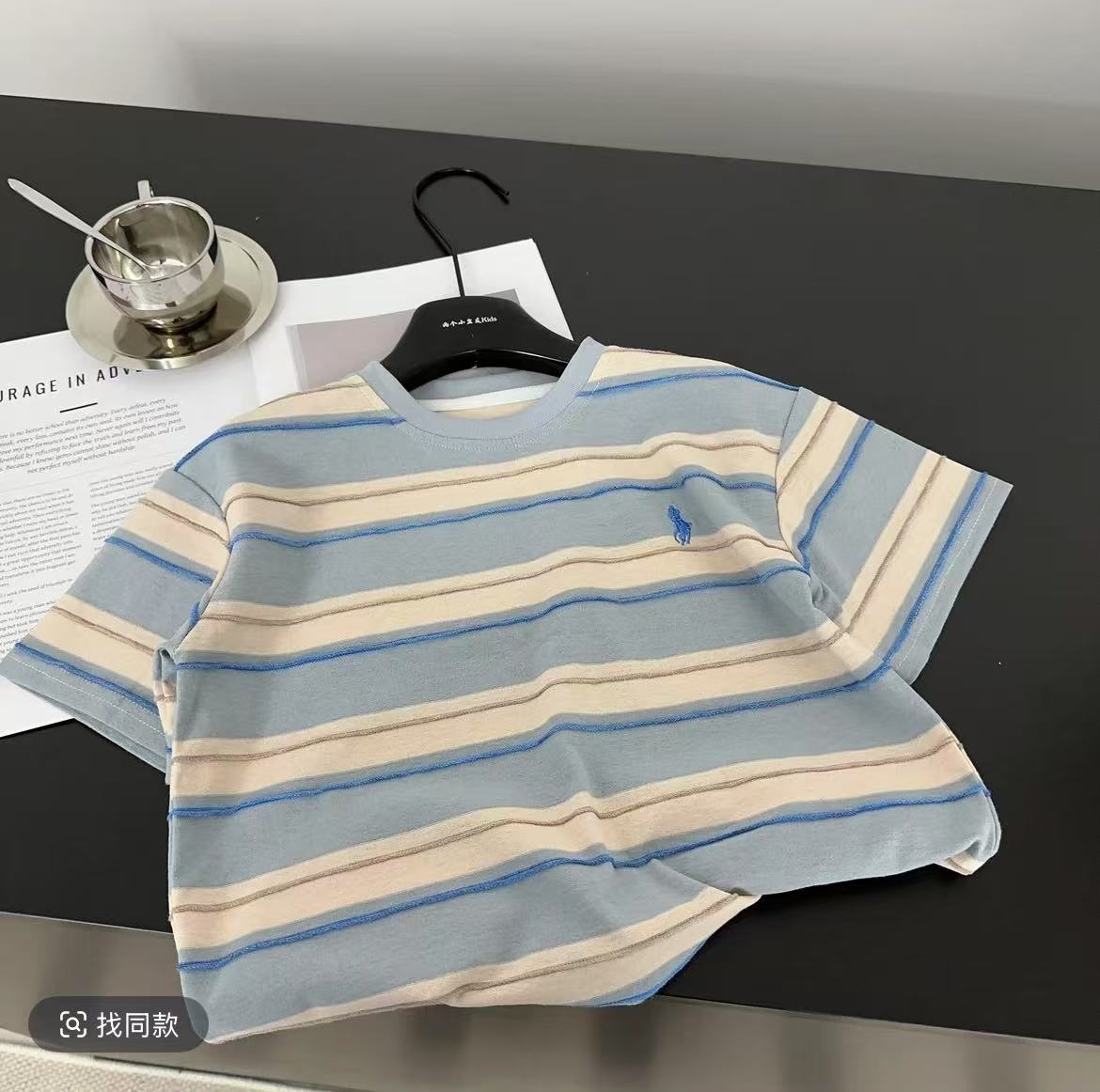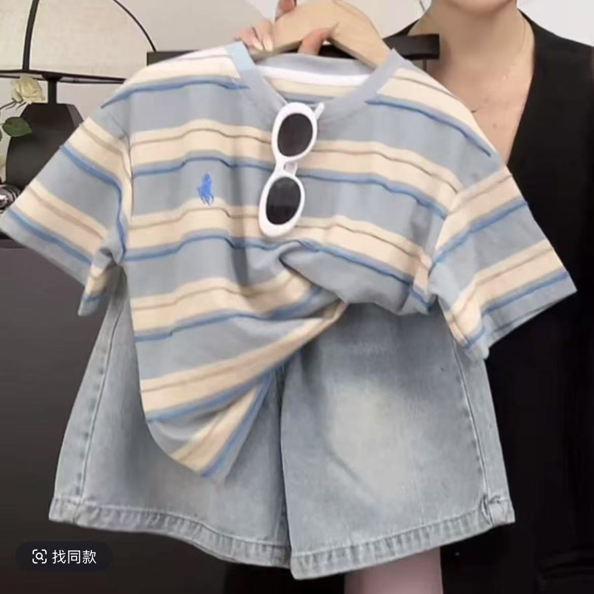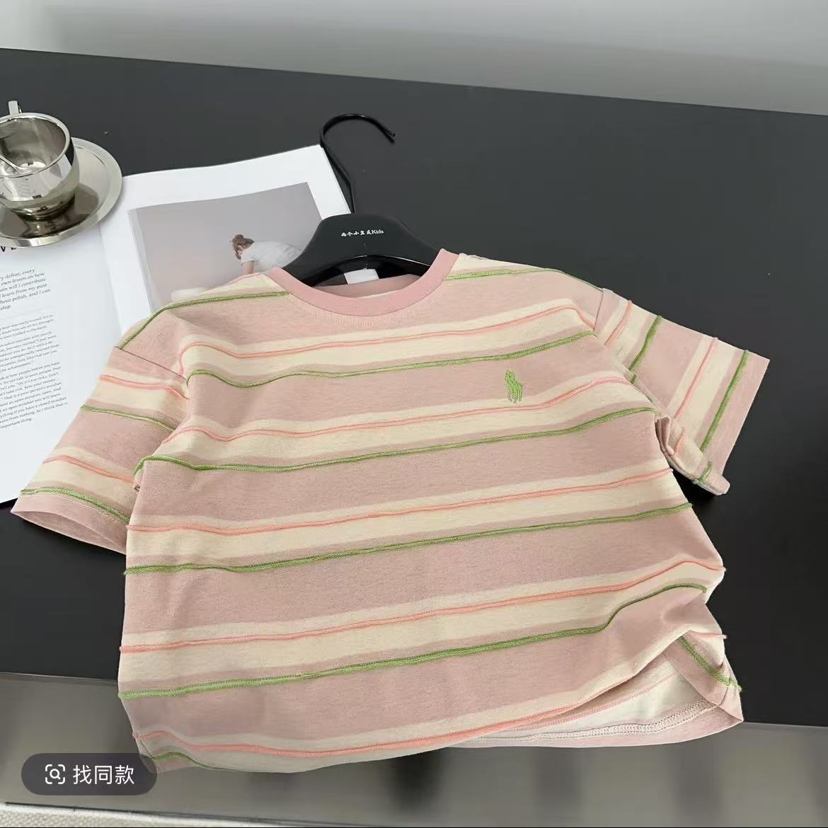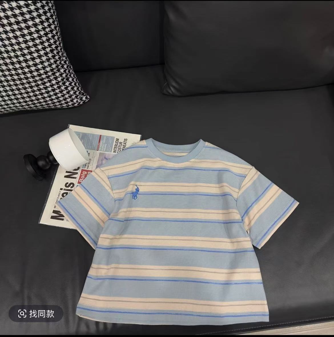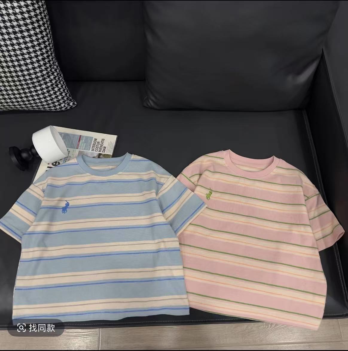 어린이용 배색 스트라이프 반팔 티셔츠, 남아용 2026년 여름 신상 트렌디 브랜드 루즈핏 디자인 아메리칸 스타일 상의, 여아용스토어 가기