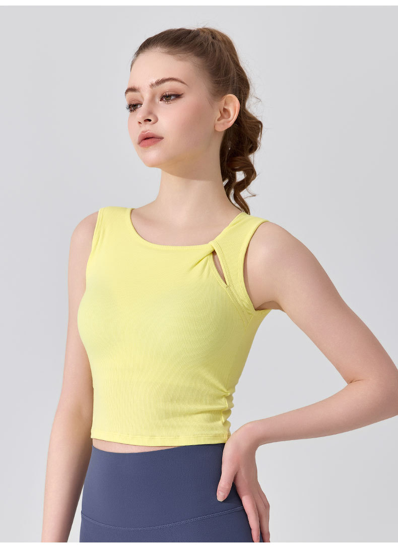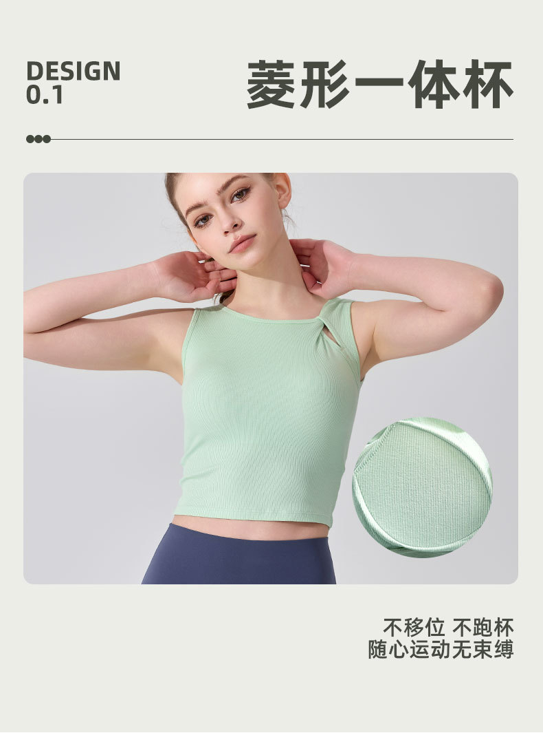 봄과 여름 Kink 요가 조끼 여성 원피스 고정 컵 달리기 외부 착용 솔리드 컬러 민소매 충격 방지 피트니스 탑 여성스토어 가기