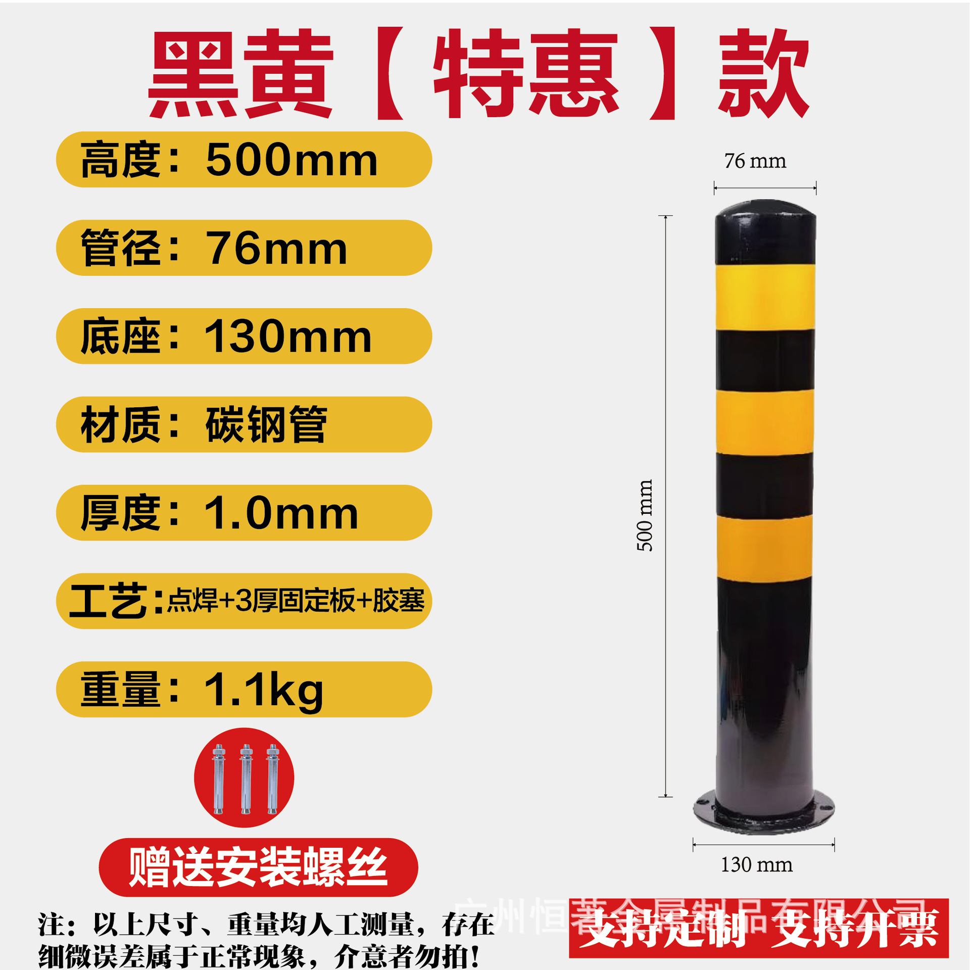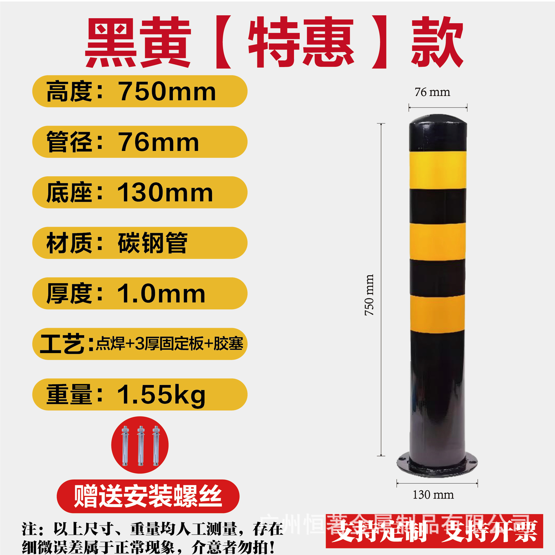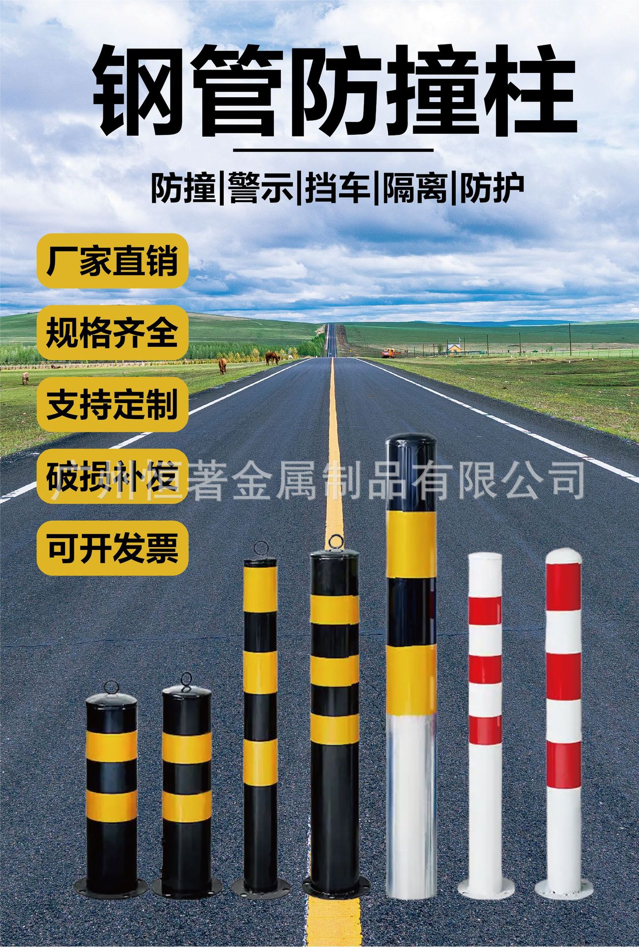 아연 도금 강관 경고 컬럼 주차장 충돌 방지 컬럼 도로 차단 두꺼운 강관 경고 컬럼 자동차 배리어스토어 가기
