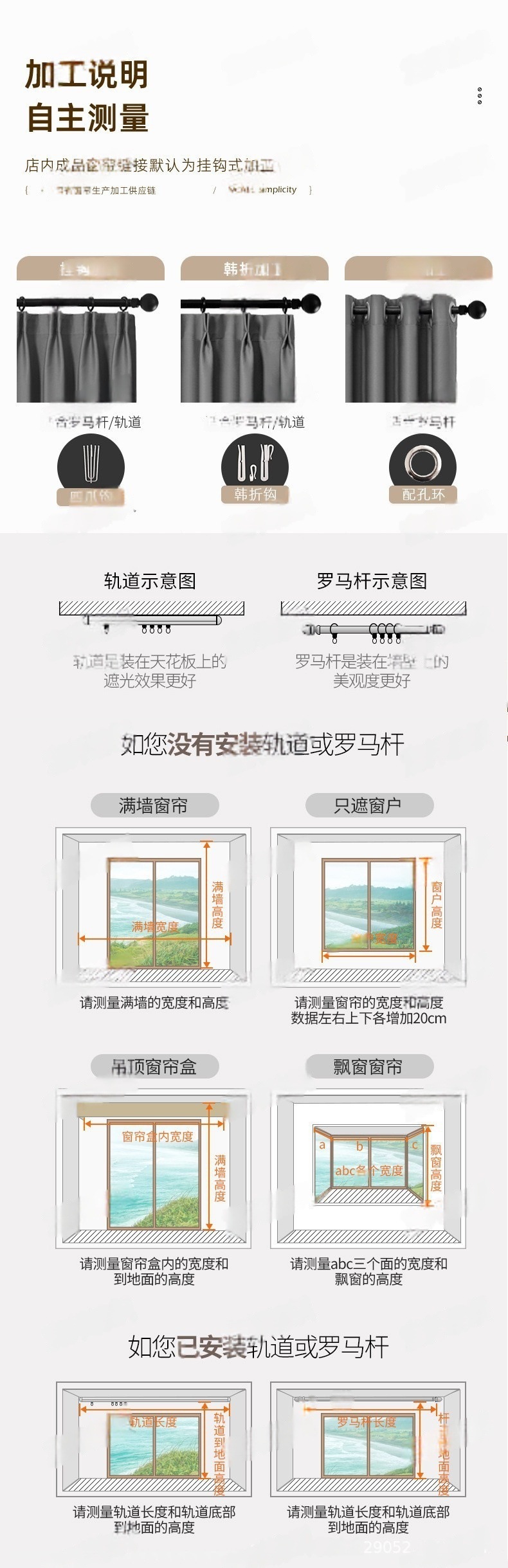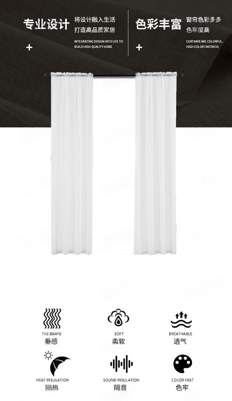 심플한 커튼 원단 완제품 린넨 무지 커튼 거실 침실 암막 커튼 완제품 크로스보더