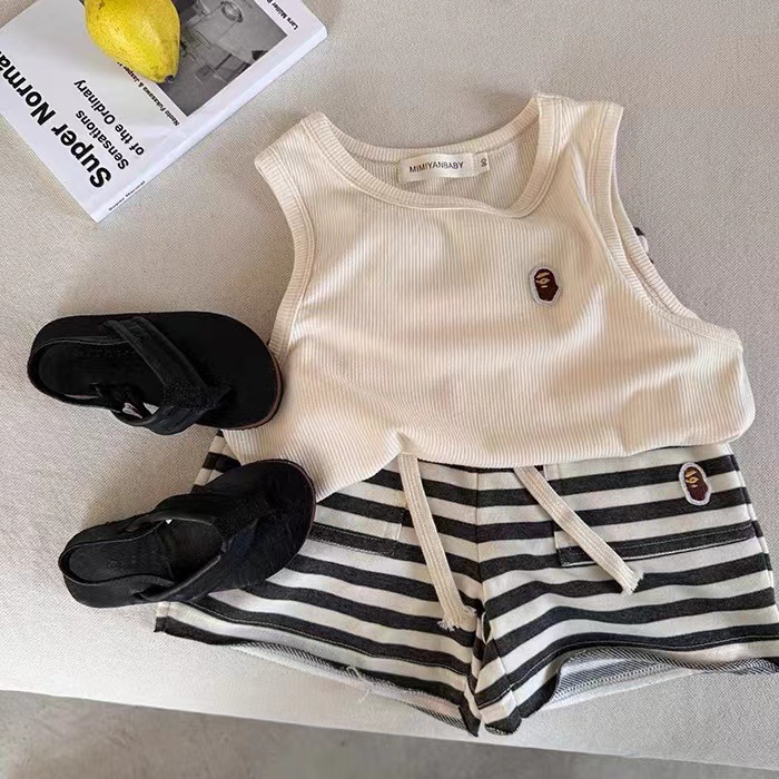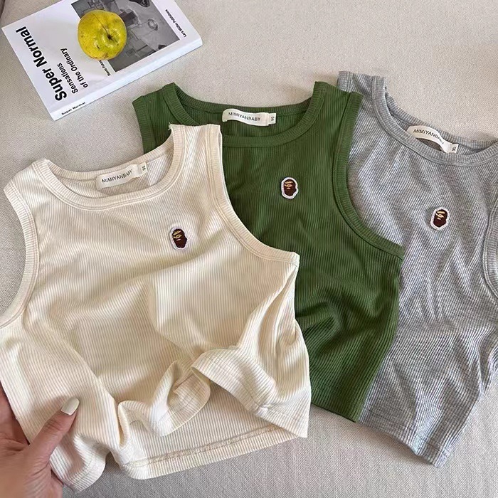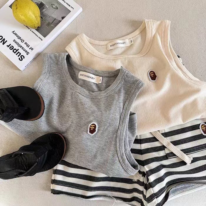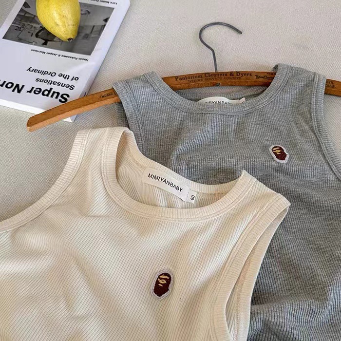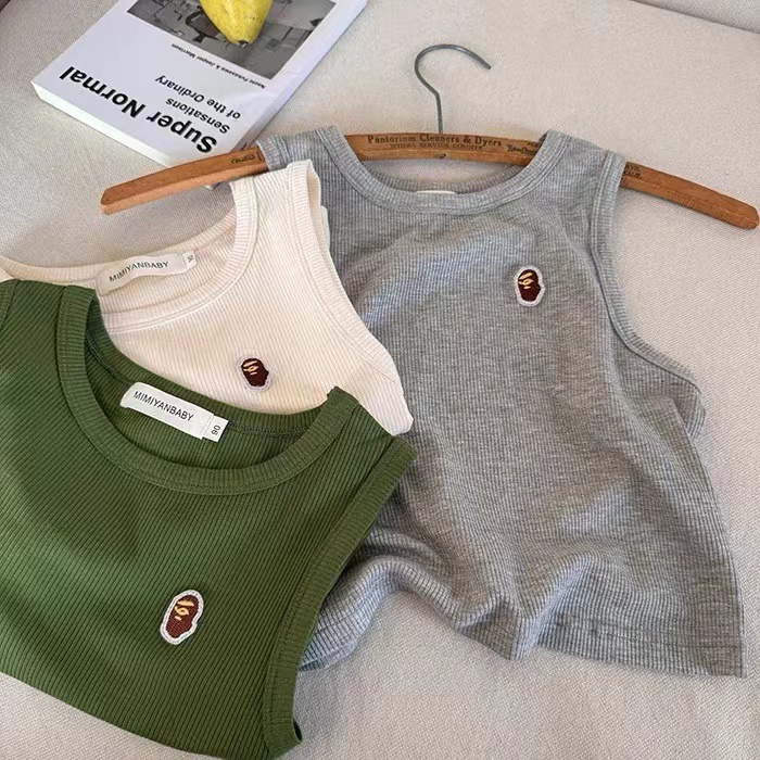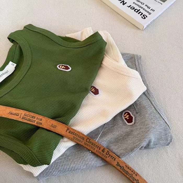 어린이 민소매 조끼 남자 여름 2025 새로운 어린이 소프트 탑 솔리드 컬러 아기의 면 티셔츠 여성용 얇은스토어 가기