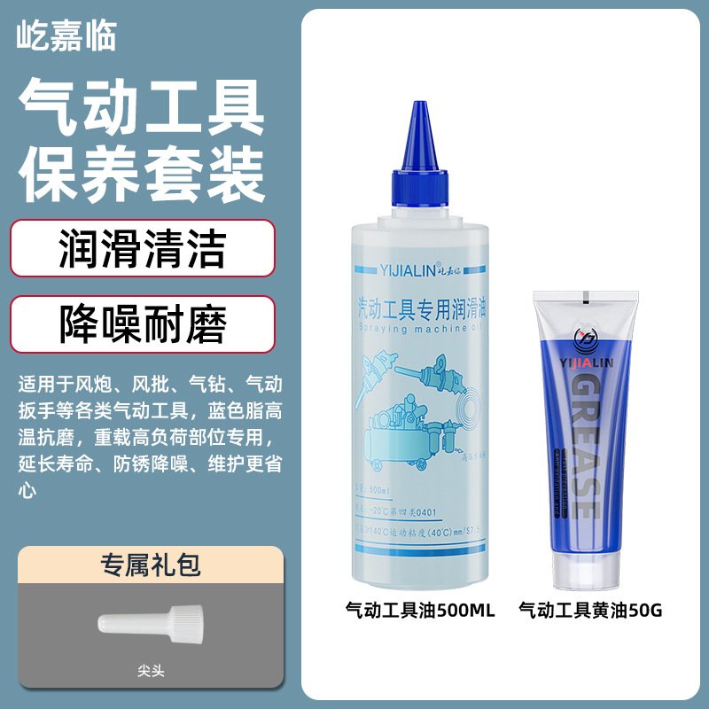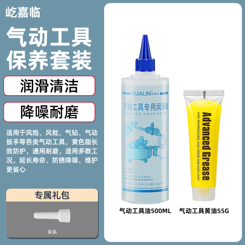 • 에어 공구 윤활유 - 500ML - 흰색 + 에어 공구 그리스 (노란색/파란색) - 50g