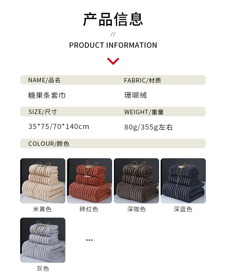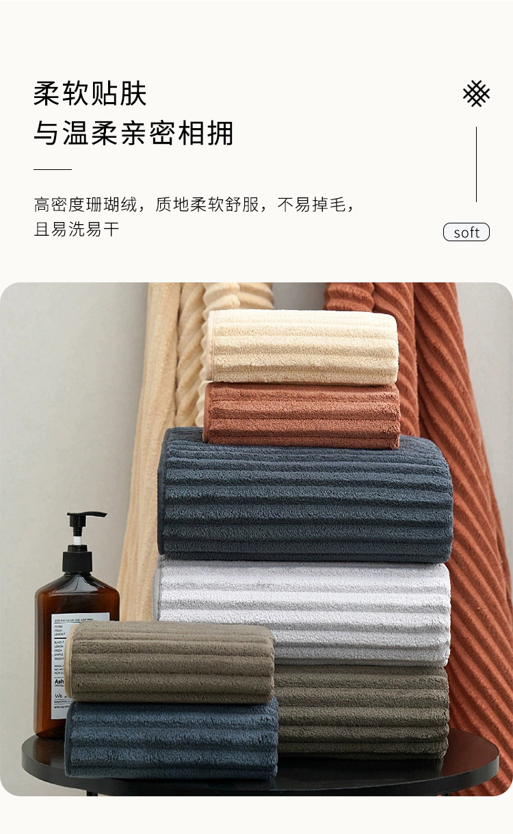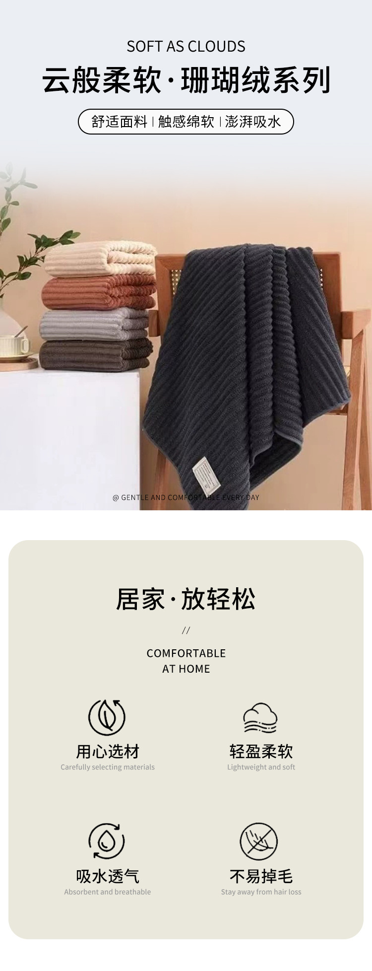 산호 벨벳 수건, 목욕 수건, 캔디 스트립, 속건성, 흡수성, 부드러운 세트, 두꺼운 가장자리, 가정용 커플 목욕 수건스토어 가기