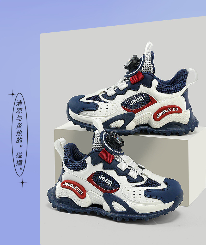 지프 어린이 캐주얼 운동화 2025 여름 새로운 스타일 통기성 메쉬 스포츠 신발 회전 버튼 남성 신발스토어 가기