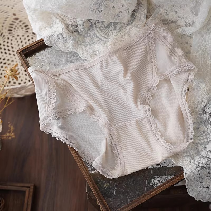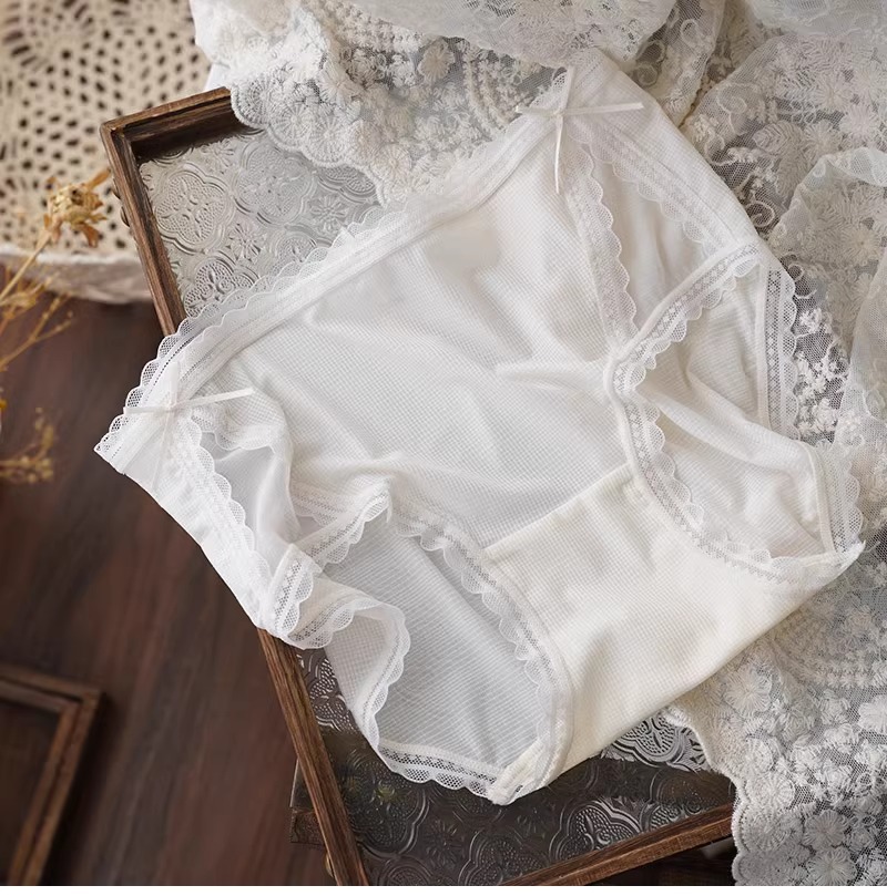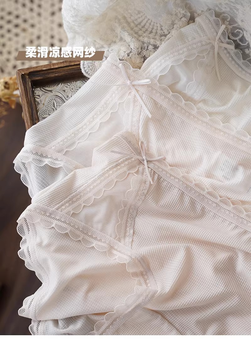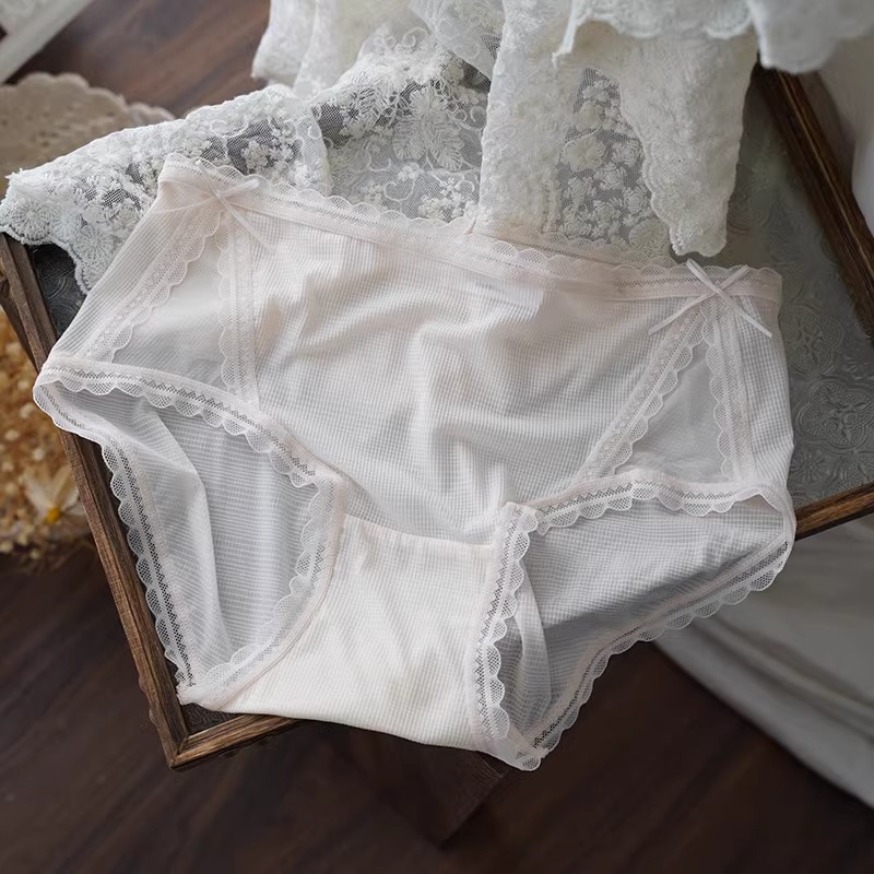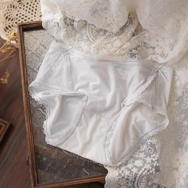 아이스 실크 시원한 느낌 ~ 달콤한 레이스 속옷 여성의 가벼운 통기성 여름 허리 브리프 5A 항균 코튼 가랑이스토어 가기