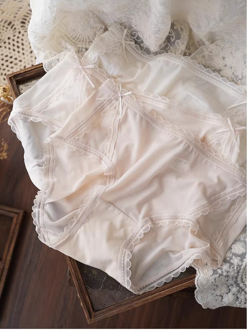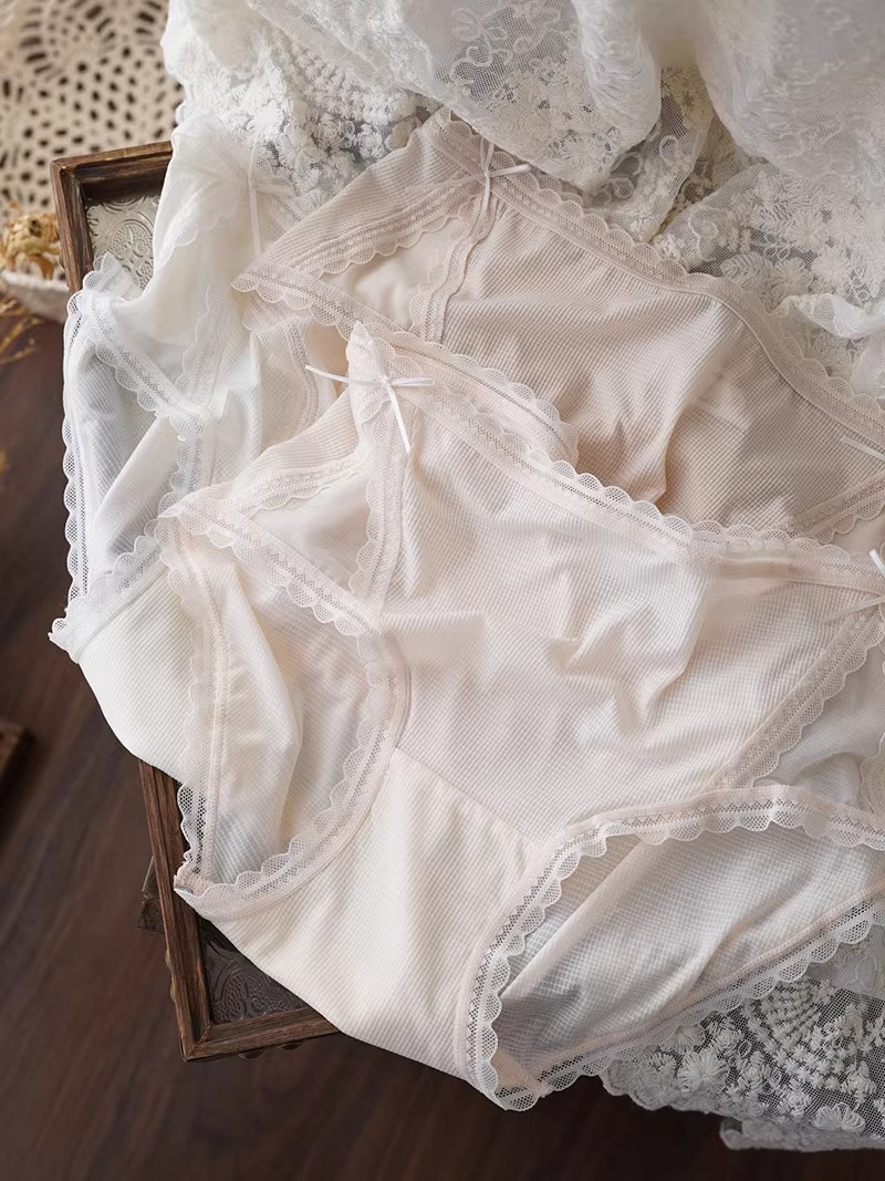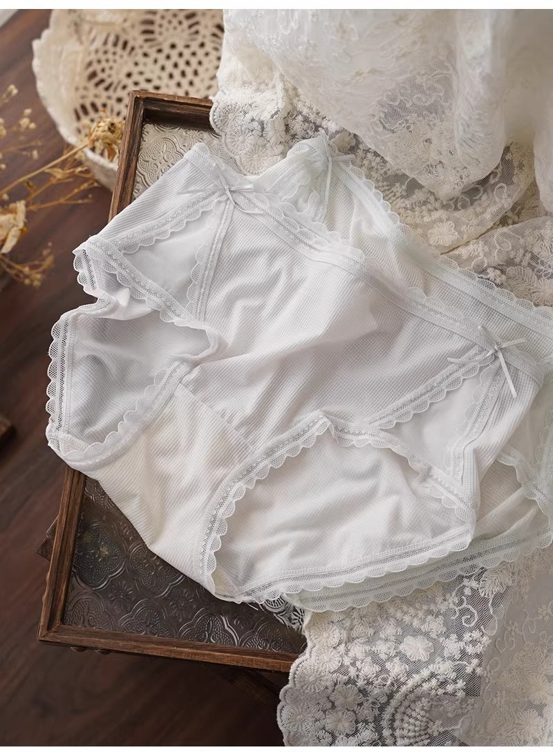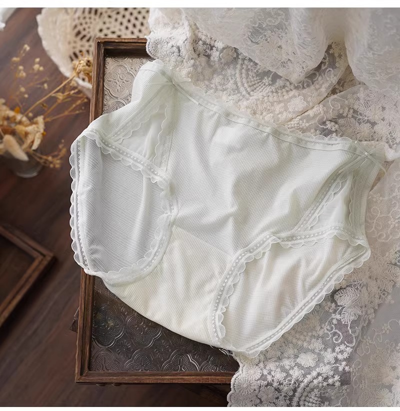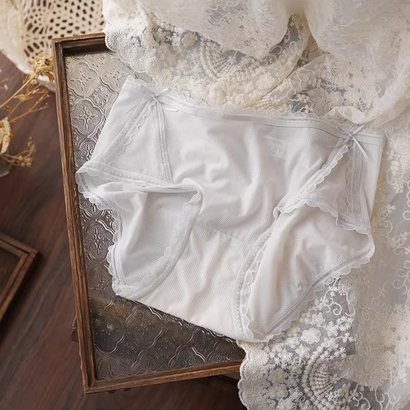 아이스 실크 시원한 느낌 ~ 달콤한 레이스 속옷 여성의 가벼운 통기성 여름 허리 브리프 5A 항균 코튼 가랑이스토어 가기