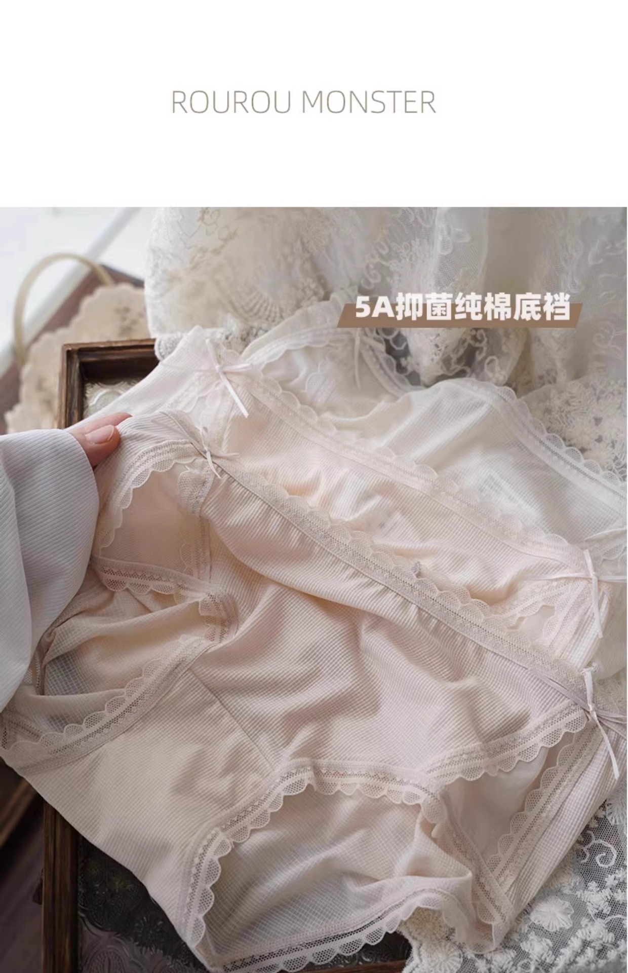 아이스 실크 시원한 느낌 ~ 달콤한 레이스 속옷 여성의 가벼운 통기성 여름 허리 브리프 5A 항균 코튼 가랑이