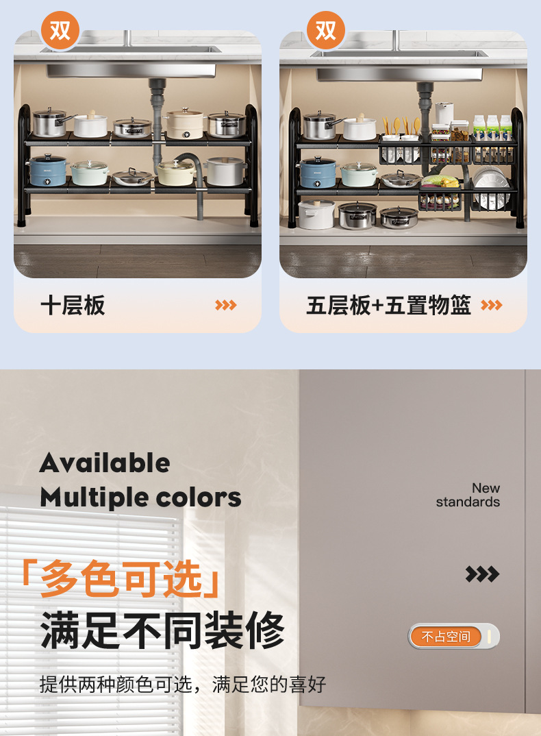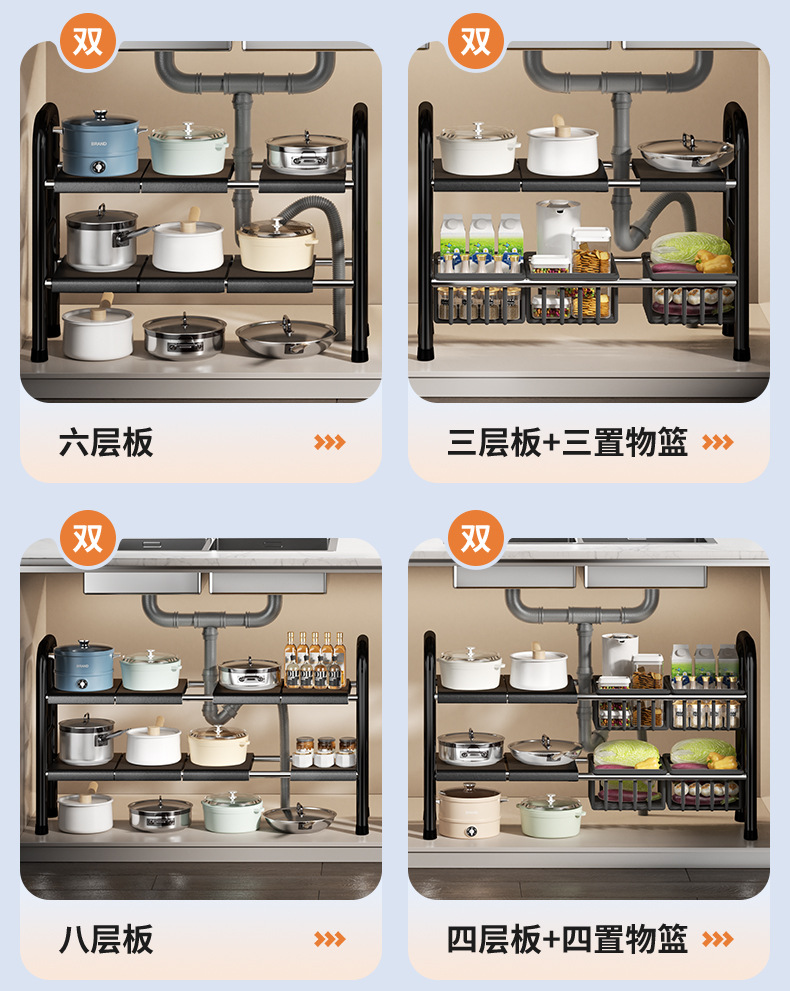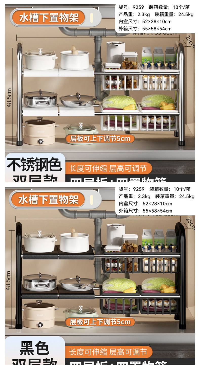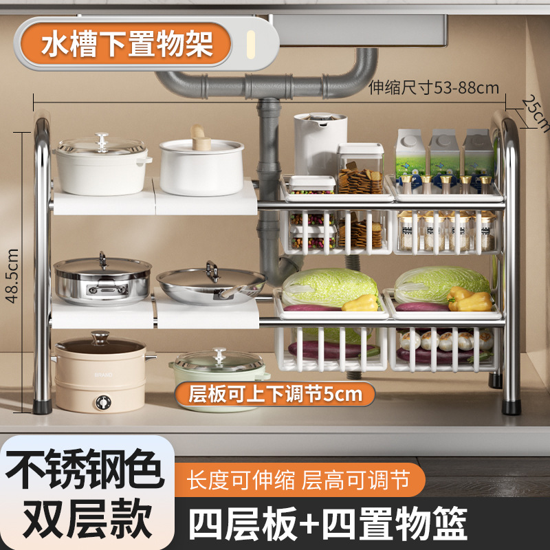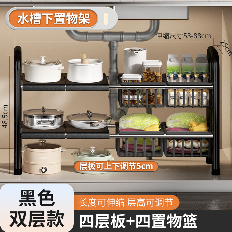 주방 조절 가능한 냄비 랙 싱크 더블 레이어 개폐식 그릇 저장 랙 캐비닛 카운터 탑 다기능 스토리지 랙