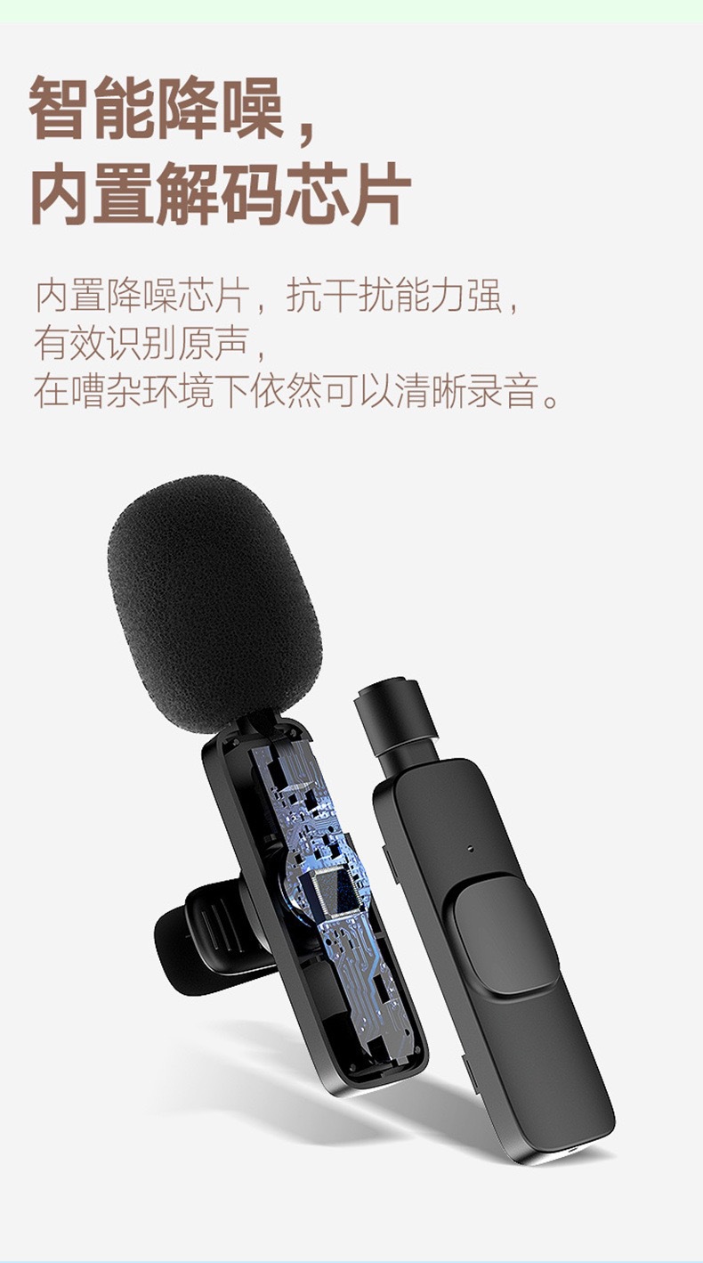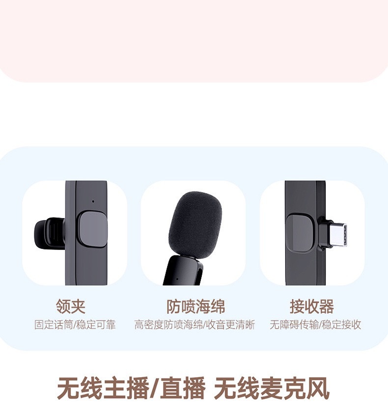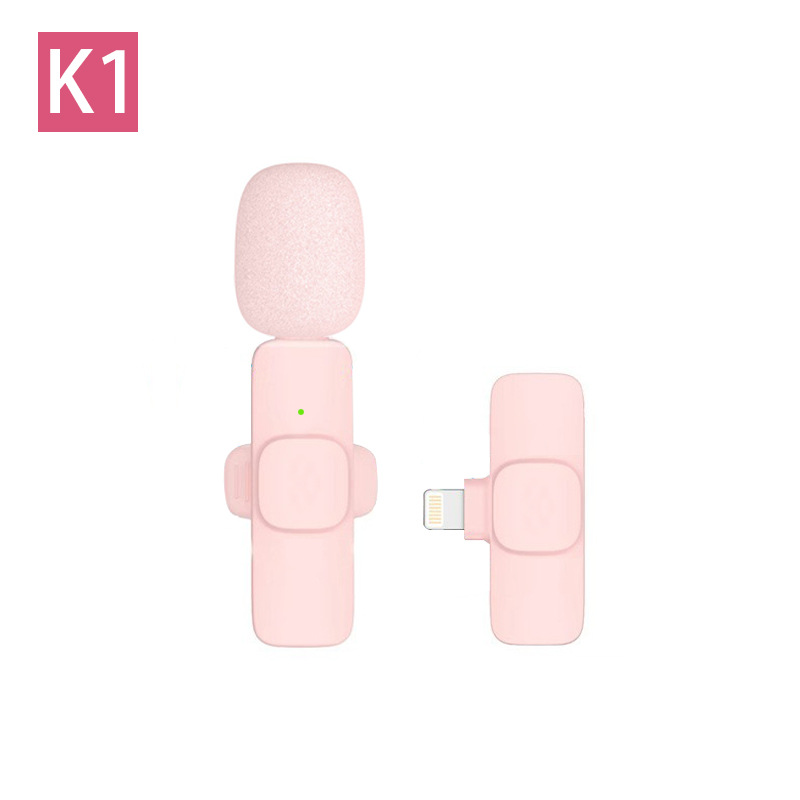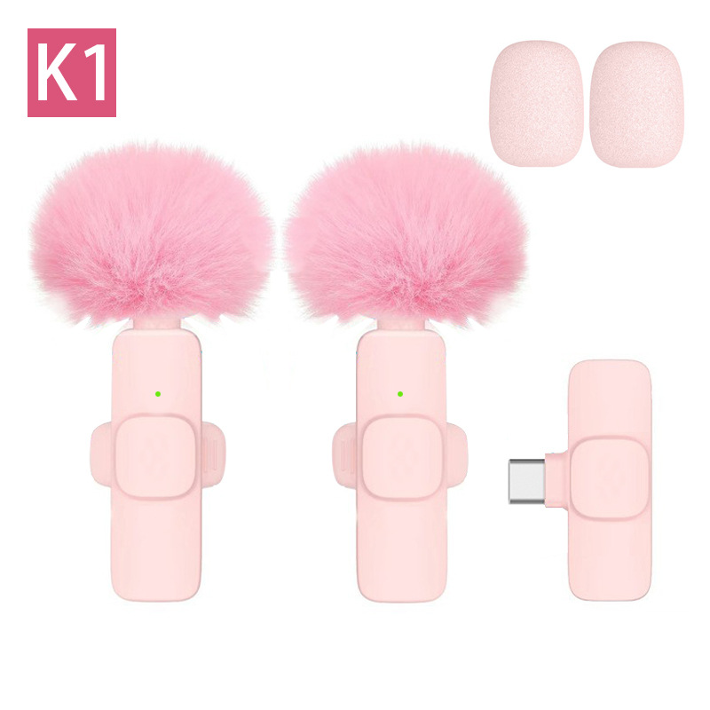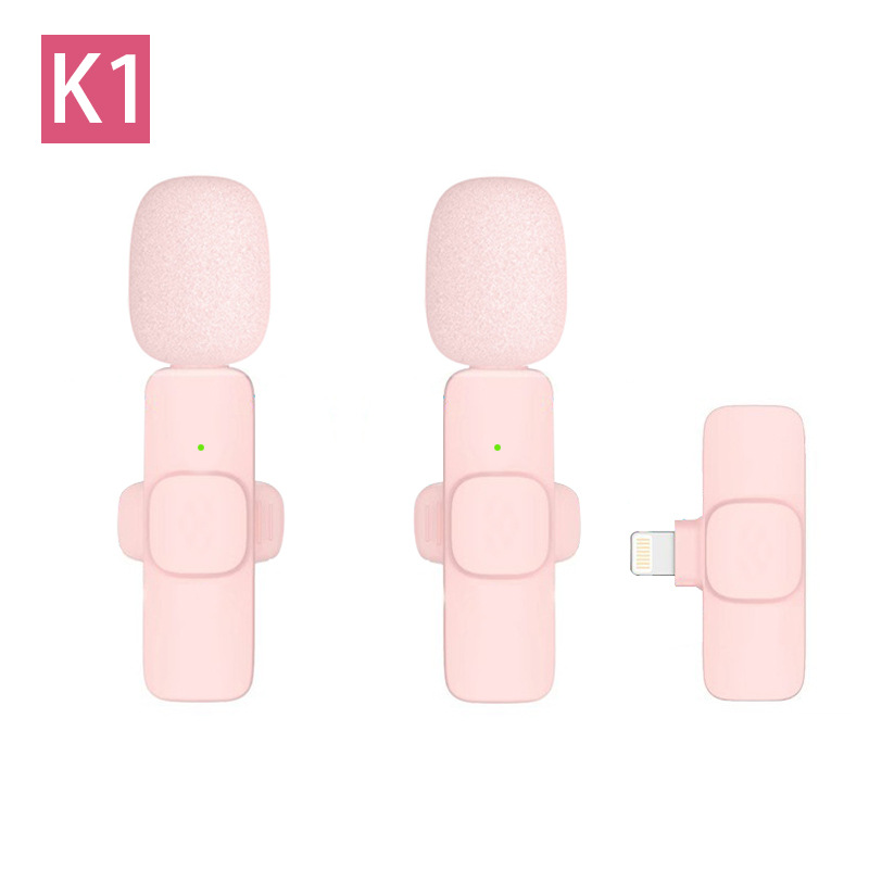 국경을 넘는 인기 무선 핀 마이크 K1 핑크 미니 1대2 무선 수신 마이크 전문 소음 감소