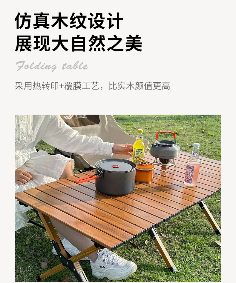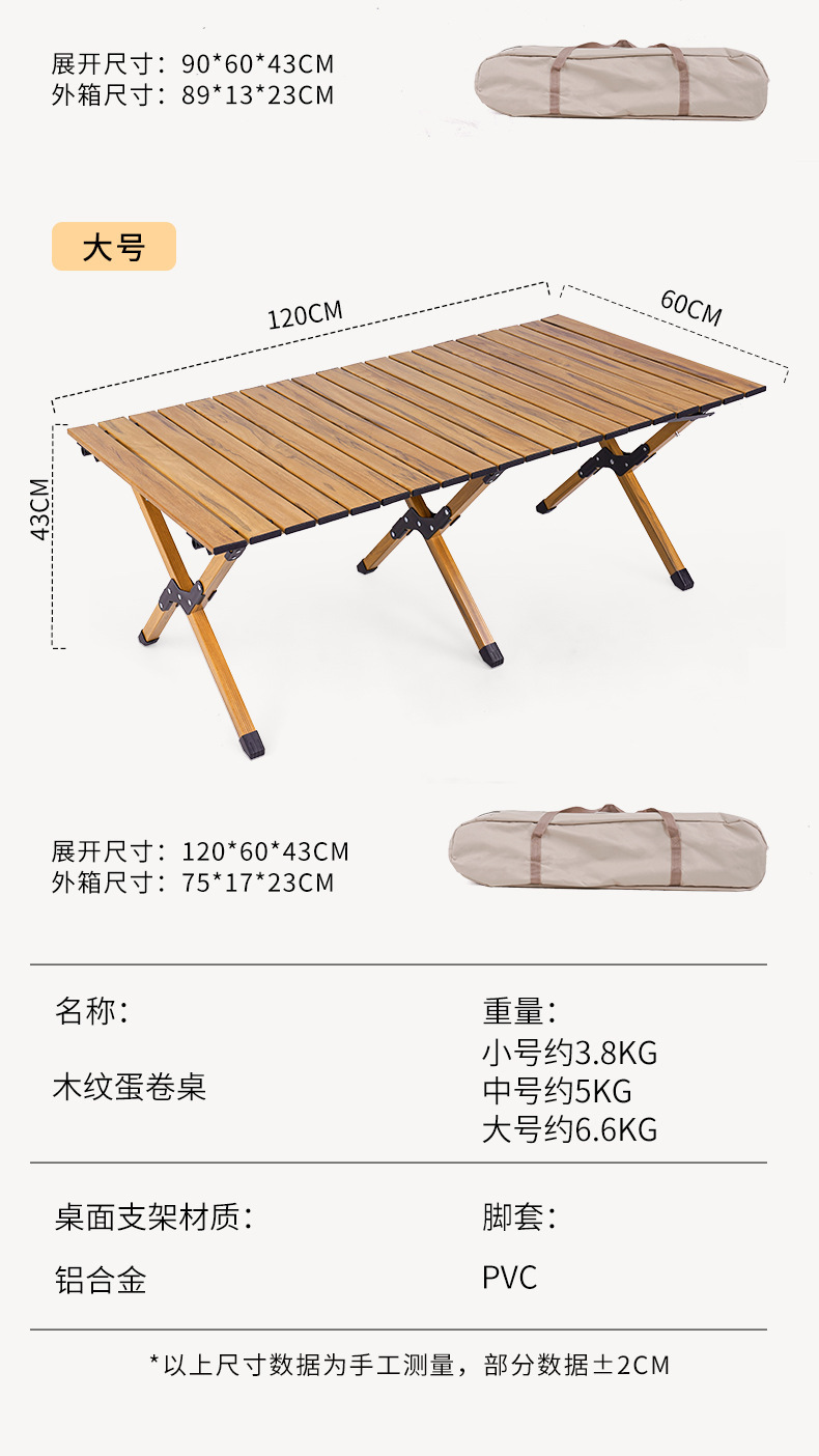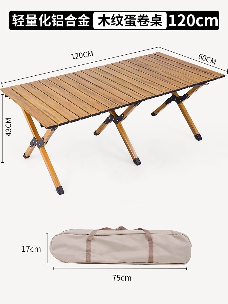 • [경량 알루미늄 합금] 나뭇결 계란말이 테이블-120cm