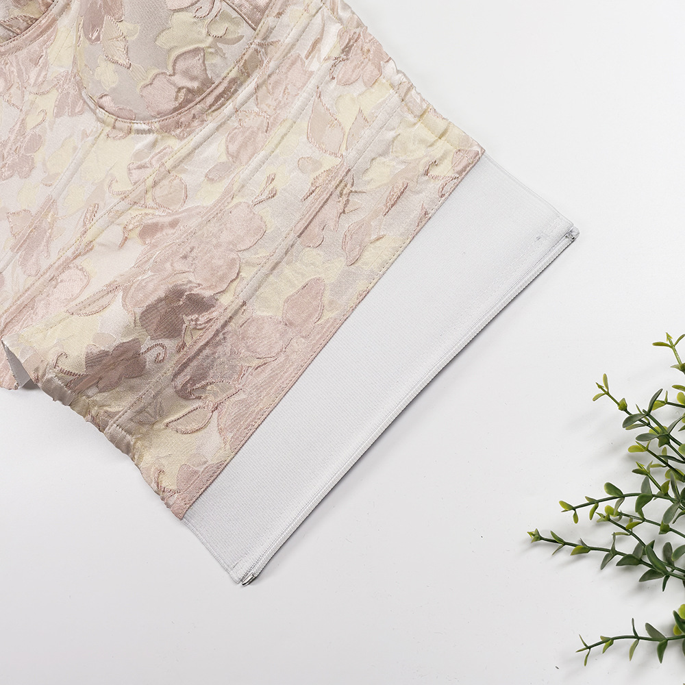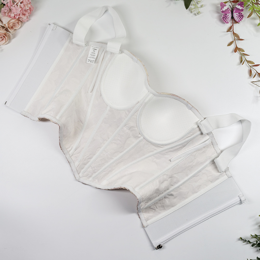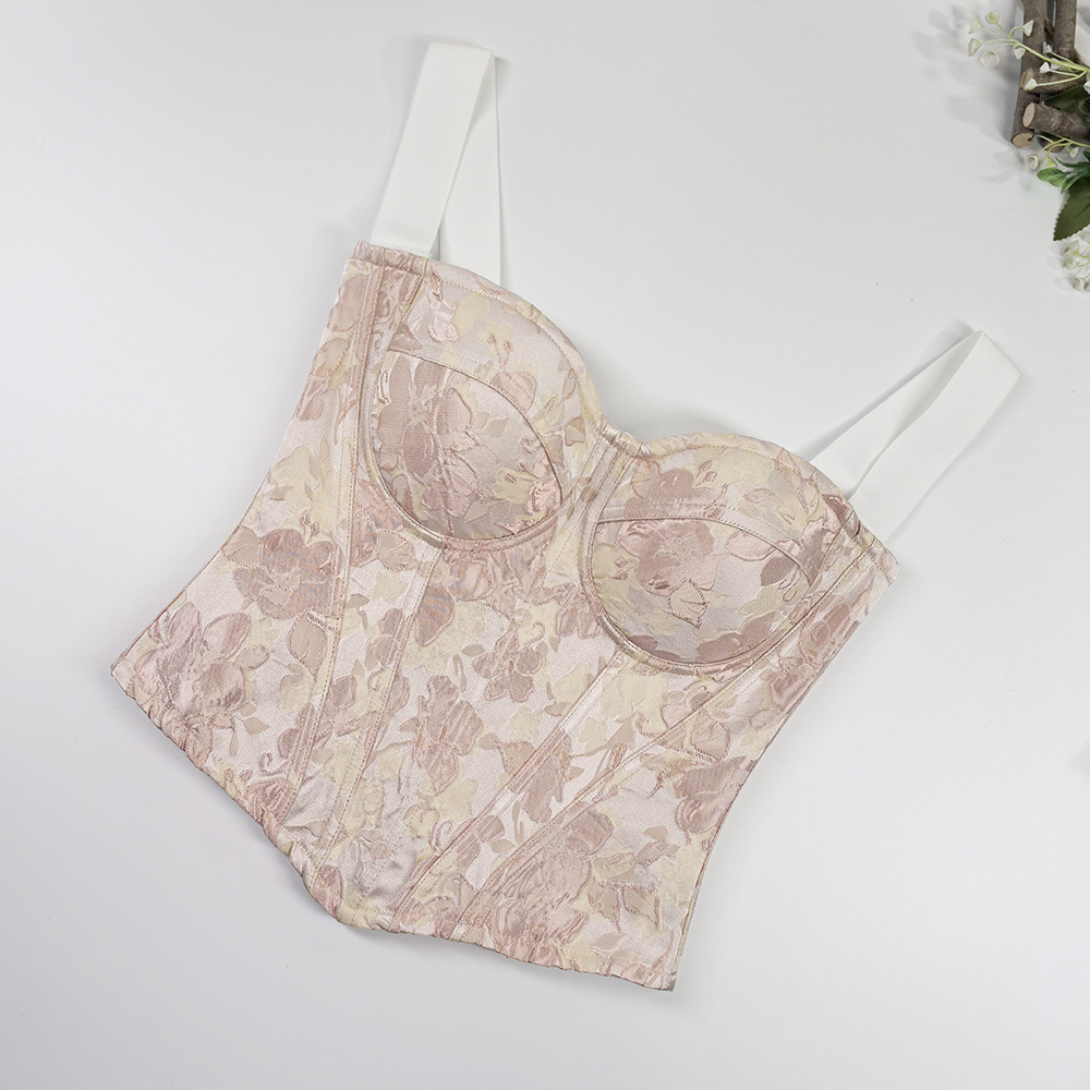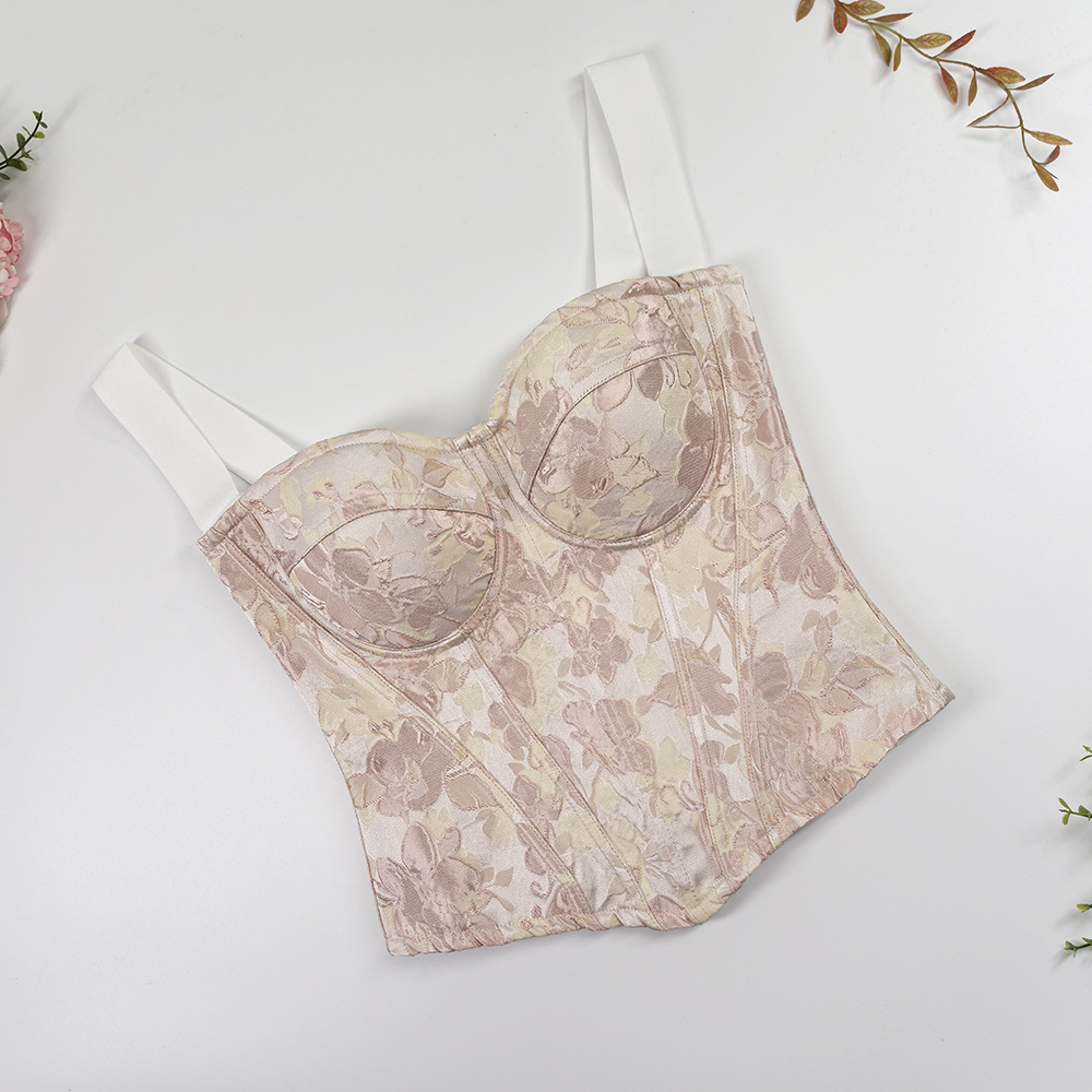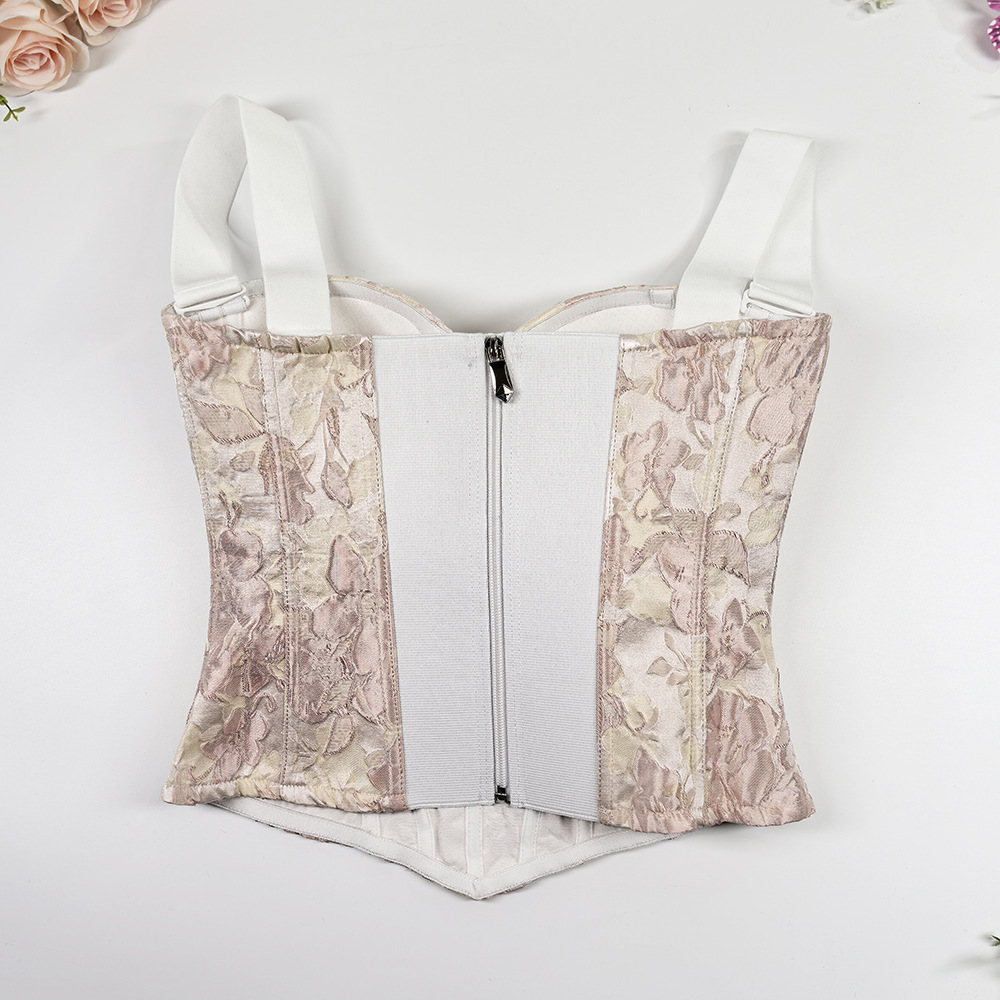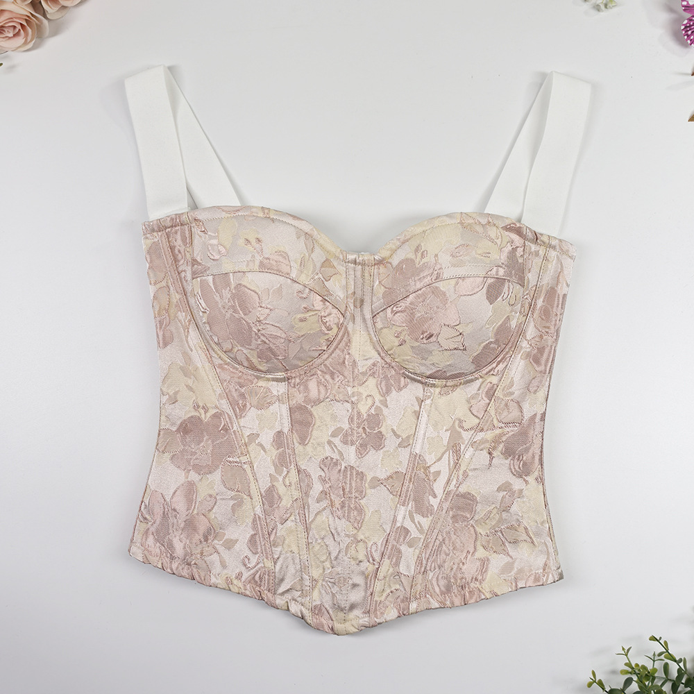甜美风修身宽肩带美背吊带上衣 高级感外穿宫廷收腰大码鱼骨胸衣