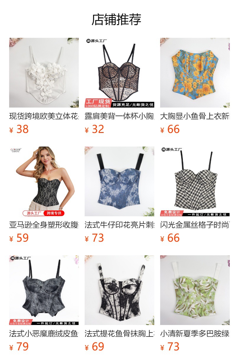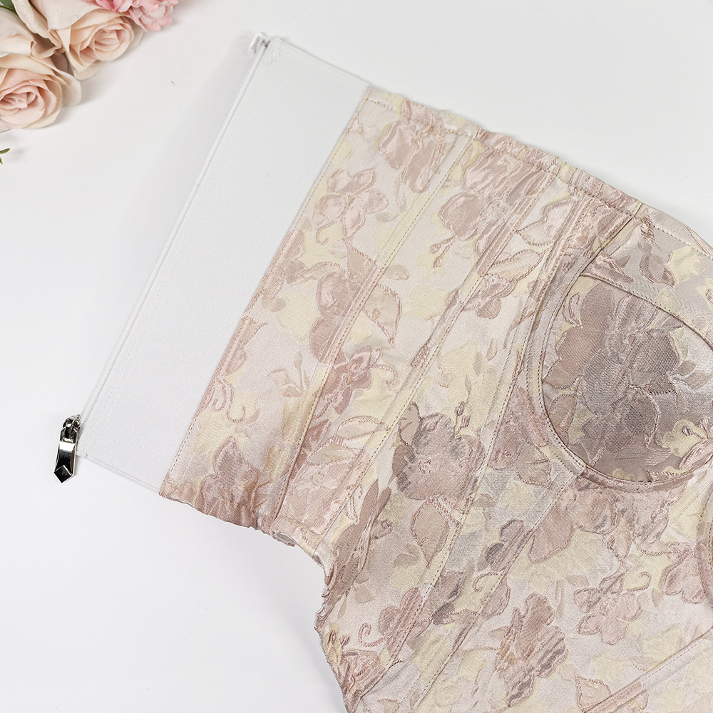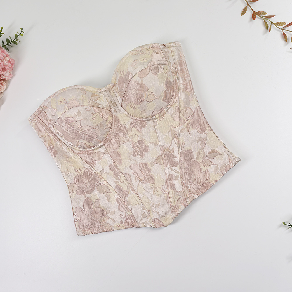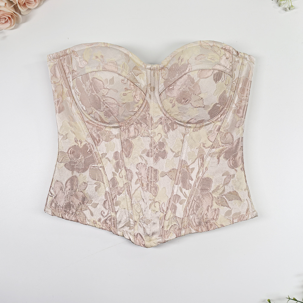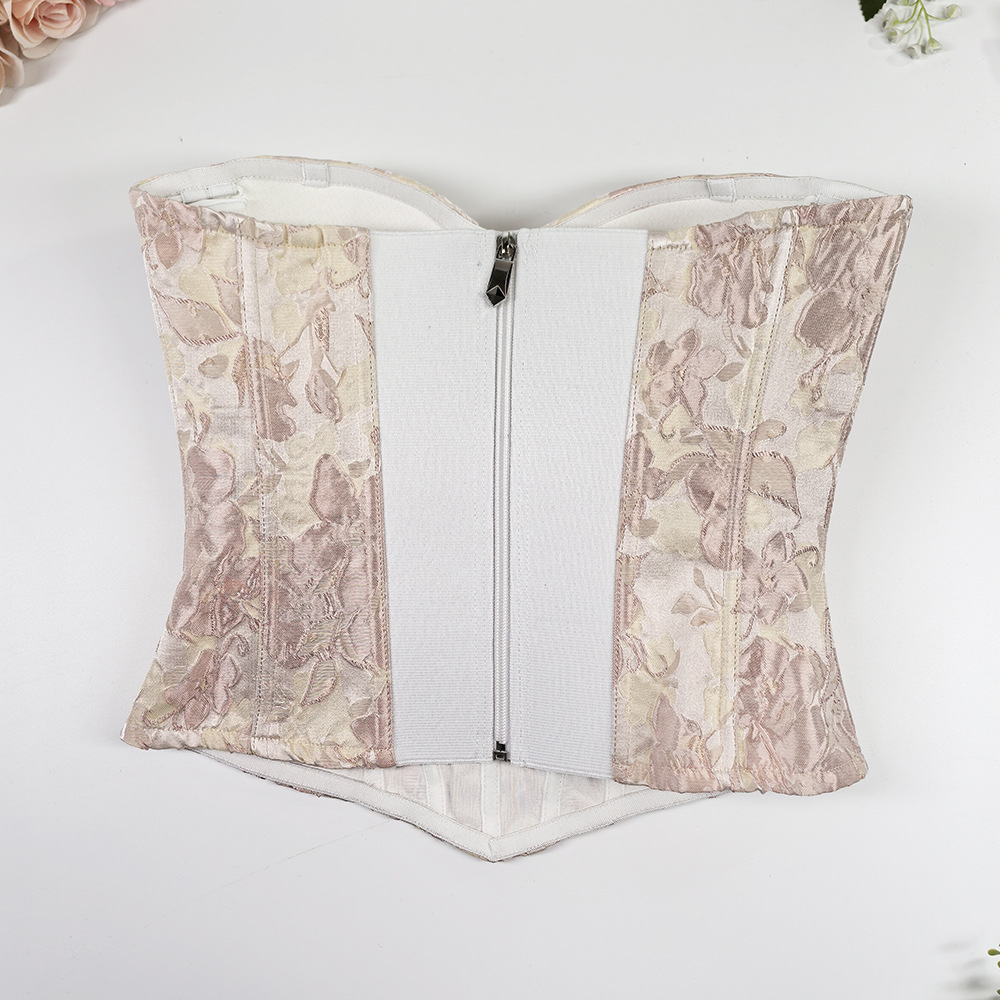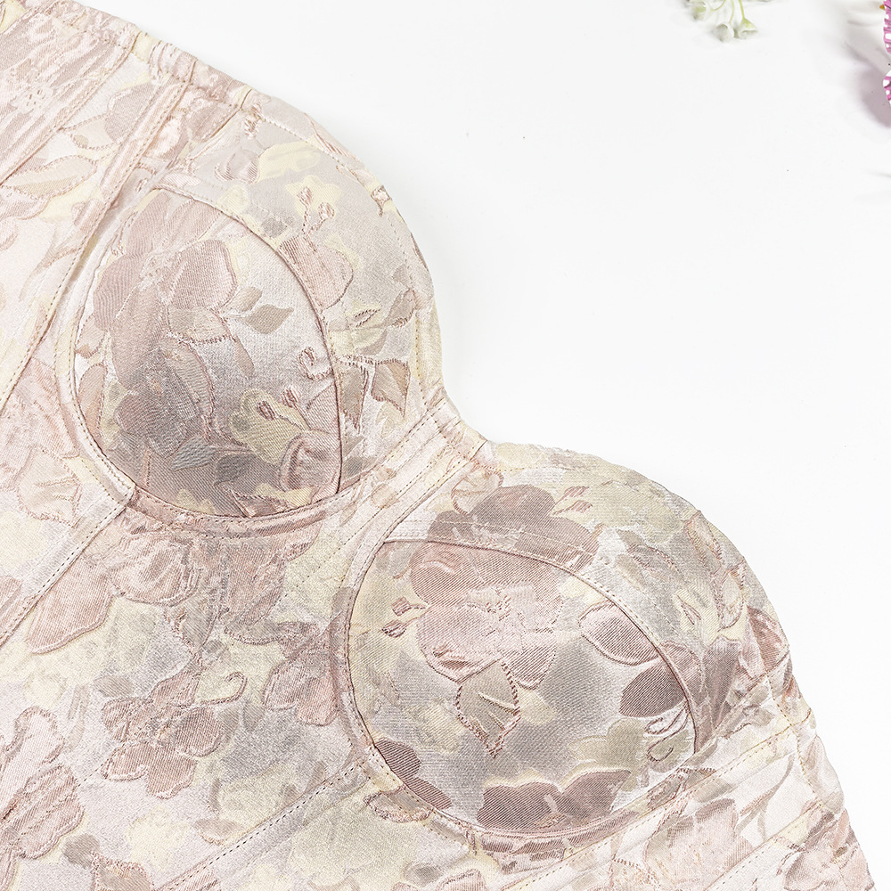 甜美风修身宽肩带美背吊带上衣 高级感外穿宫廷收腰大码鱼骨胸衣