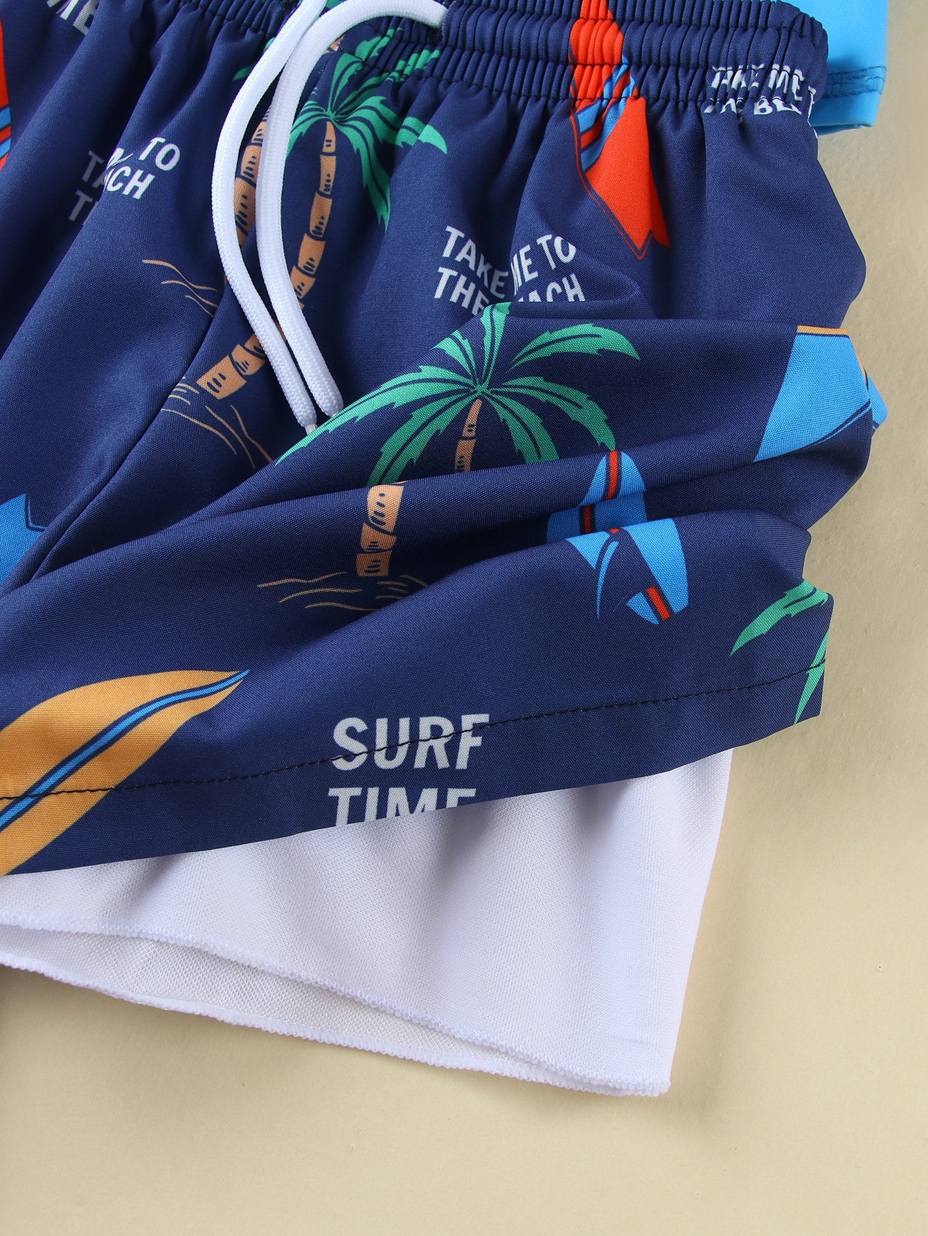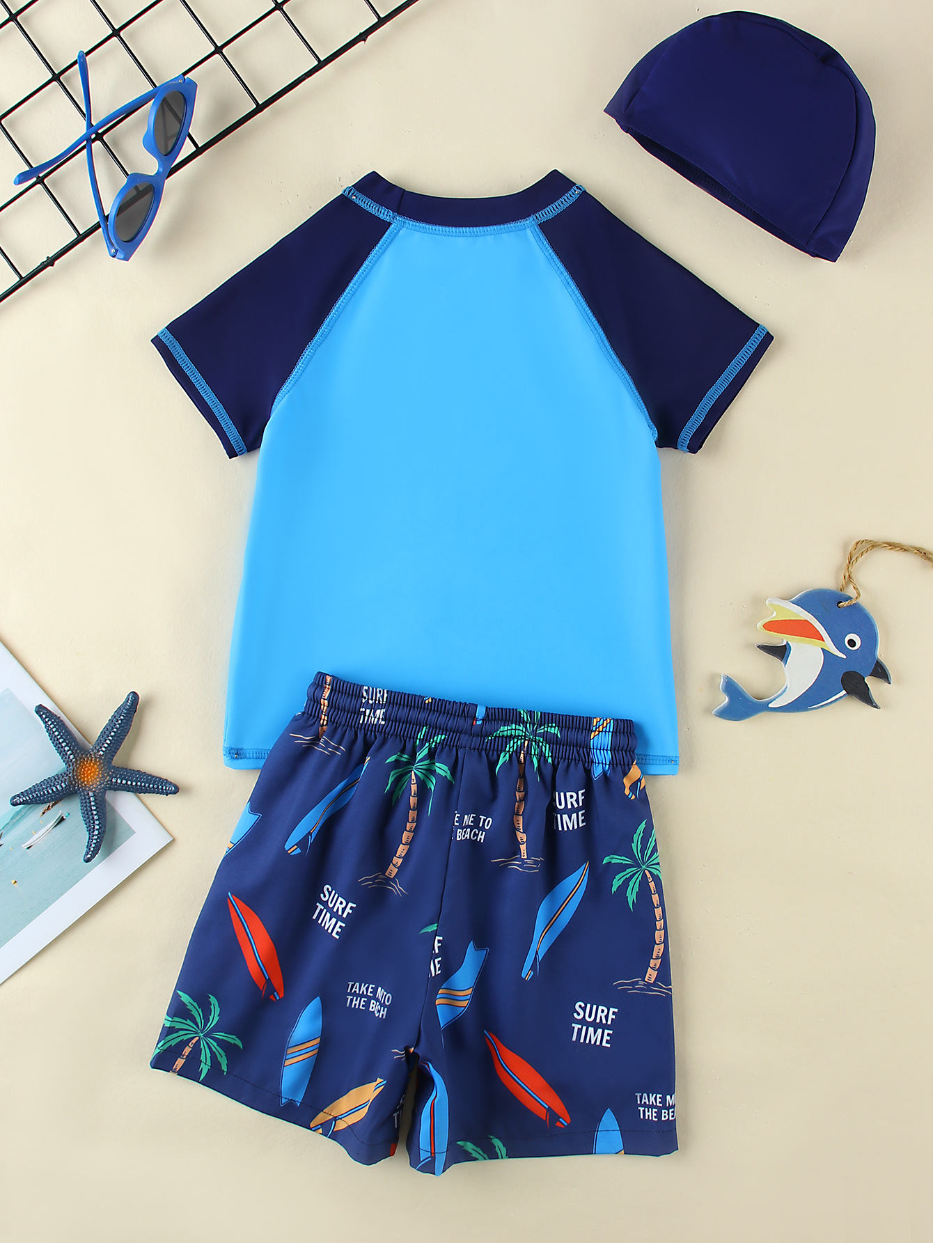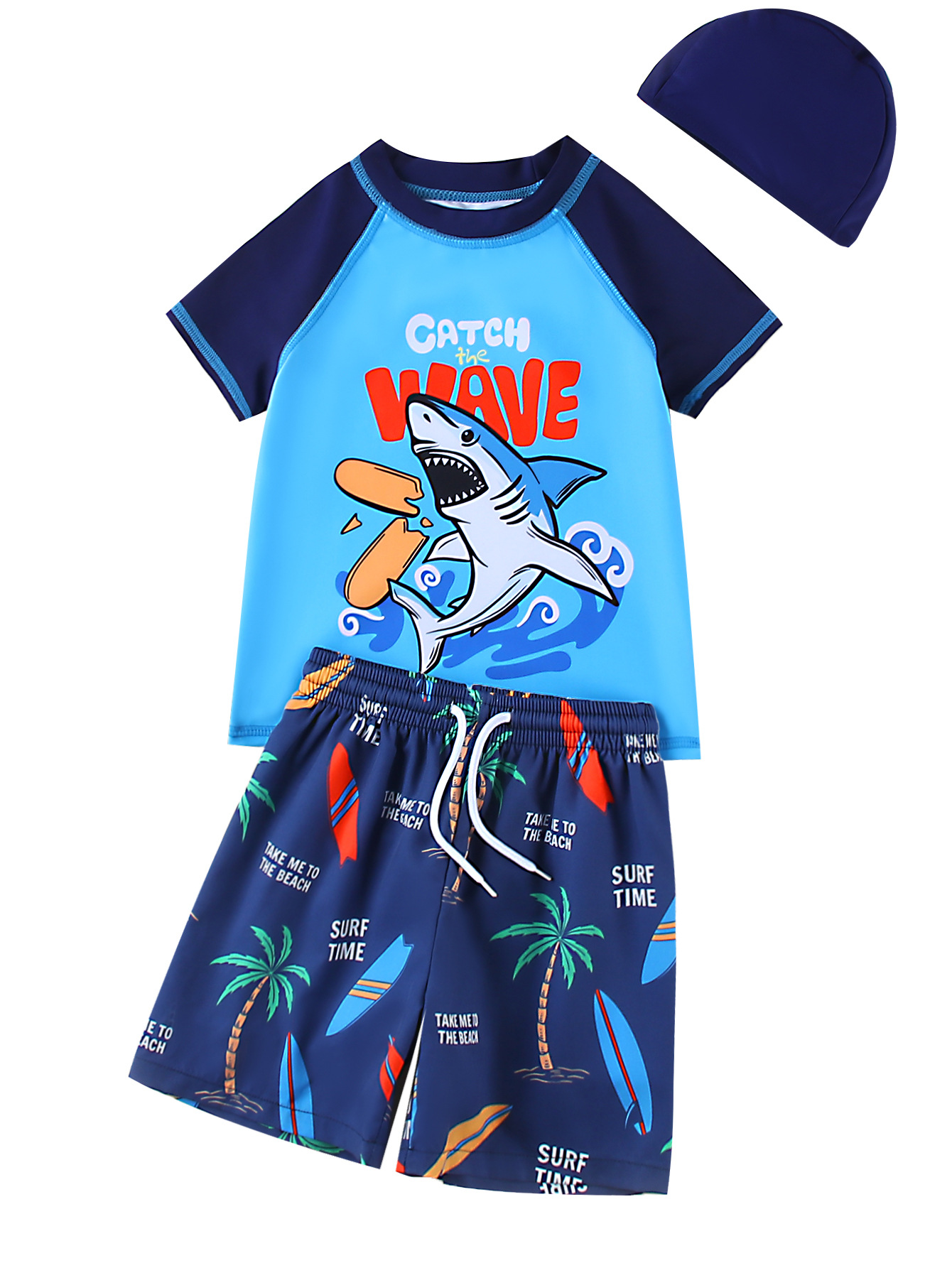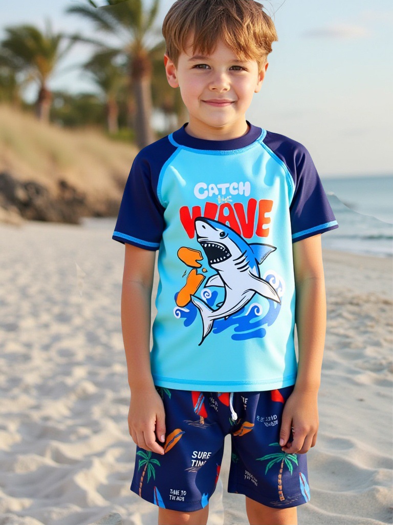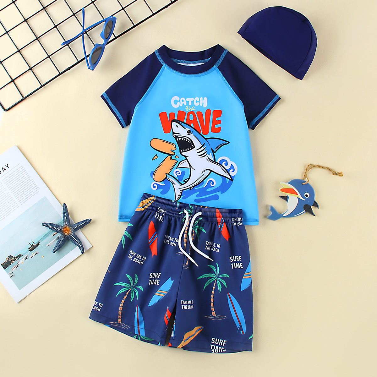 어린이 수영복 소년 분할 수영복 2025 새로운 만화 상어 짧은 소매 비치 반바지 소년 수영복 여름