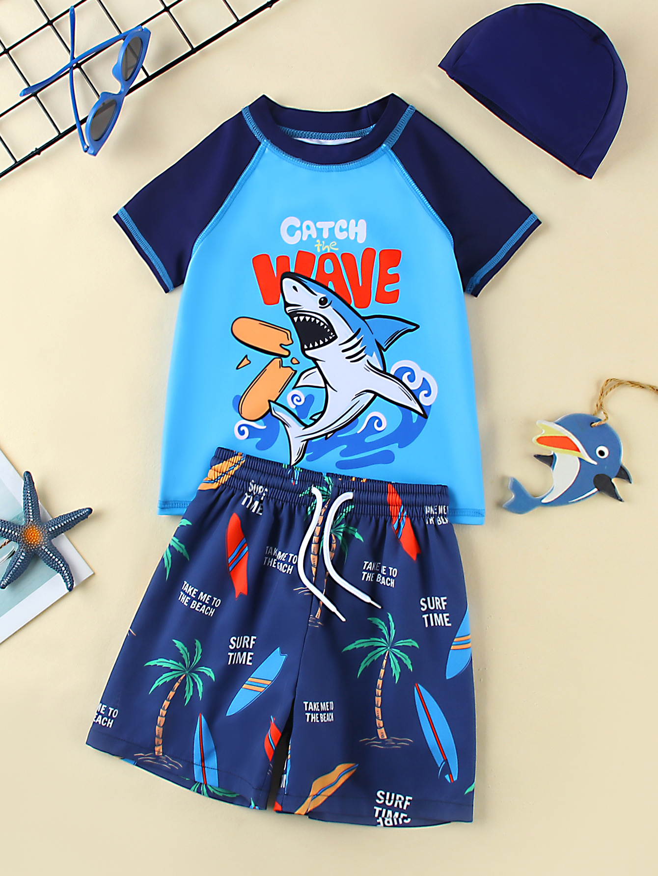 어린이 수영복 소년 분할 수영복 2025 새로운 만화 상어 짧은 소매 비치 반바지 소년 수영복 여름스토어 가기