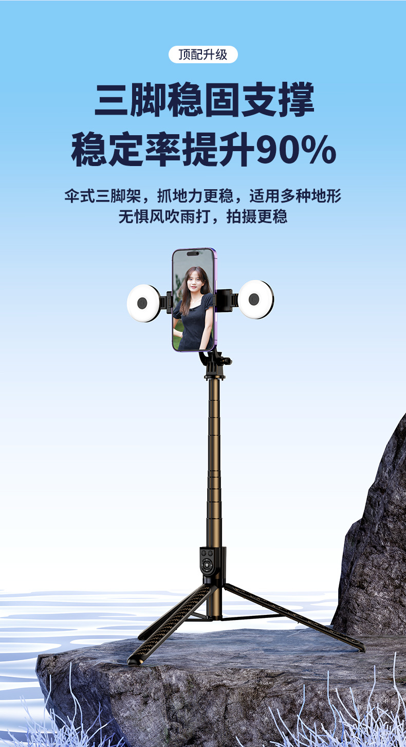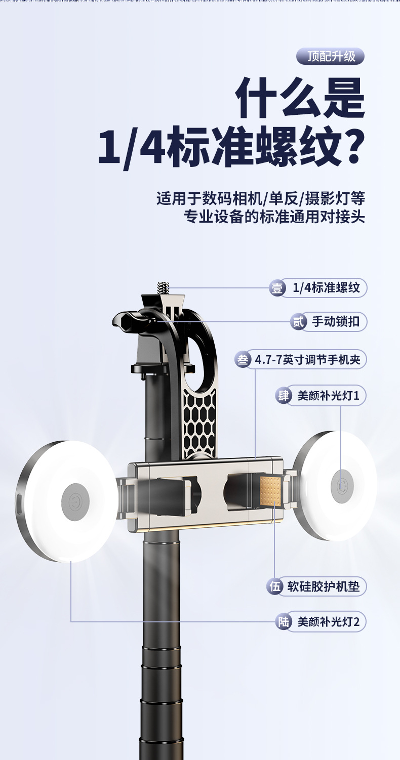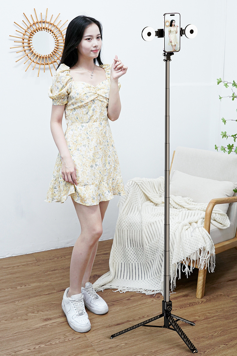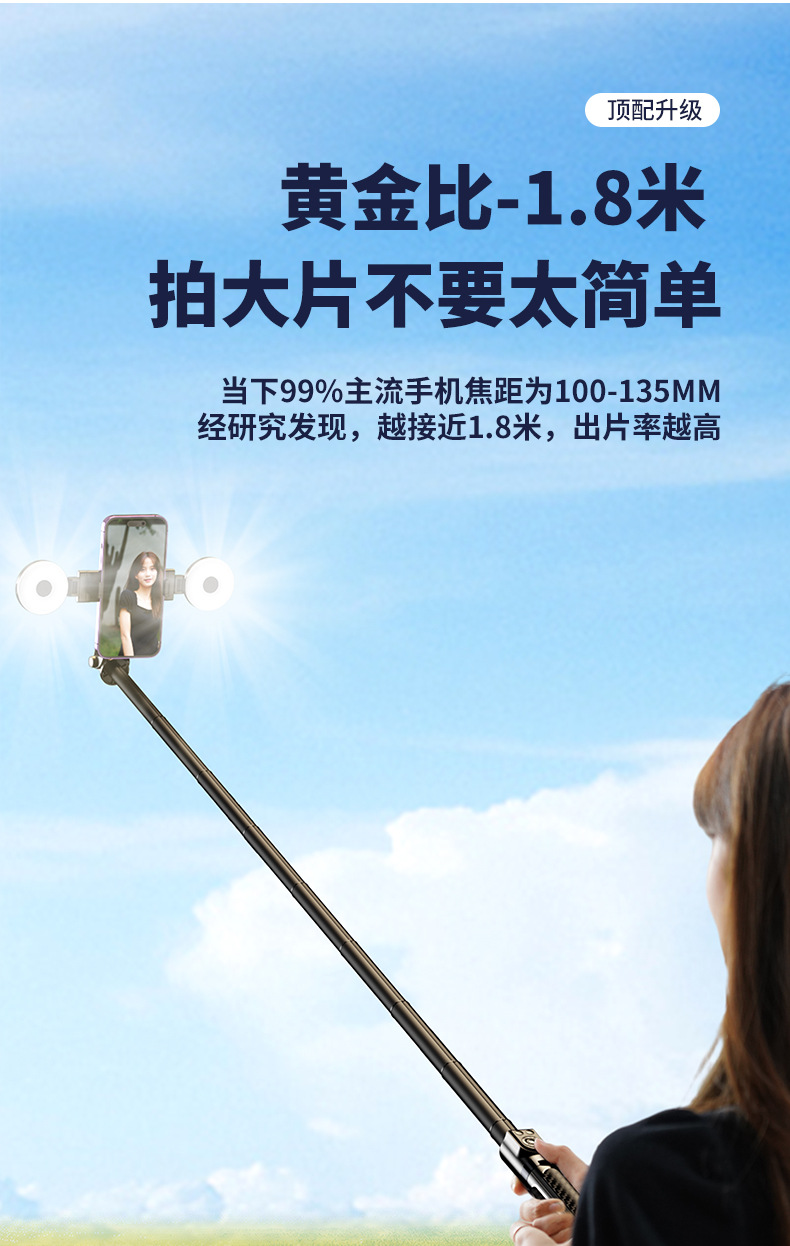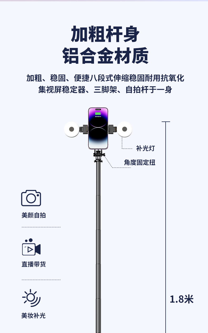 공장 직접 판매 새로운 확장 강화 1.8m 알루미늄 합금 바닥 라이브 방송 브래킷 휴대 전화 블루투스 촬영 셀카 스틱