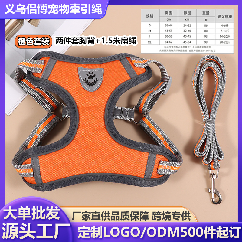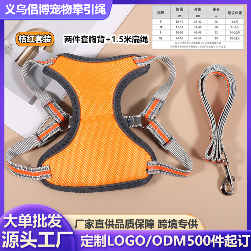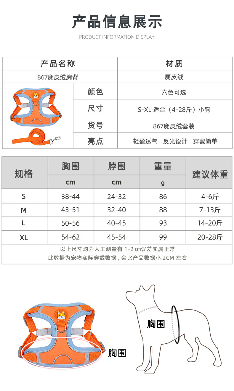 • 【오렌지색】 편안한 스웨이드 가죽 리드줄 + 가슴 하네스