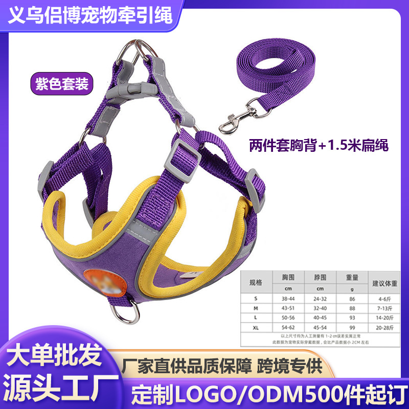 • 【보라색】 편안한 스웨이드 가죽 리드줄 + 가슴 하네스
