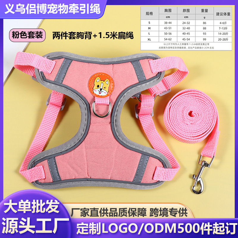 반려견 가슴줄 도매 반사 스웨이드 벨벳 조끼형 비숑 야외 안전 안전줄 반려묘 목줄