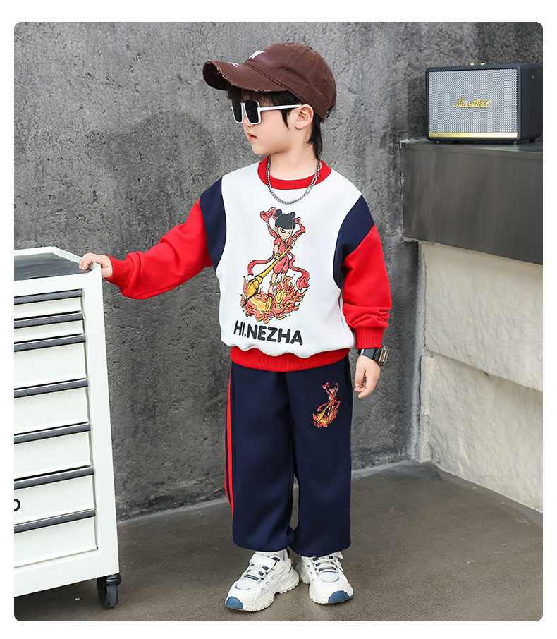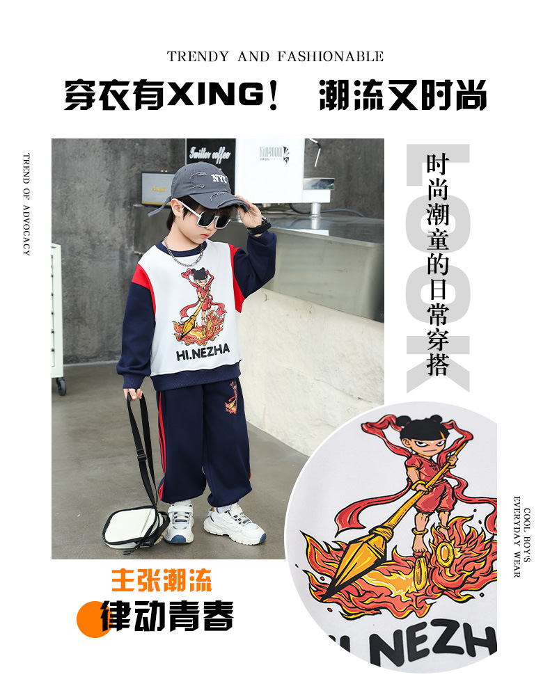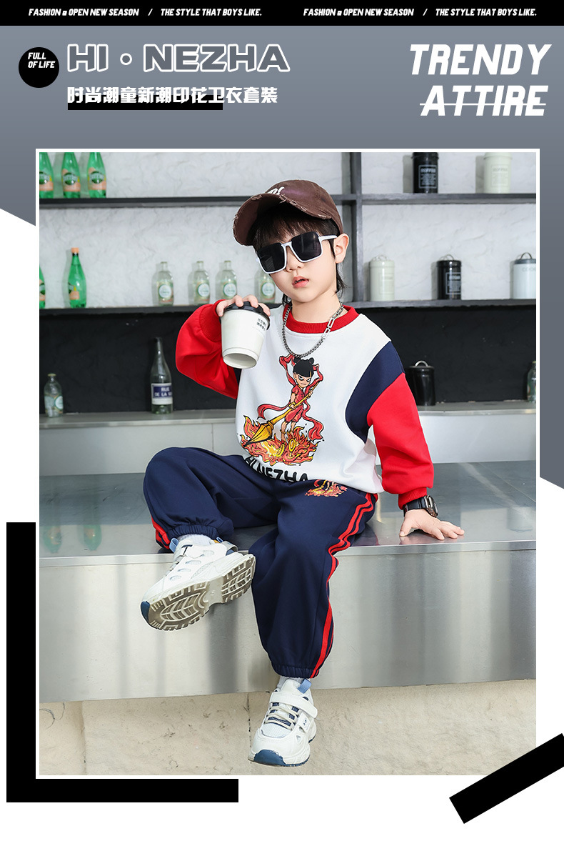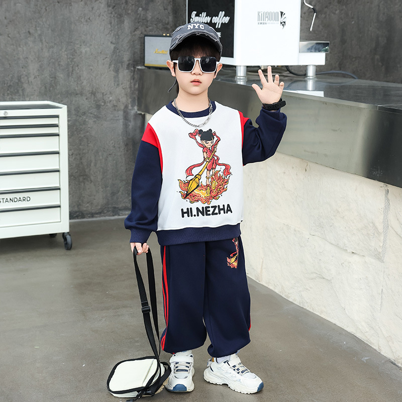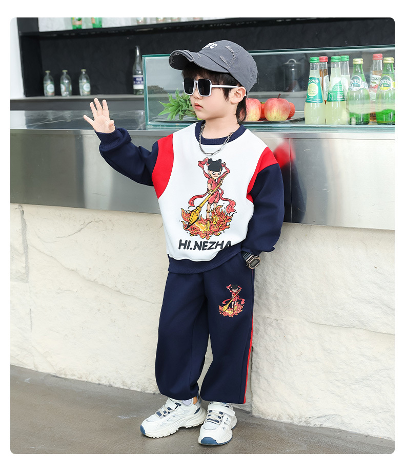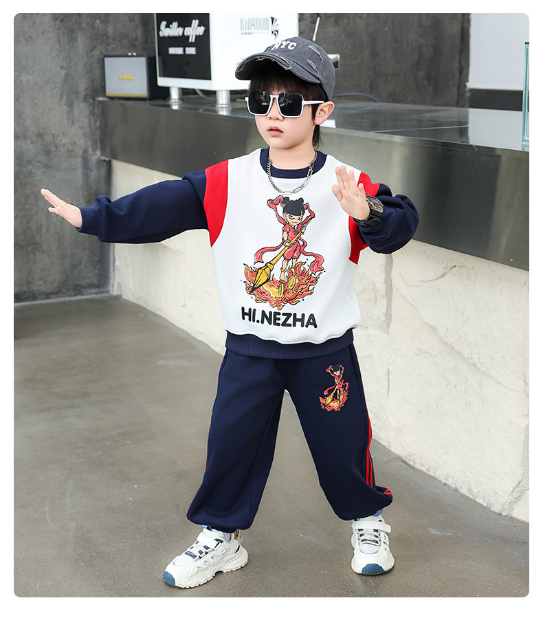 소년 Nezha 운동복 정장 2025 어린이 한국 스타일 소년 봄 잘 생긴 운동복 순수 코튼 투피스 아동 의류스토어 가기