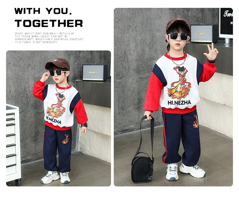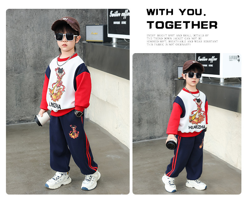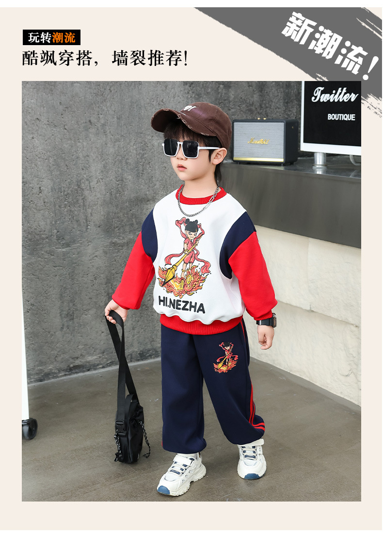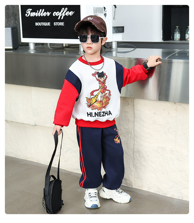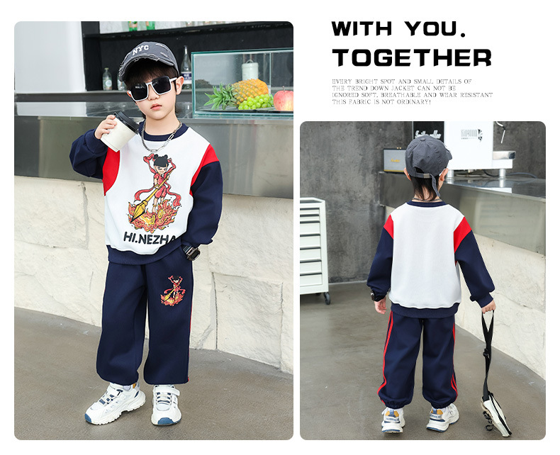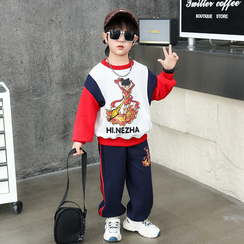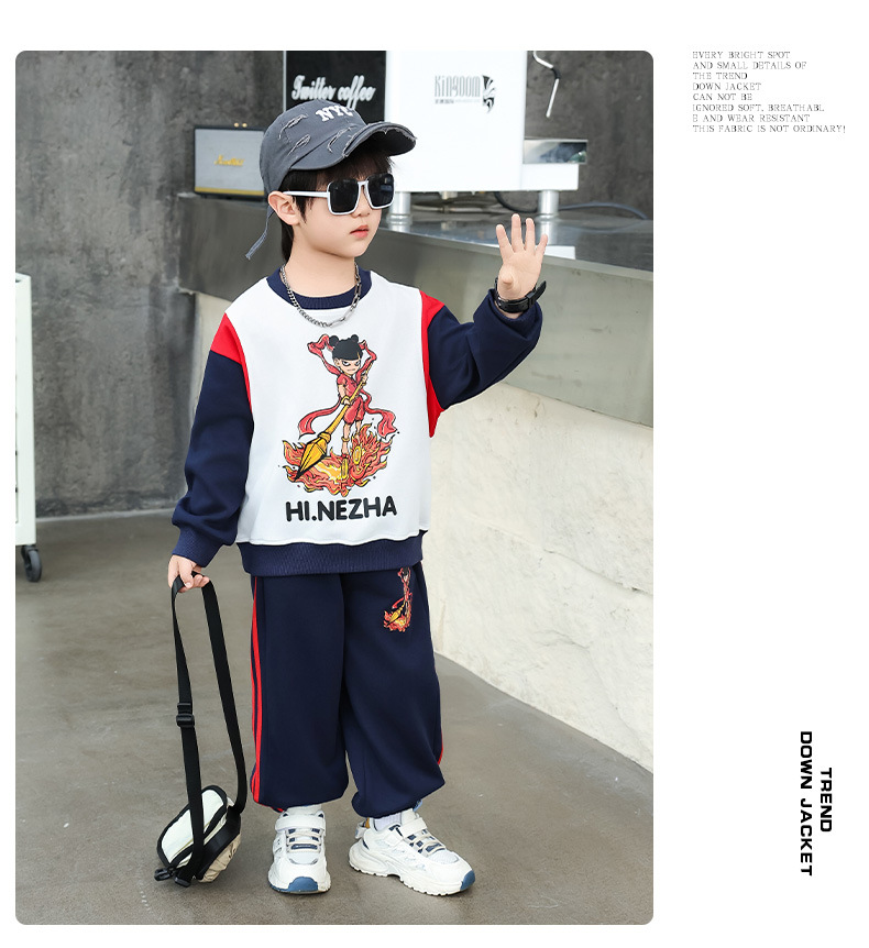 소년 Nezha 운동복 정장 2025 어린이 한국 스타일 소년 봄 잘 생긴 운동복 순수 코튼 투피스 아동 의류스토어 가기