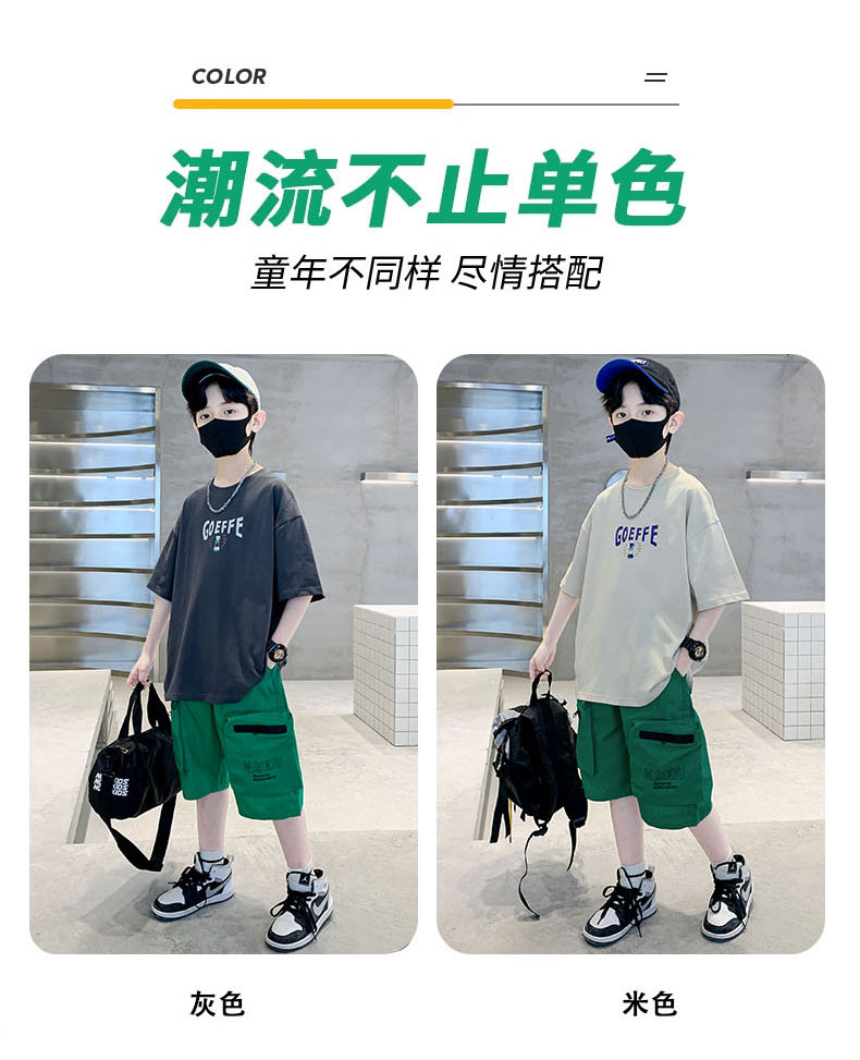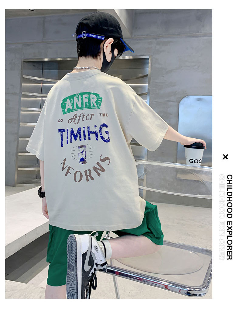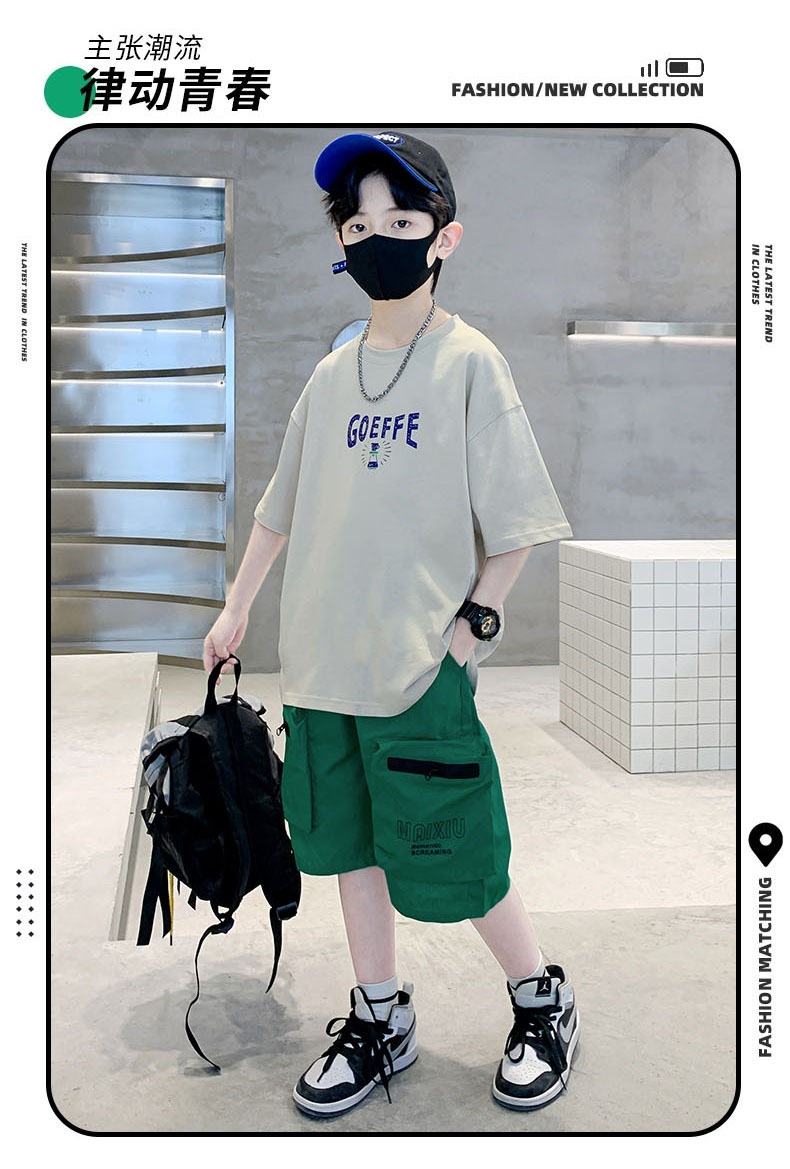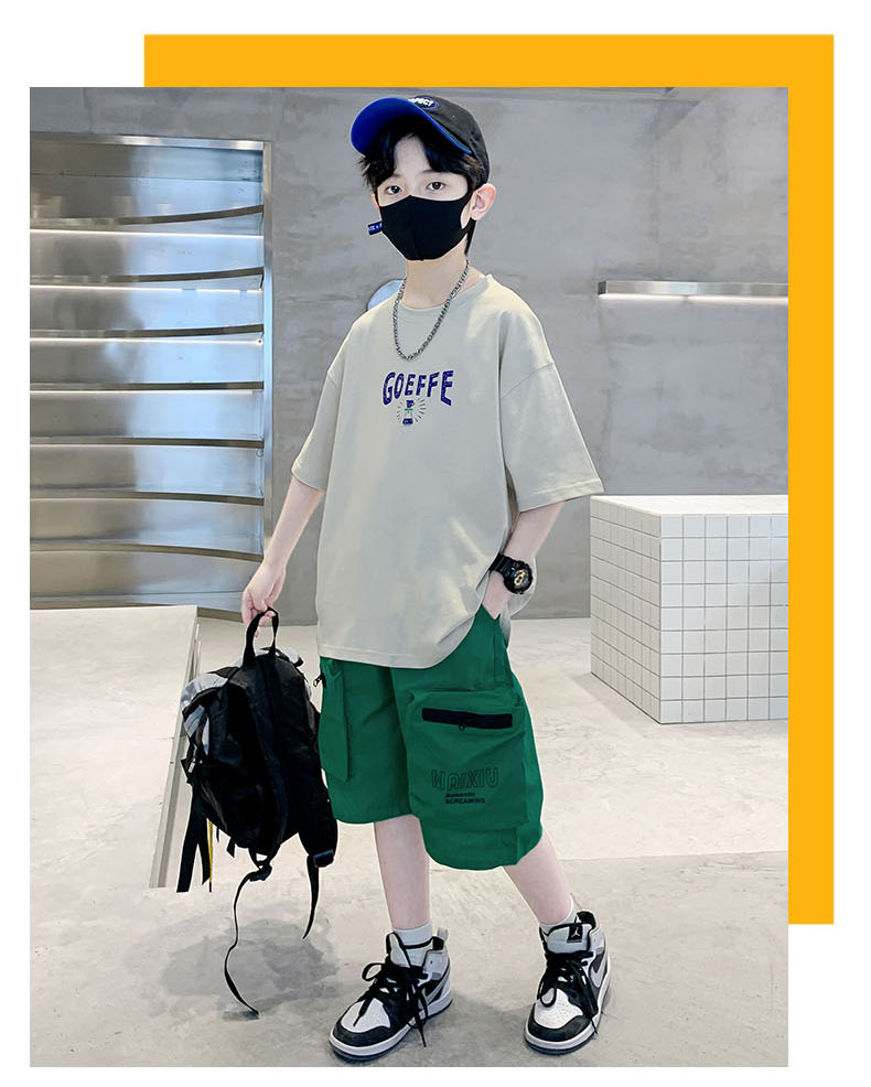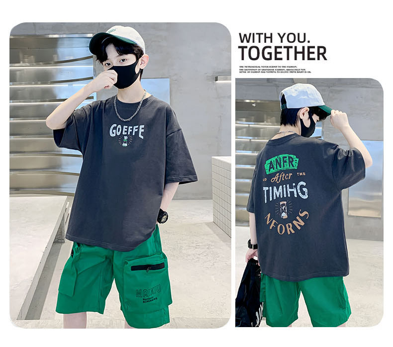 남학생 '빅 키즈를위한 한국식 세련된 쿨 스포츠 세트 여름 새로운 서양식 편지 인쇄 반팔 반바지 투피스 세트