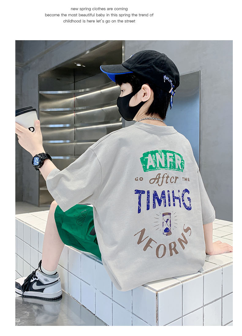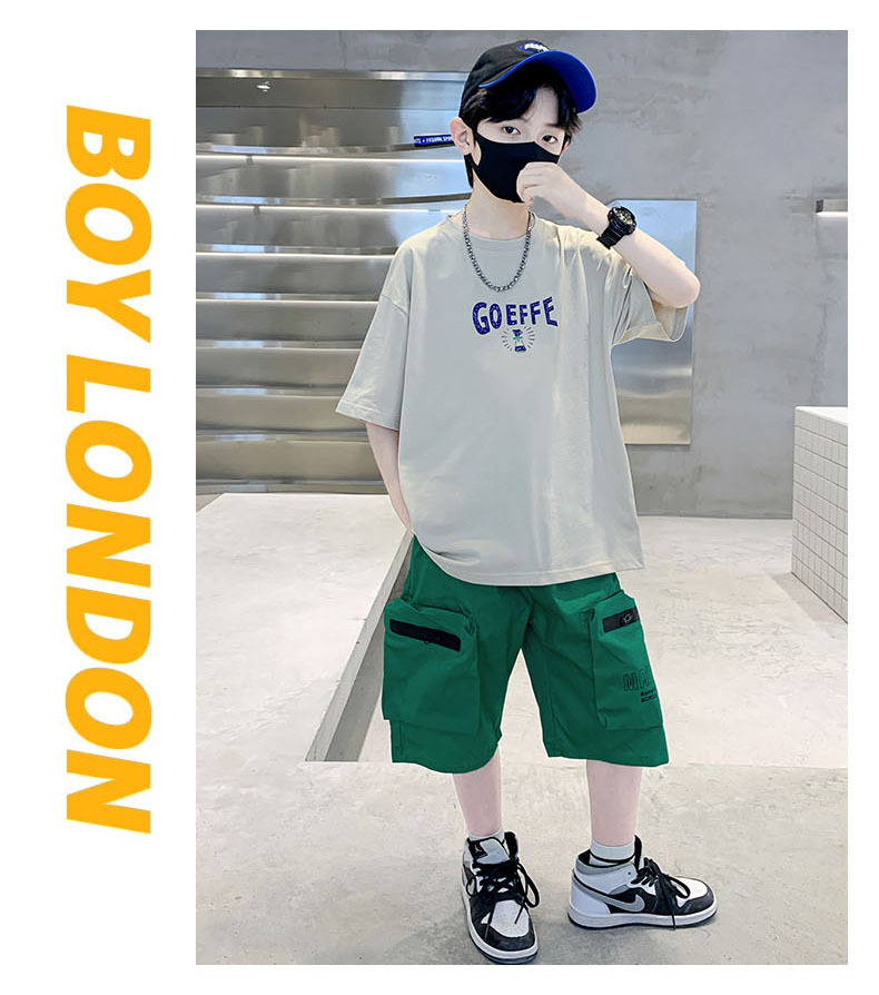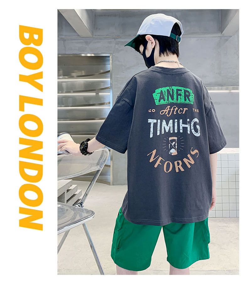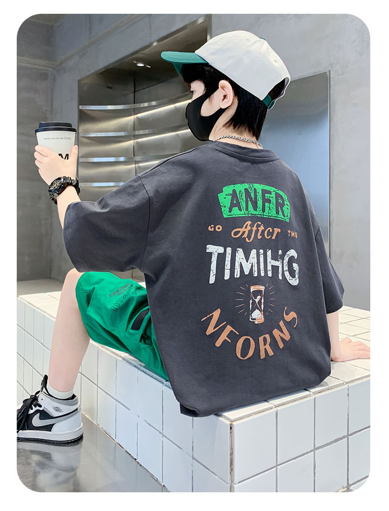 남학생 '빅 키즈를위한 한국식 세련된 쿨 스포츠 세트 여름 새로운 서양식 편지 인쇄 반팔 반바지 투피스 세트스토어 가기