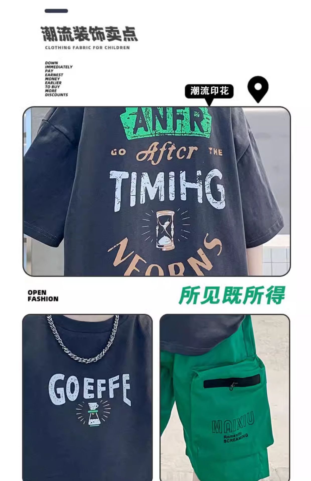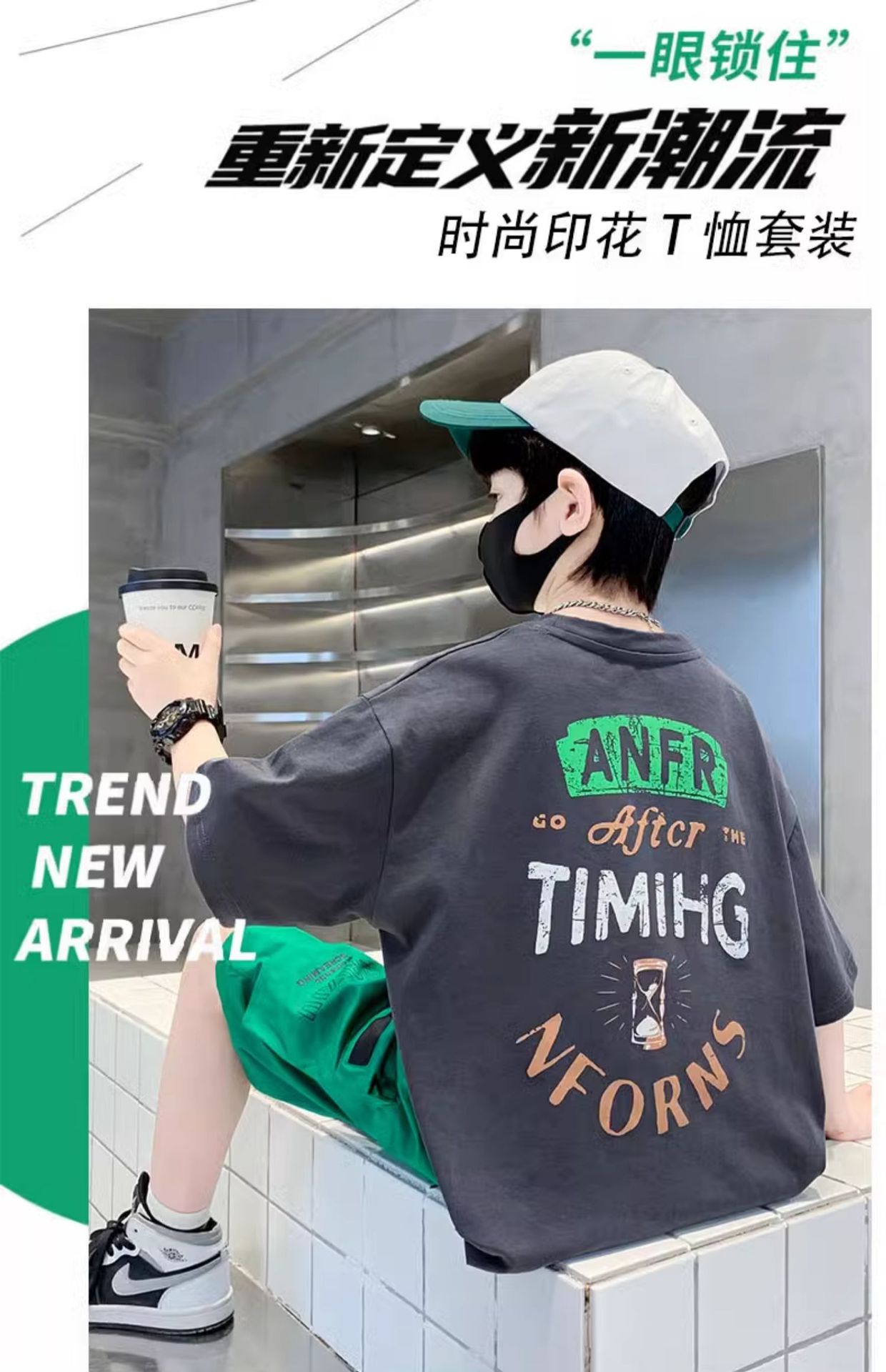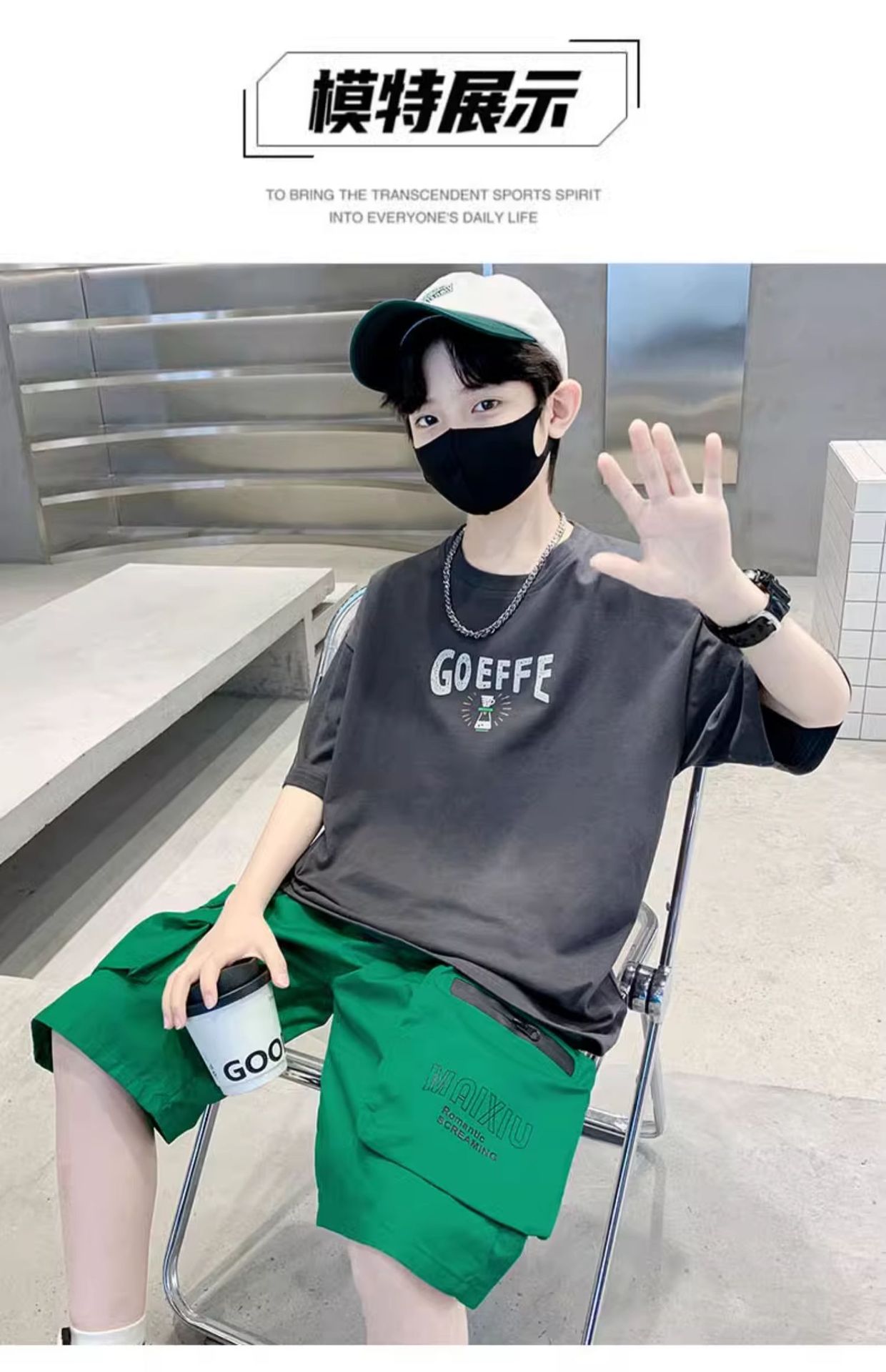 남학생 '빅 키즈를위한 한국식 세련된 쿨 스포츠 세트 여름 새로운 서양식 편지 인쇄 반팔 반바지 투피스 세트스토어 가기