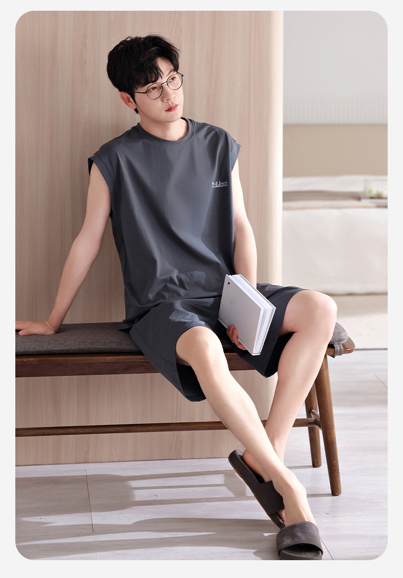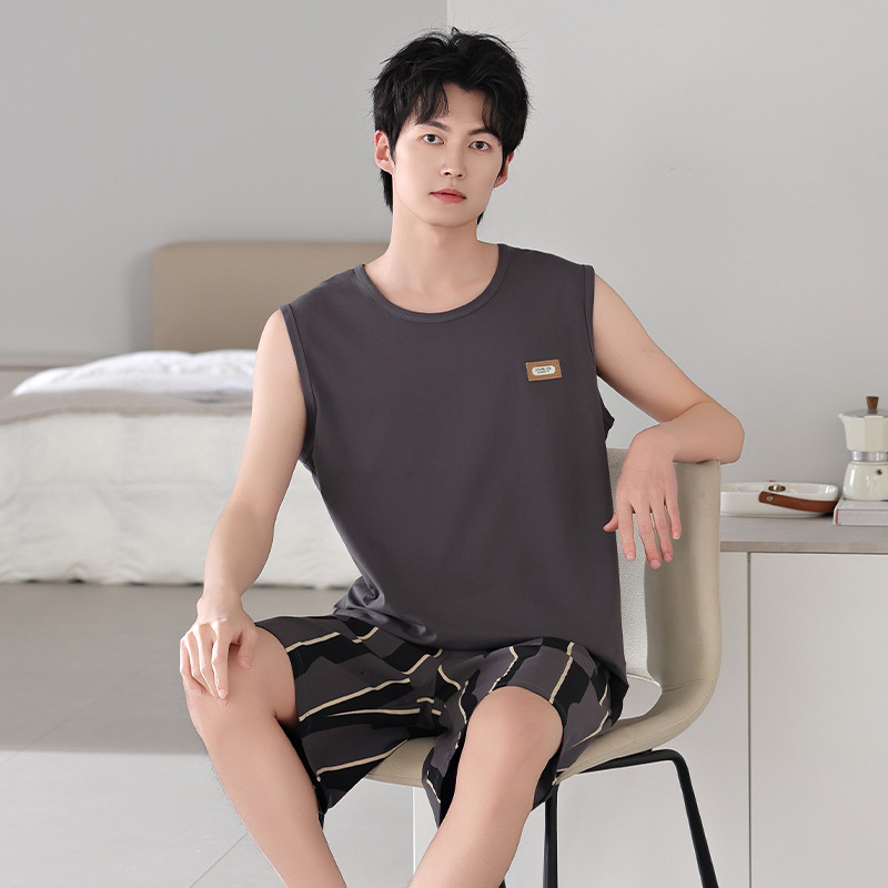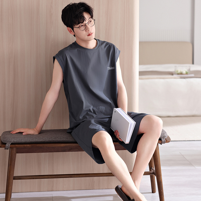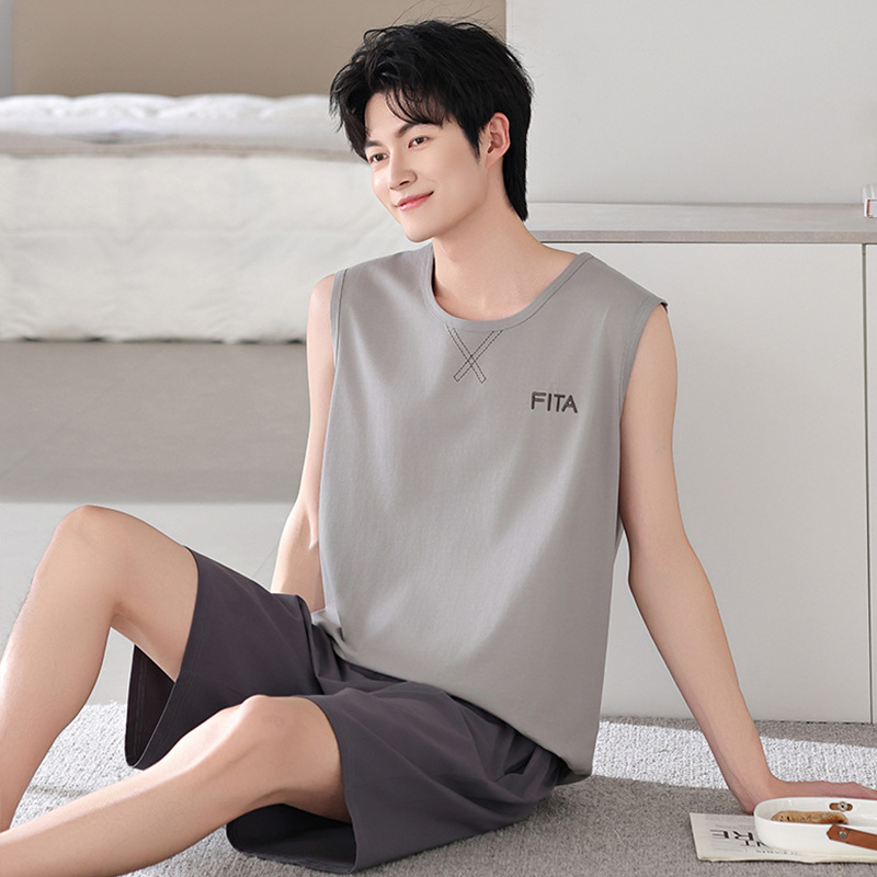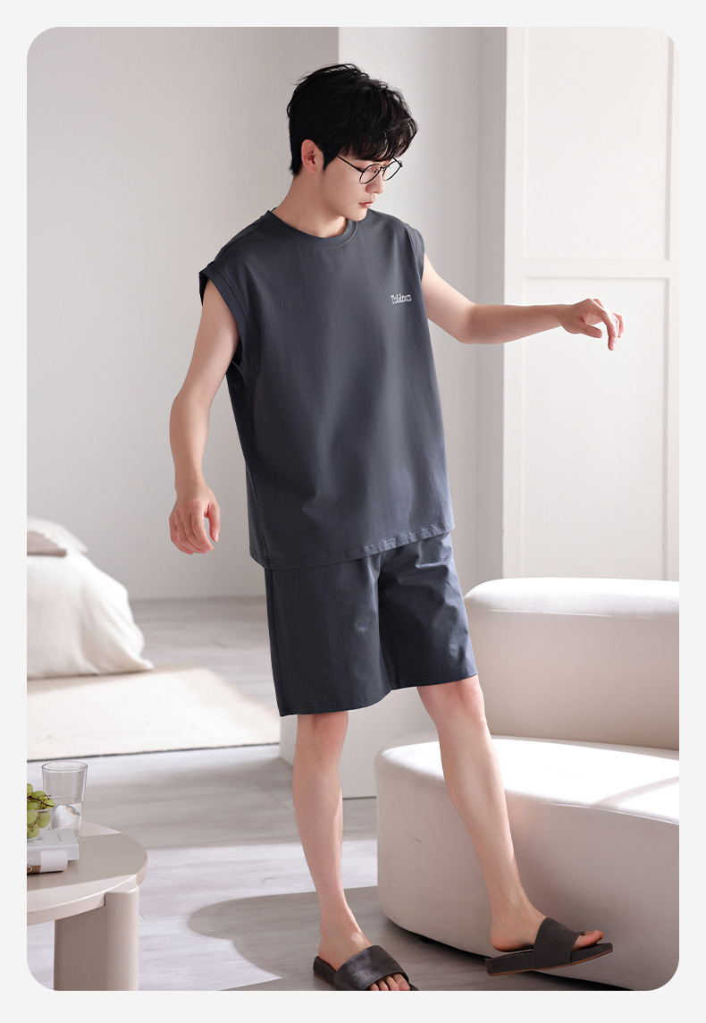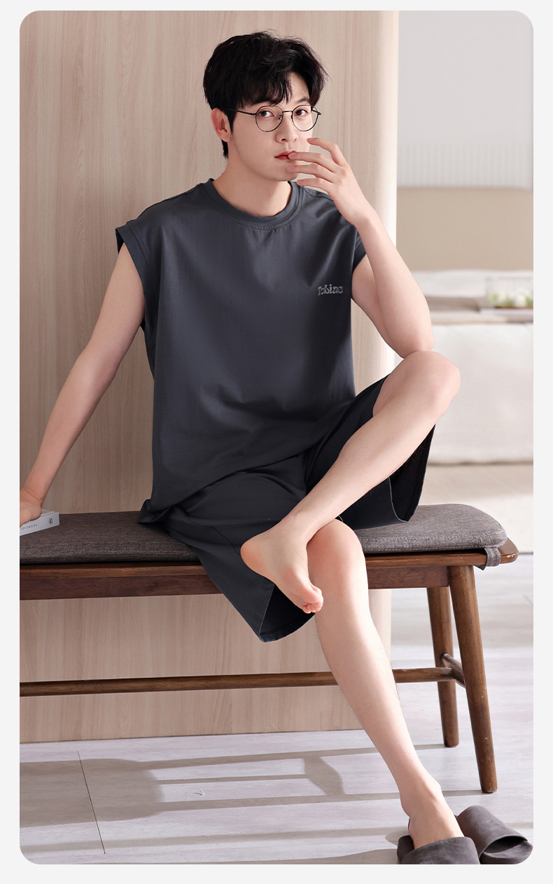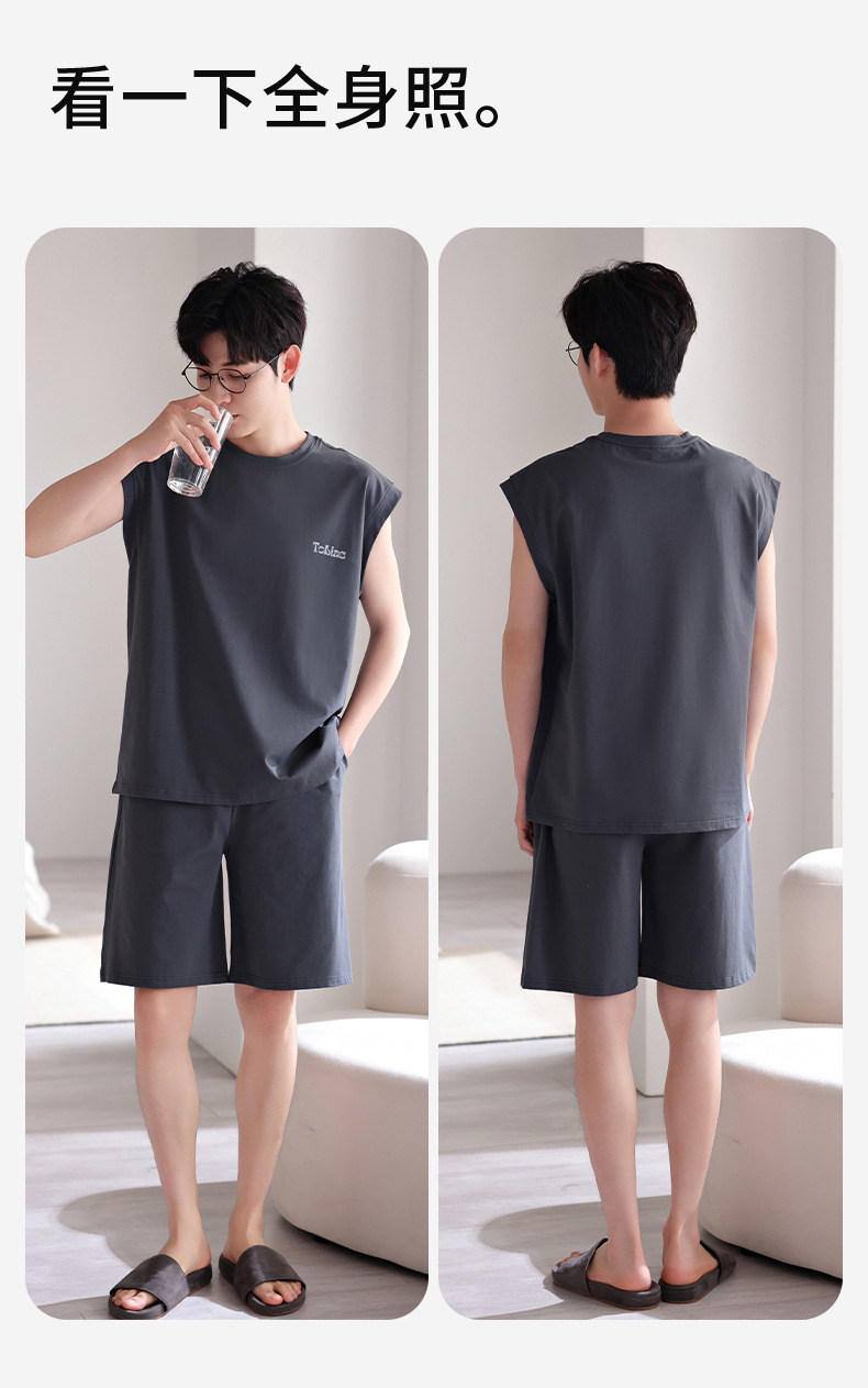 남성용 잠옷, 여름 조끼, 반바지, 순면 얇은 민소매 슈트, 여름 야외 스포츠 남성용 가정복스토어 가기