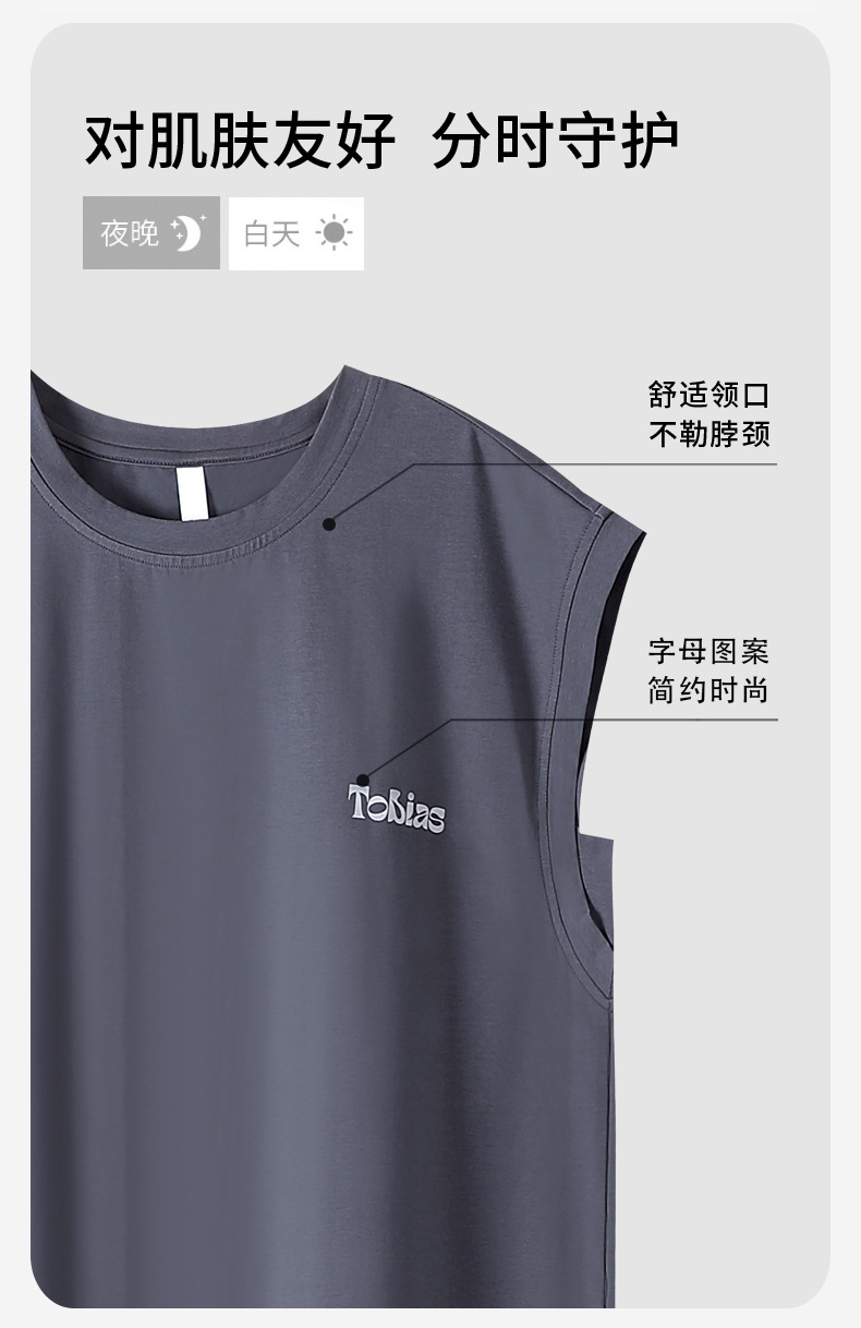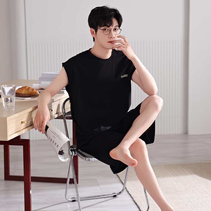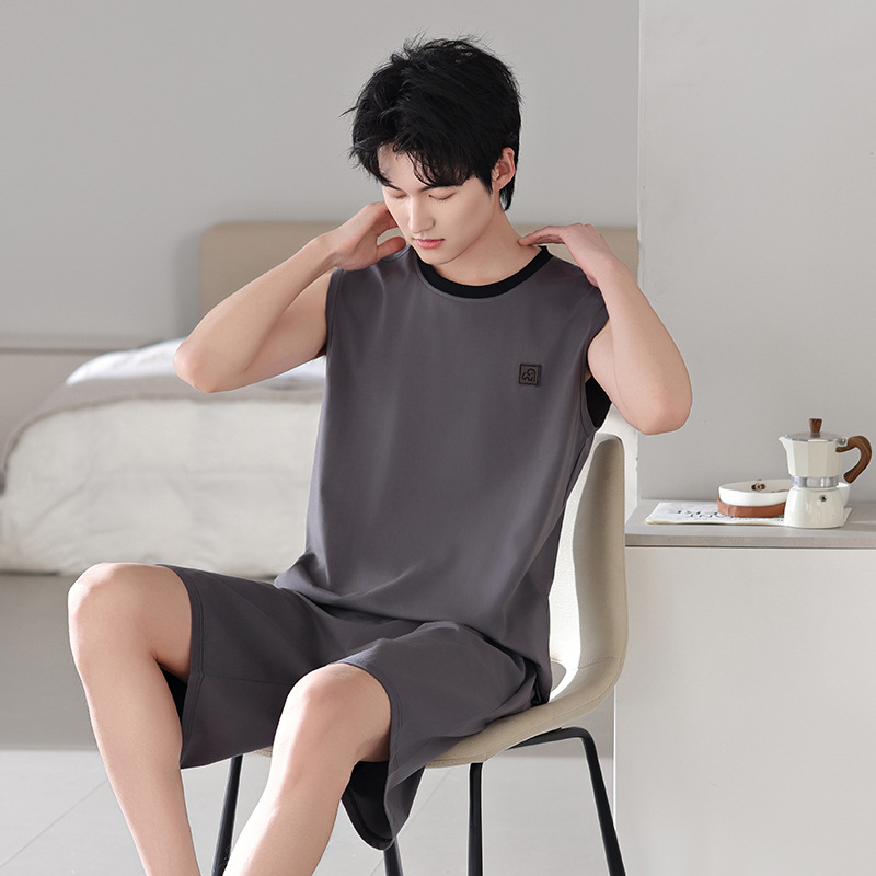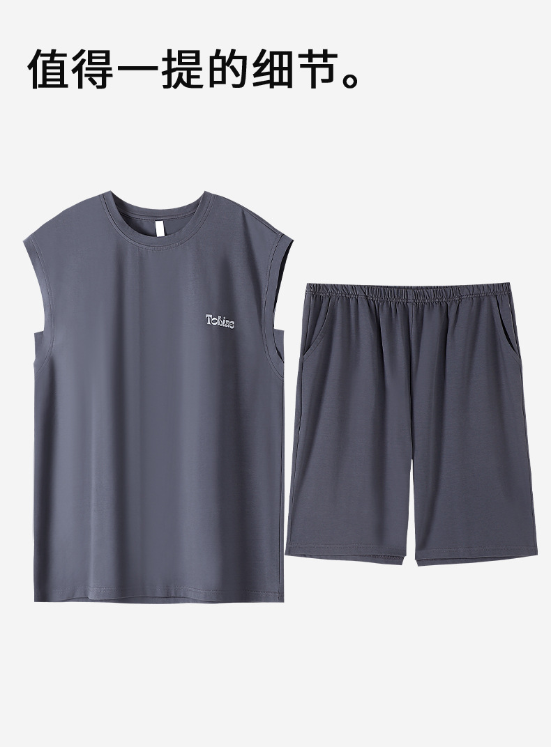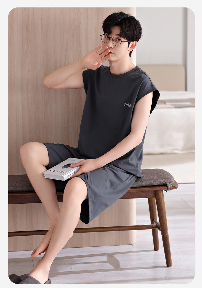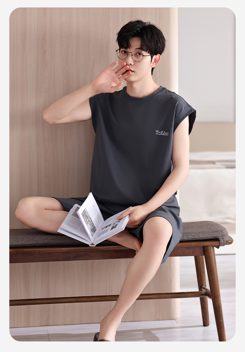 남성용 잠옷, 여름 조끼, 반바지, 순면 얇은 민소매 슈트, 여름 야외 스포츠 남성용 가정복스토어 가기