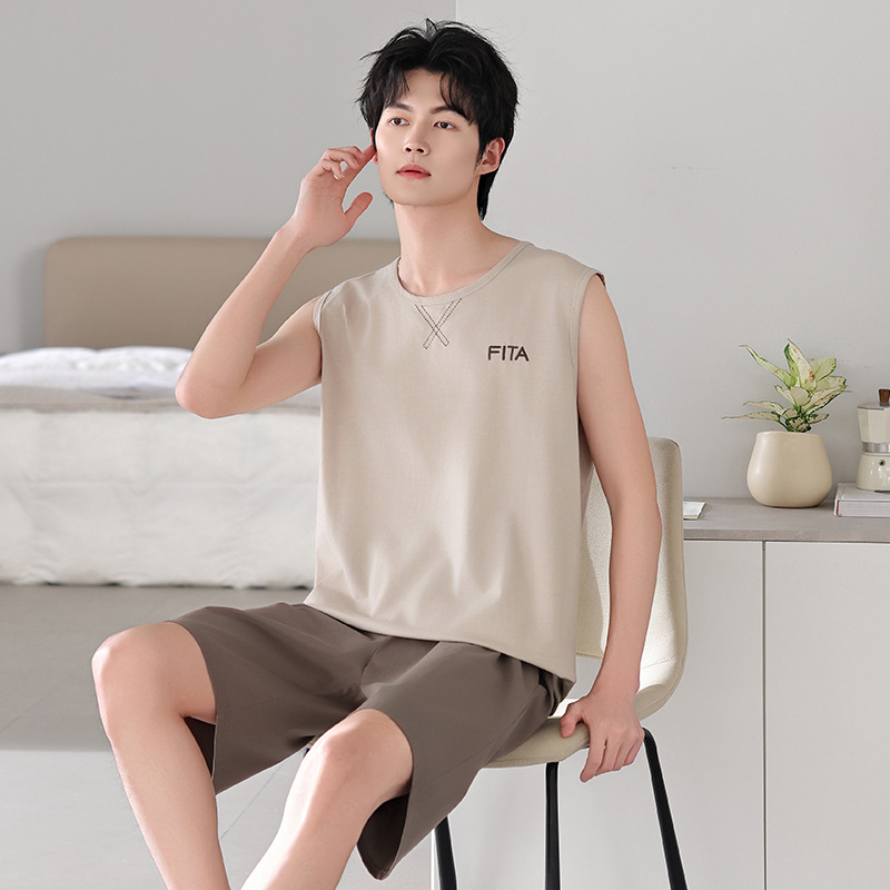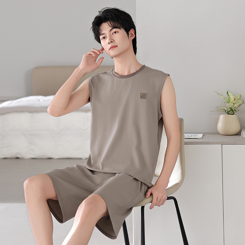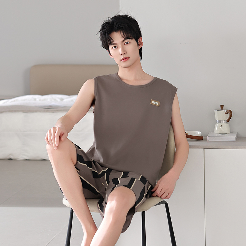 남성용 잠옷, 여름 조끼, 반바지, 순면 얇은 민소매 슈트, 여름 야외 스포츠 남성용 가정복