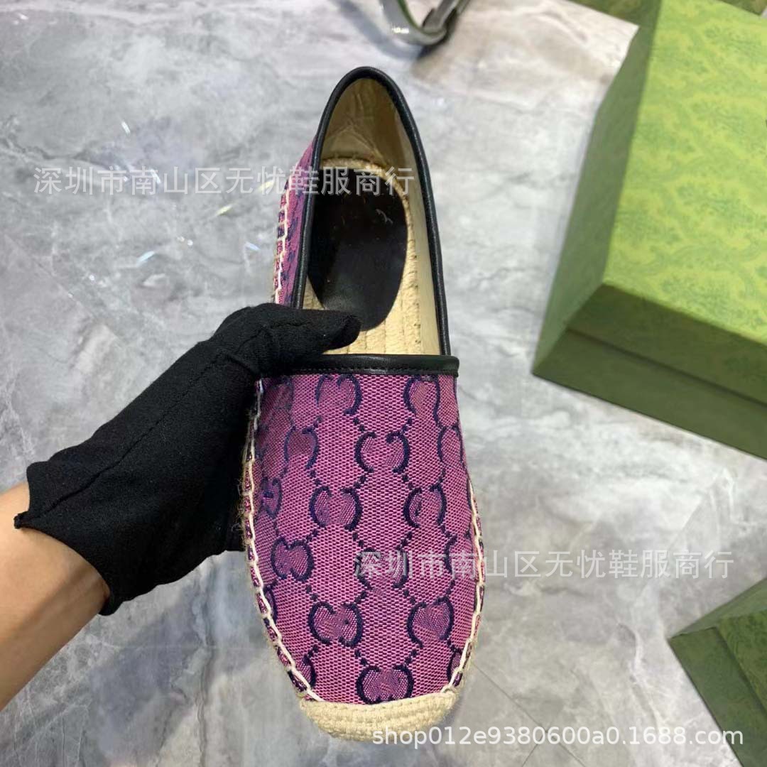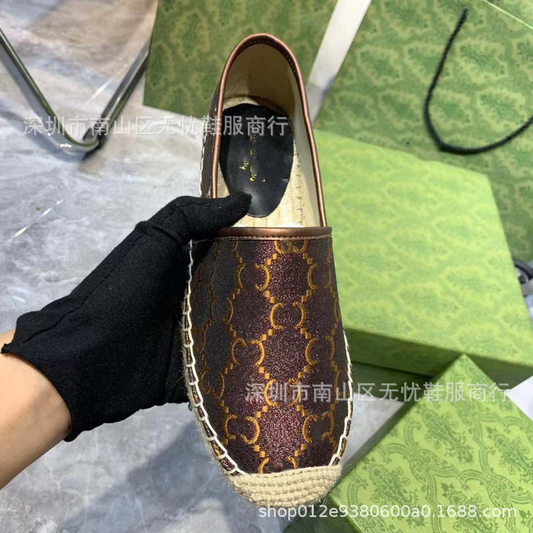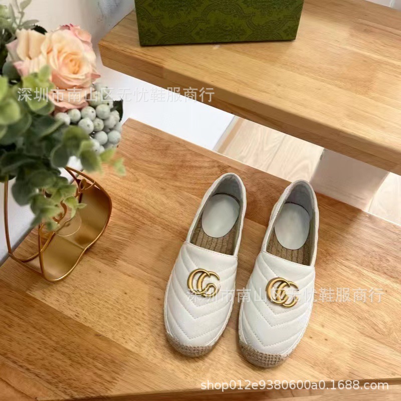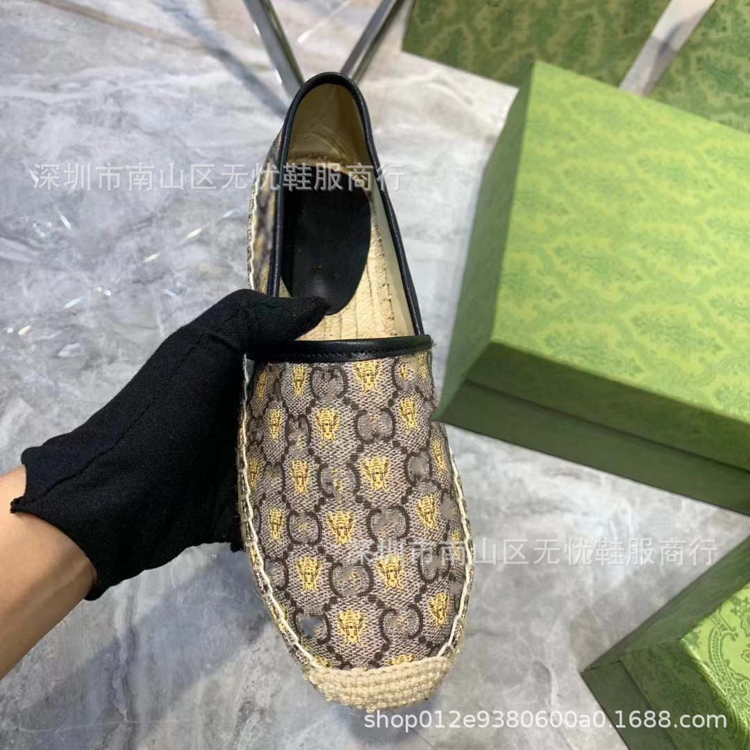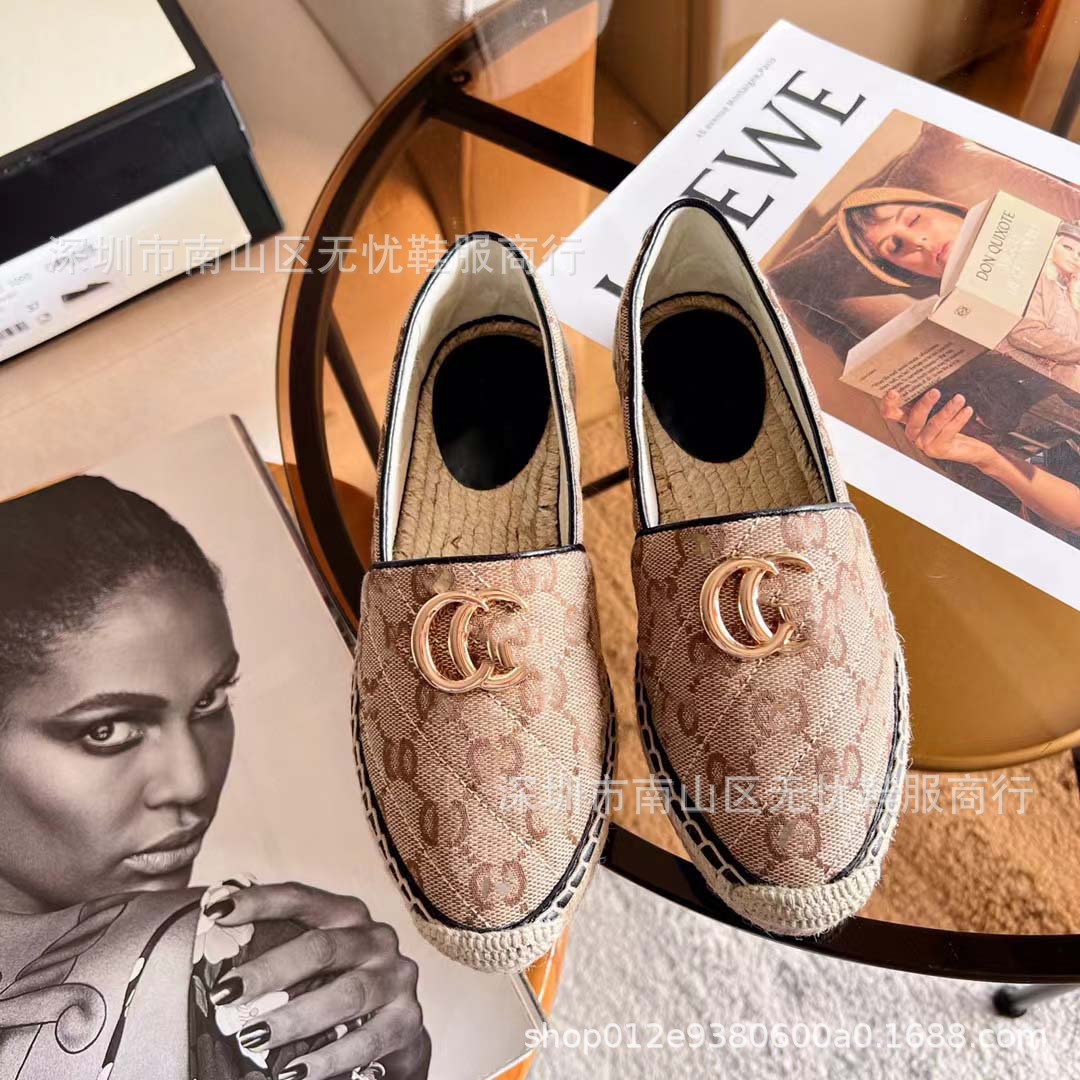 하이 버전 G 홈 자수 인쇄 어부 신발 여성의 2025 년 초 봄 밀짚 고무 바닥 가죽 얕은 입 캐주얼 신발스토어 가기