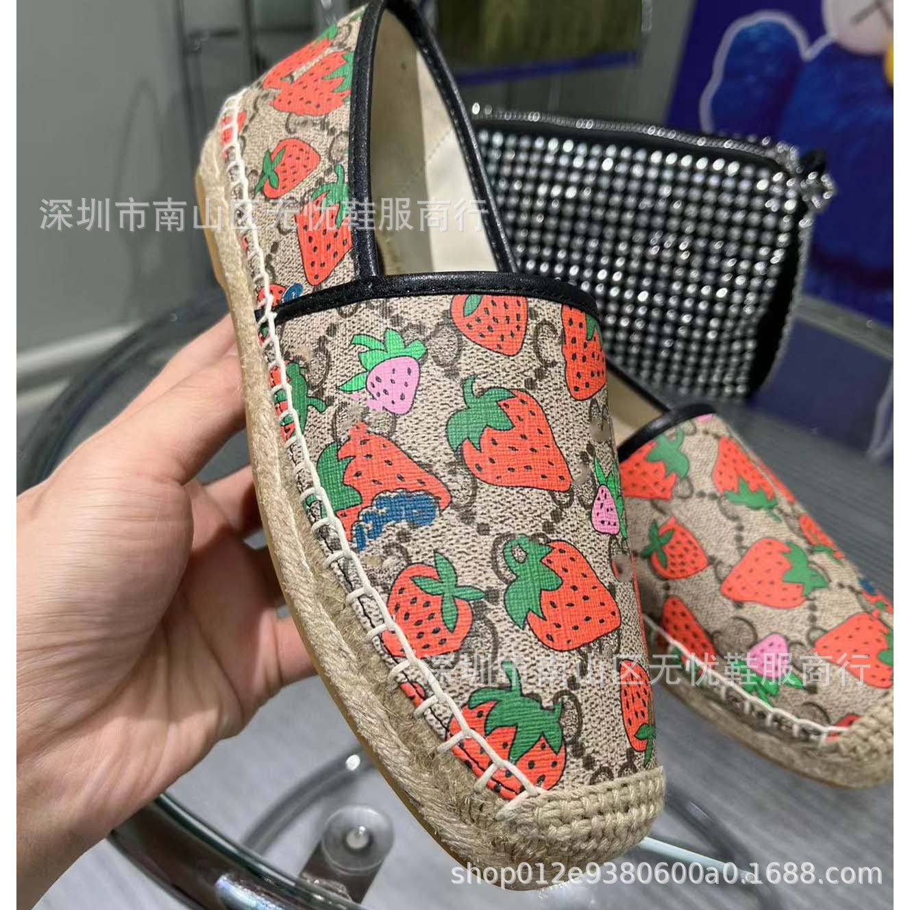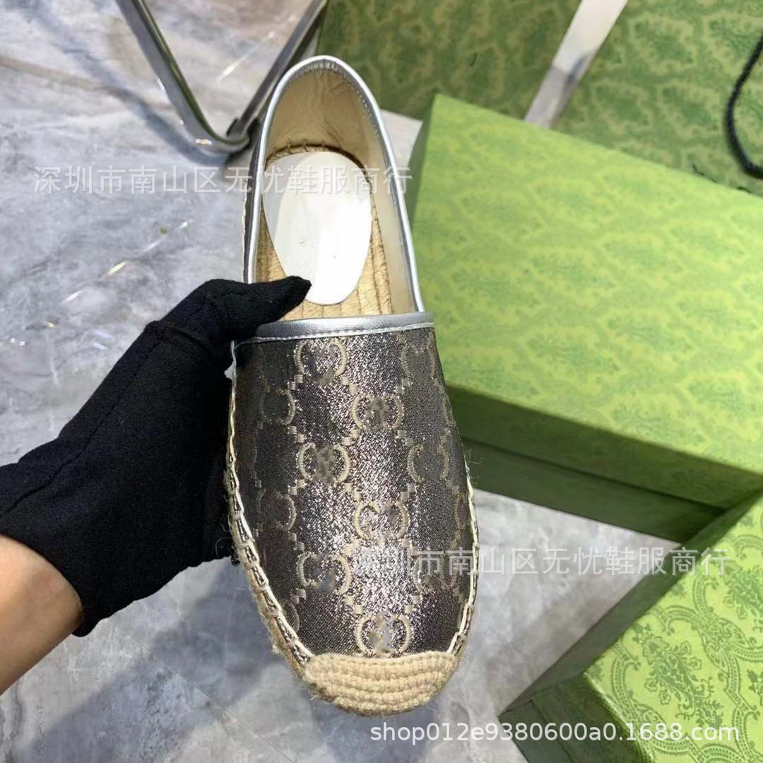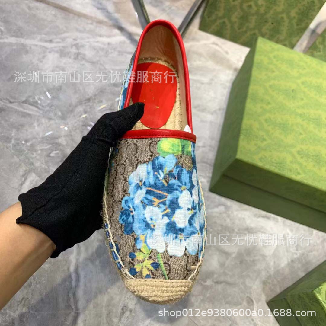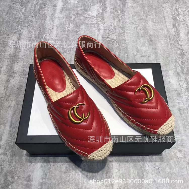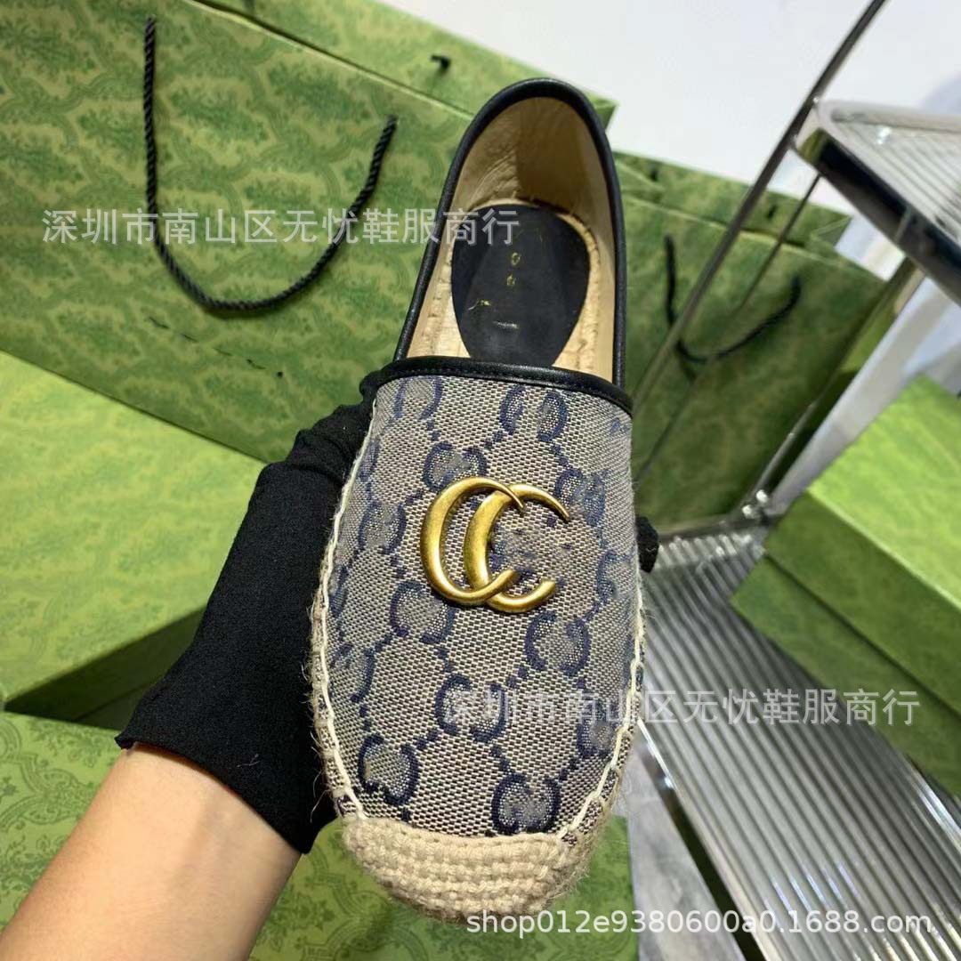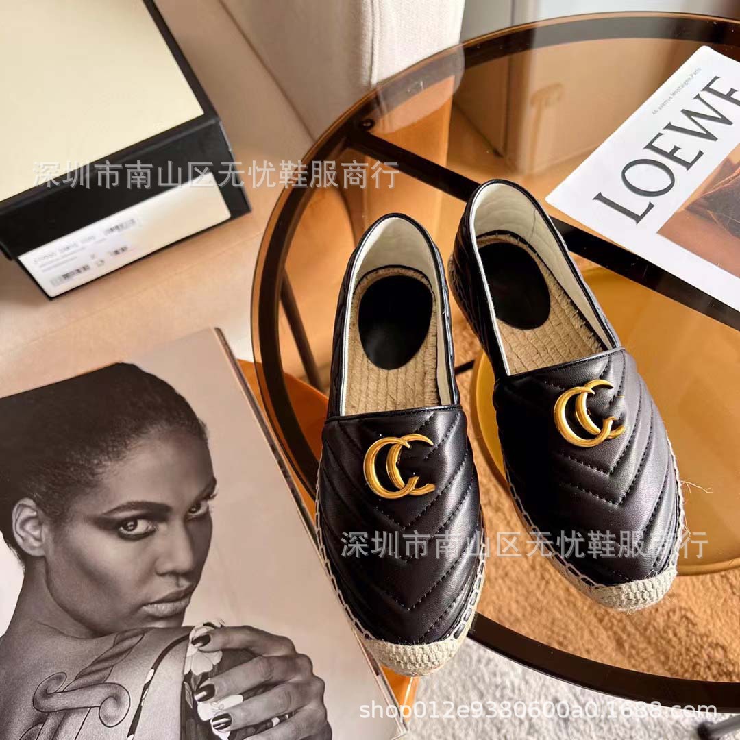 하이 버전 G 홈 자수 인쇄 어부 신발 여성의 2025 년 초 봄 밀짚 고무 바닥 가죽 얕은 입 캐주얼 신발스토어 가기
