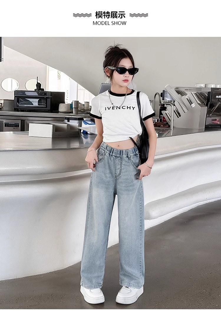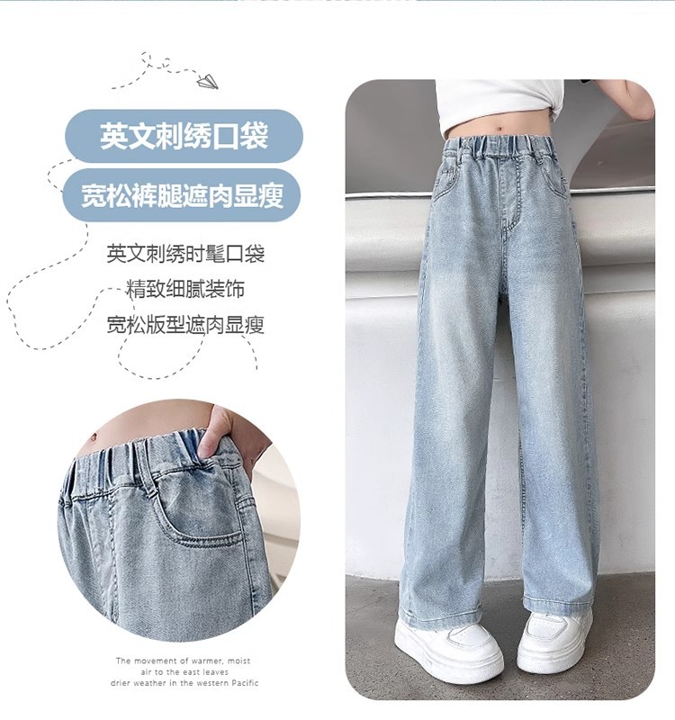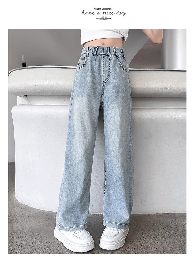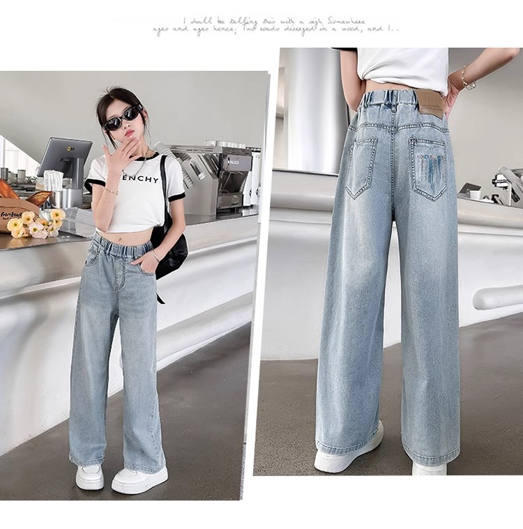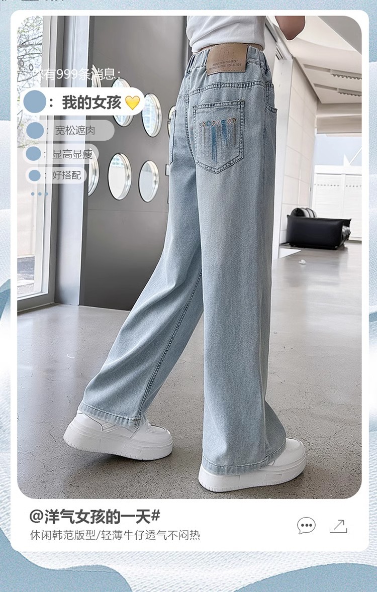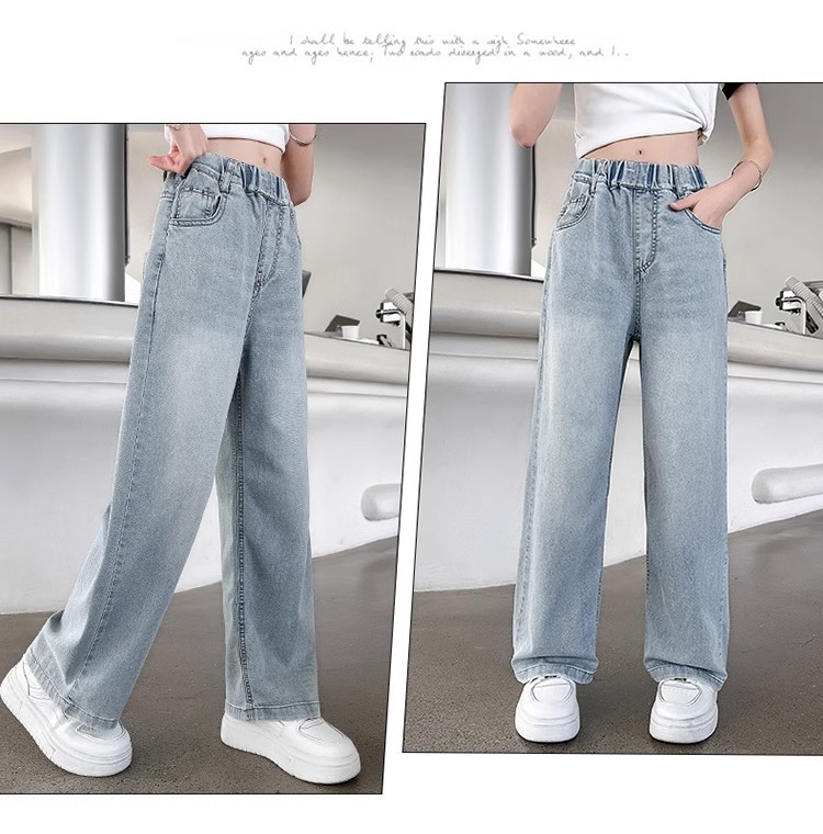 소녀 바지 2025 새로운 봄과 여름 원피스 소녀 빅 키즈 패션 세련된 스트레이트 어린이 청바지 여름 얇은스토어 가기