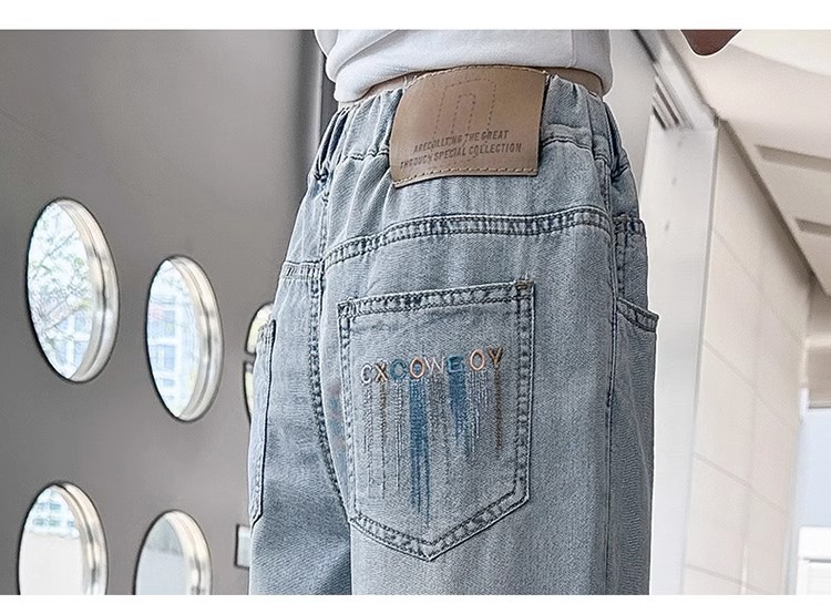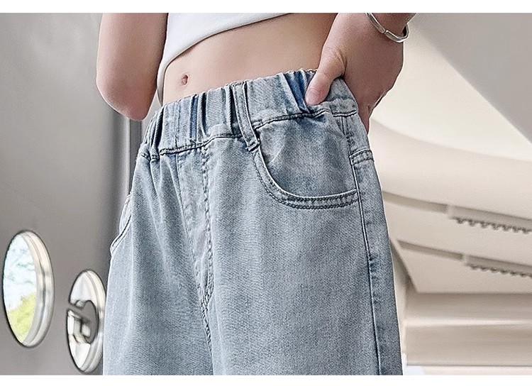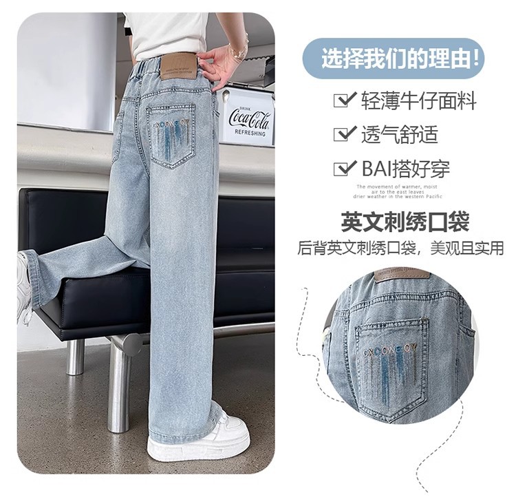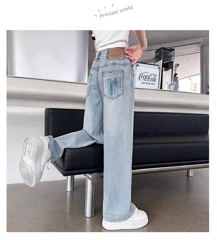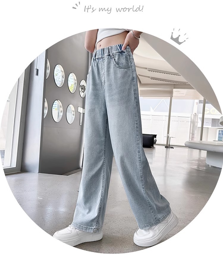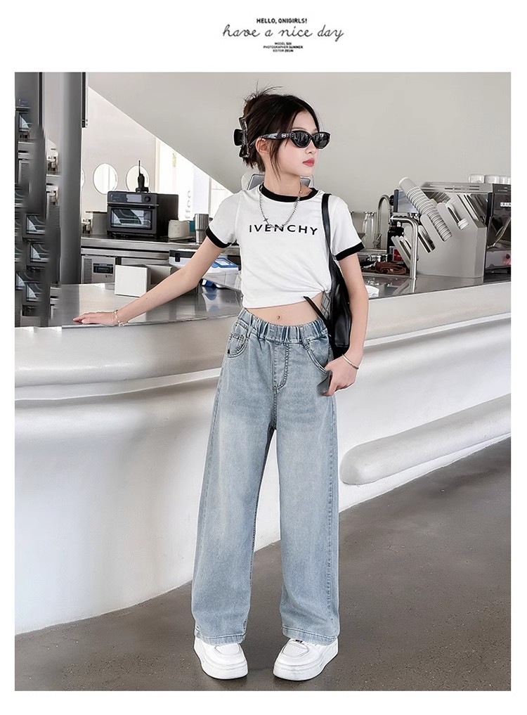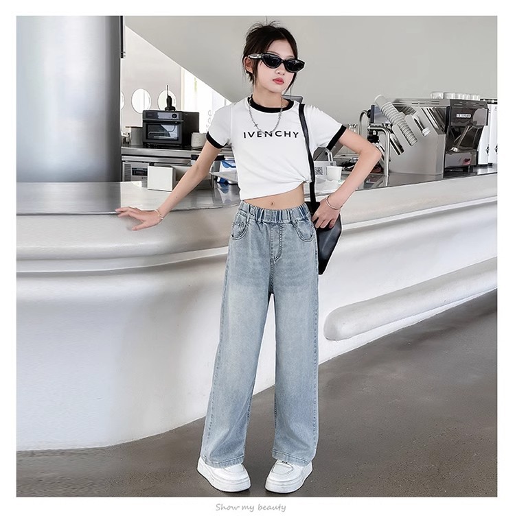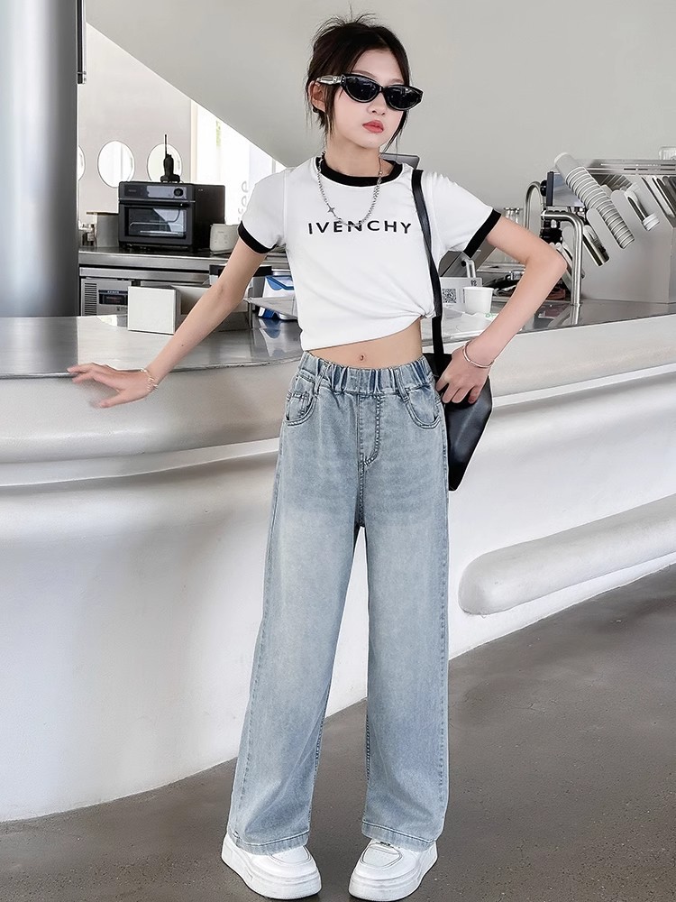 소녀 바지 2025 새로운 봄과 여름 원피스 소녀 빅 키즈 패션 세련된 스트레이트 어린이 청바지 여름 얇은스토어 가기
