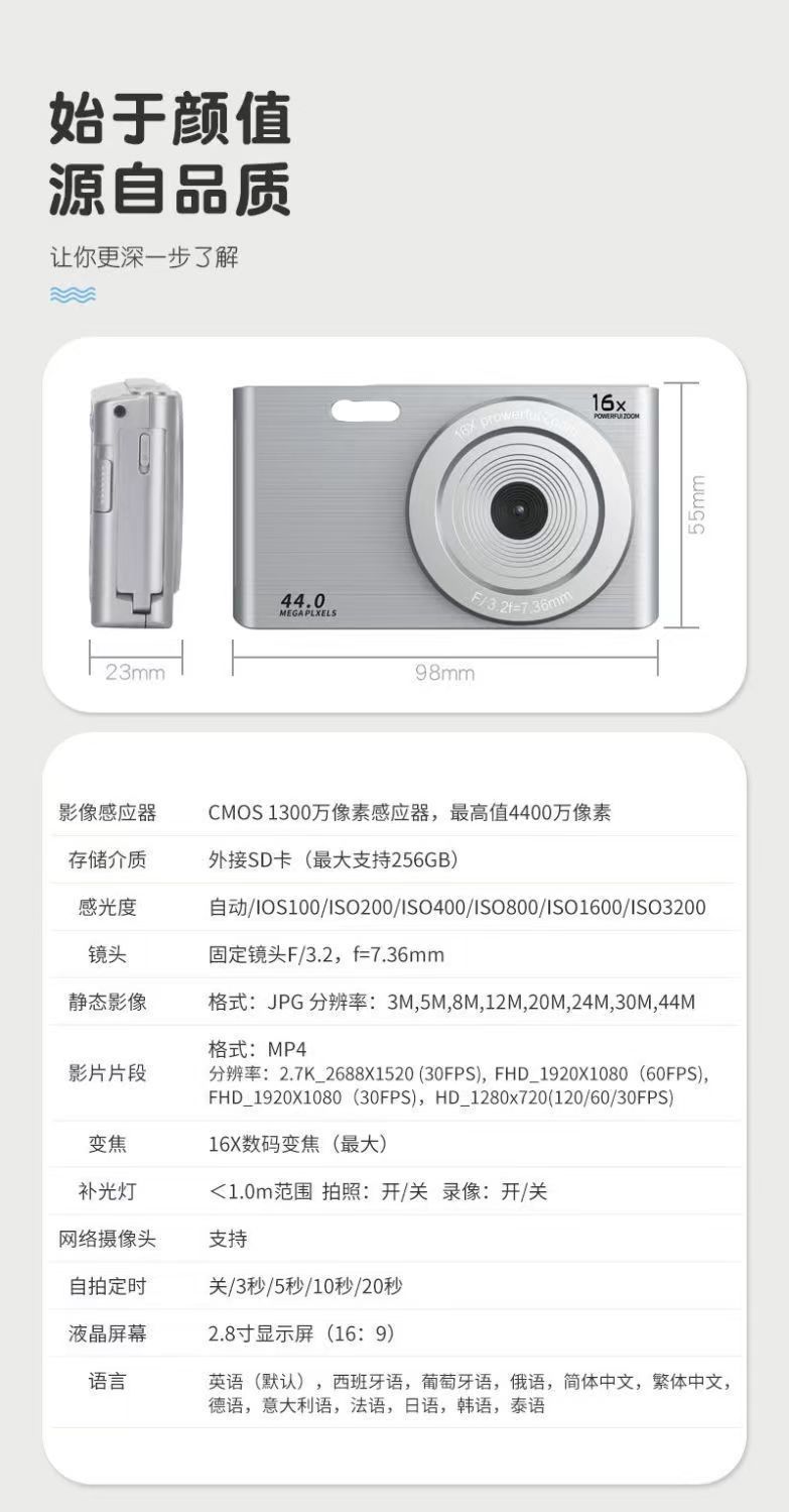 휴대폰에 업로드할 수 있는 고화소 디지털 카메라, 휴대성이 뛰어난 학생용 보급형 카드 카메라