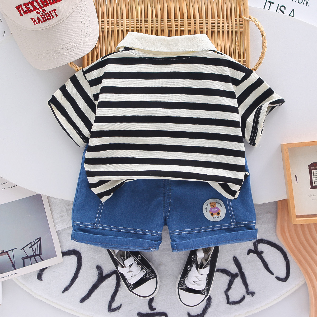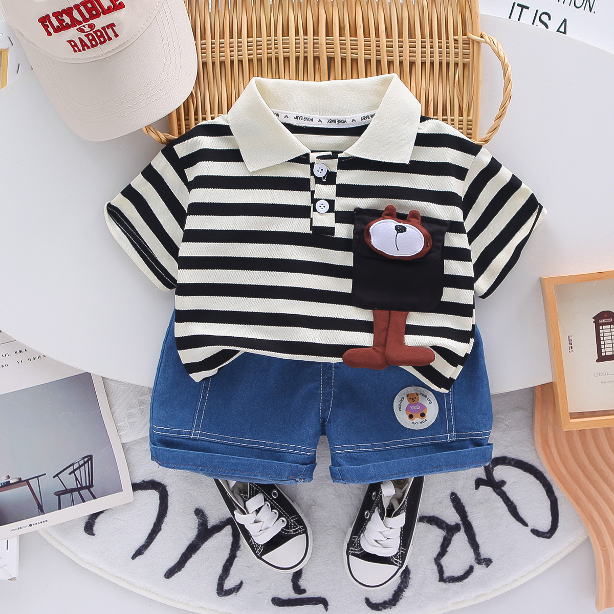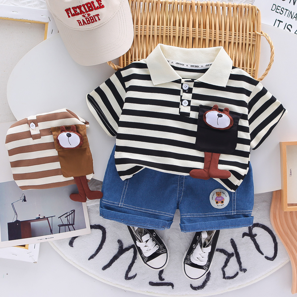 소년 여름 정장 2025 새로운 스타일 아기 얇은 폴로 셔츠 의류 어린이 여름 반팔 투피스 세트스토어 가기
