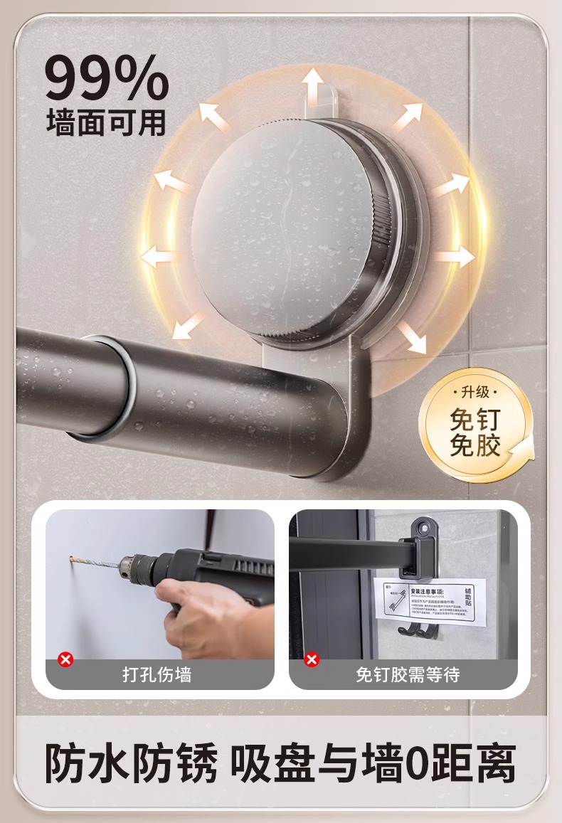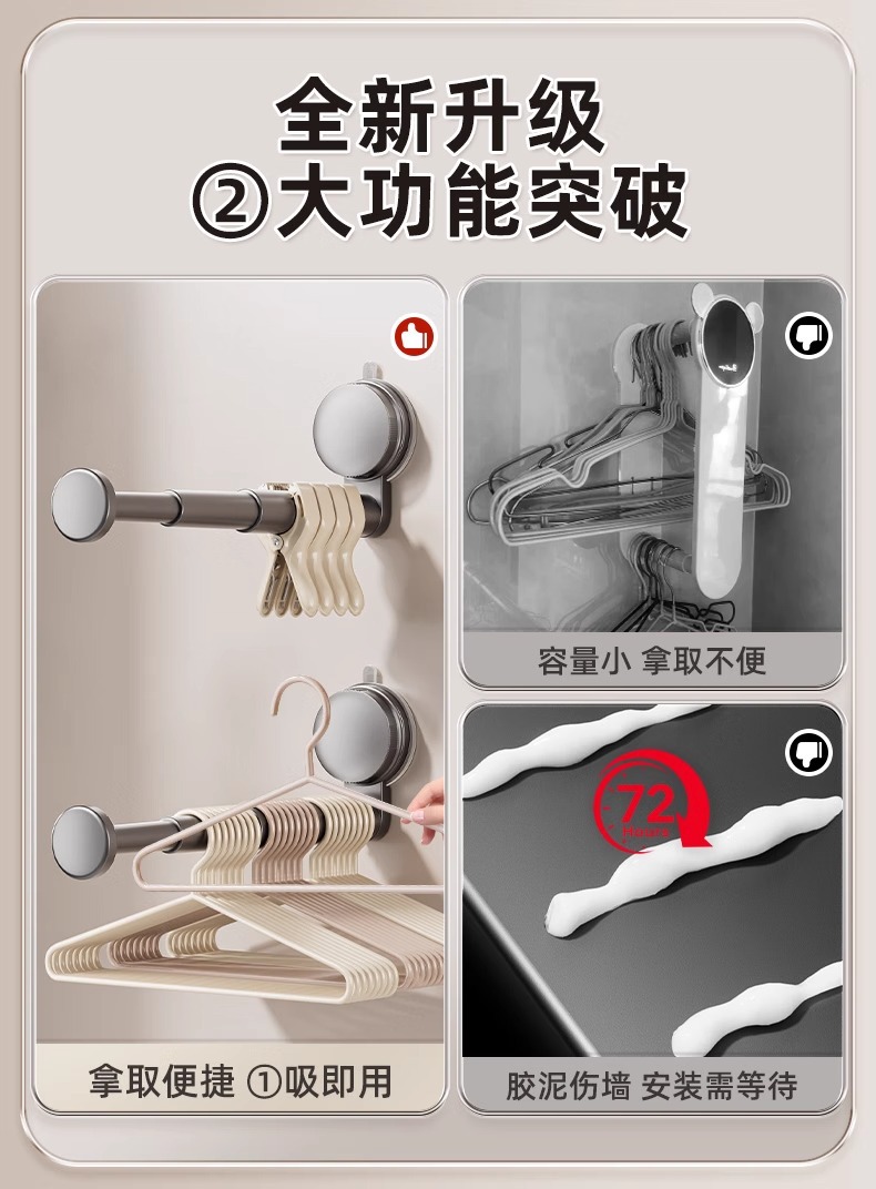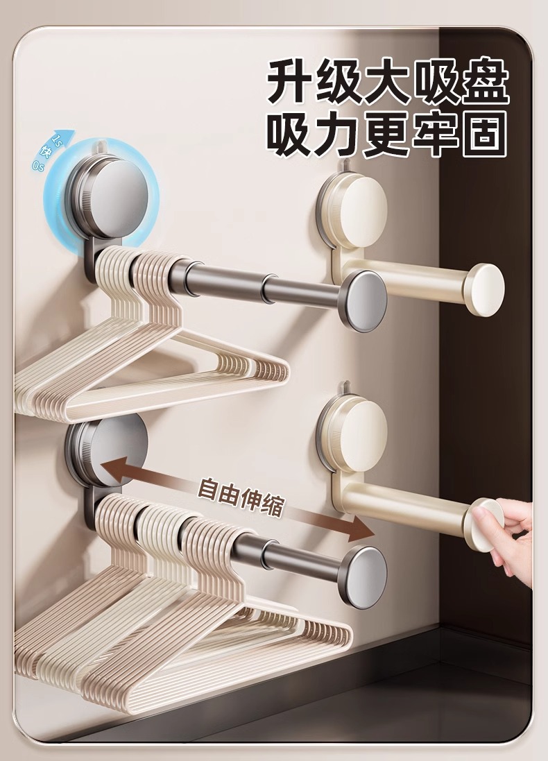 석션 컵 행거 보관 아티팩트 가정용 발코니 다기능 텔레스코픽 비 펀치 벽 교수형 원활한 옷 랙스토어 가기