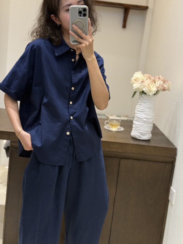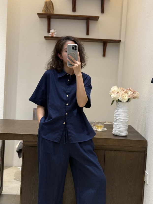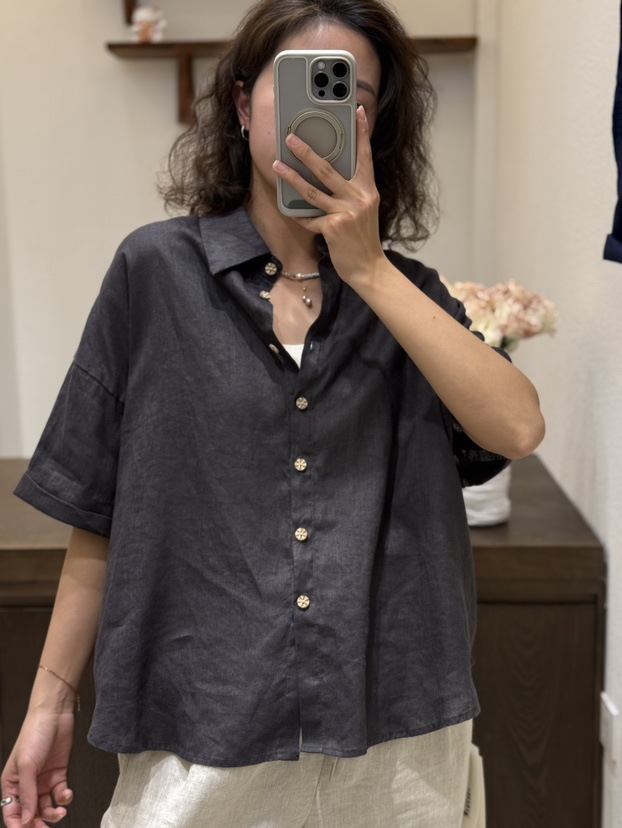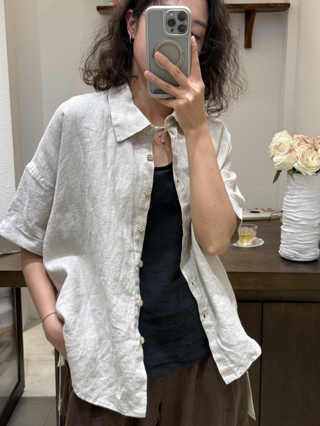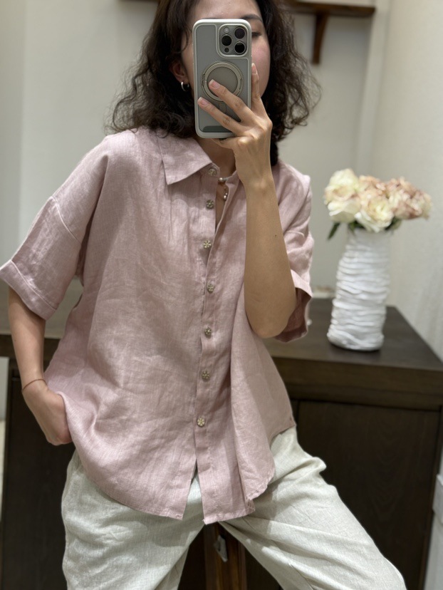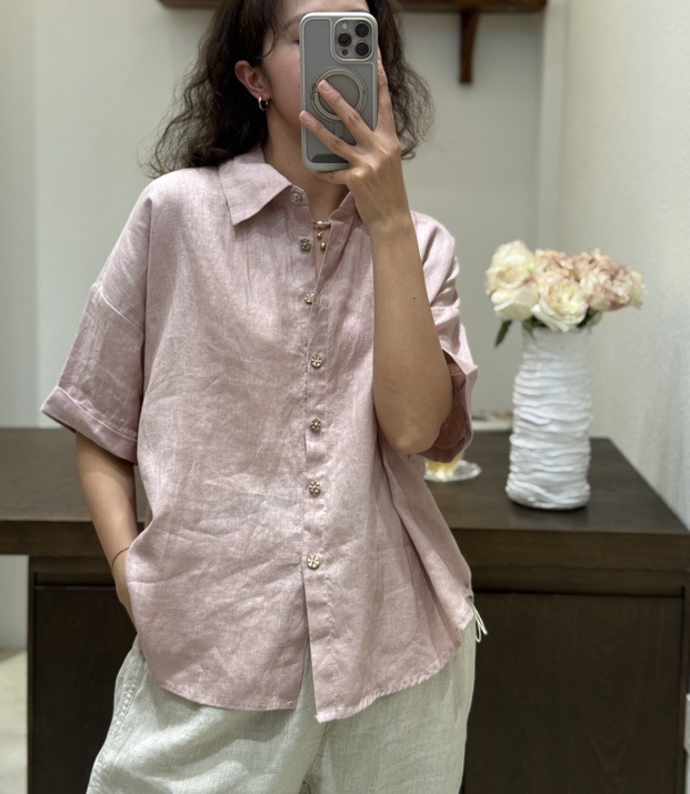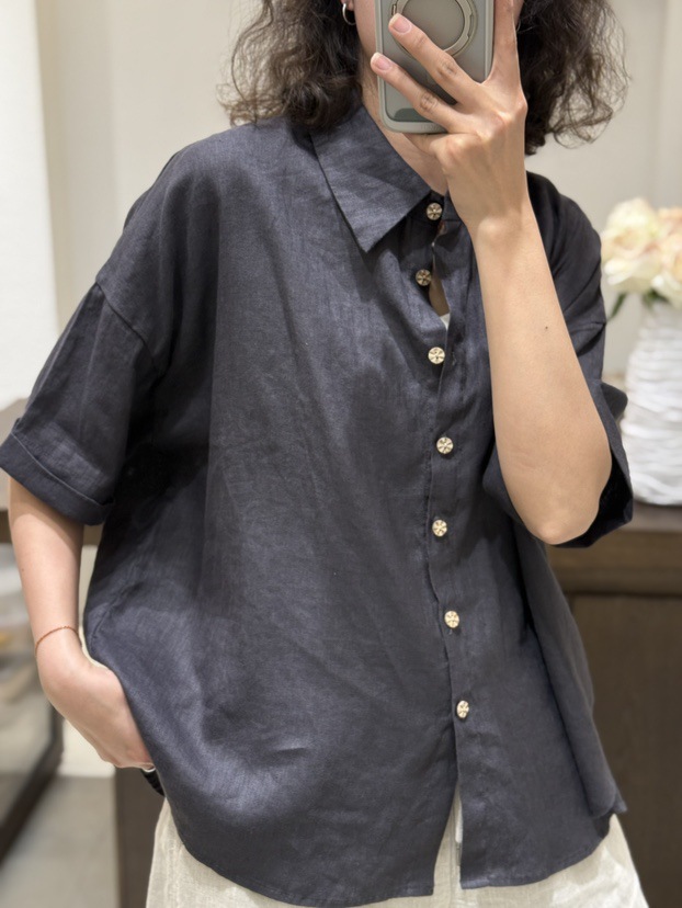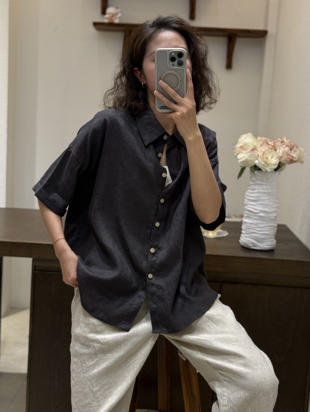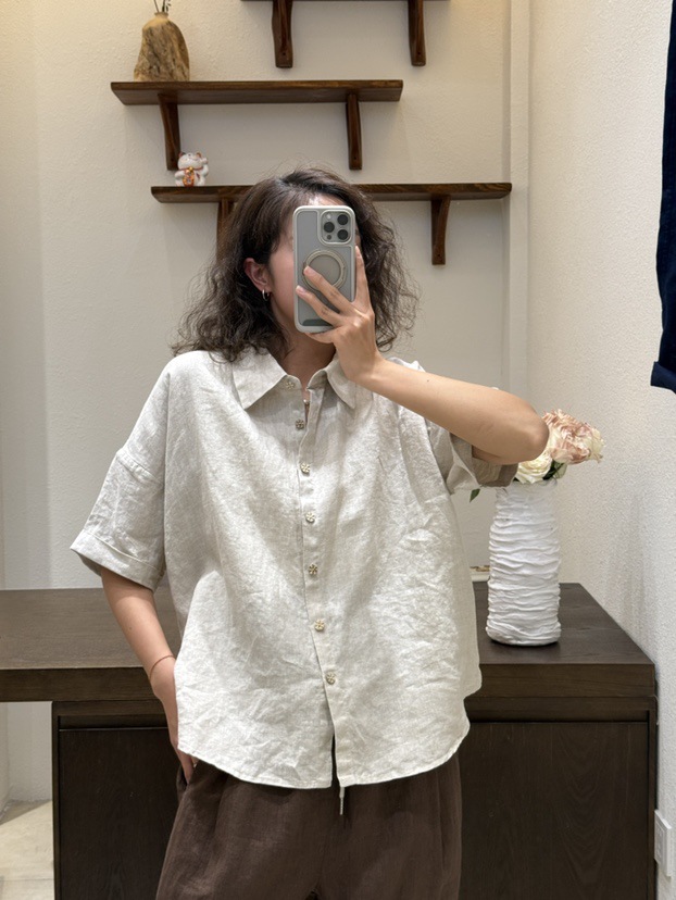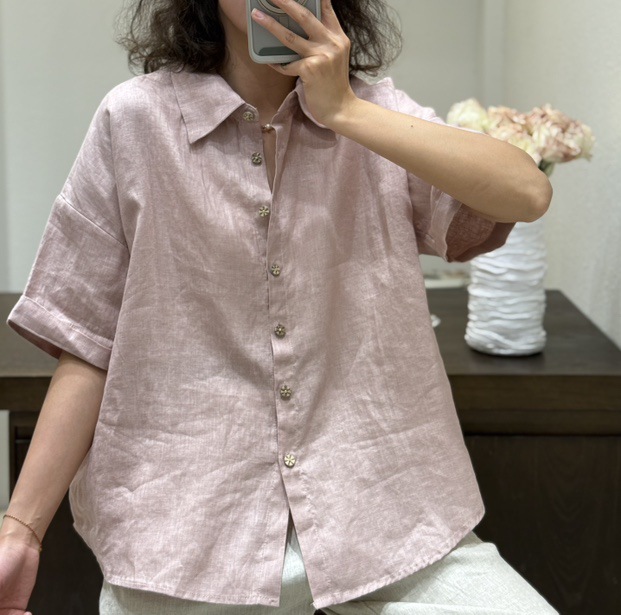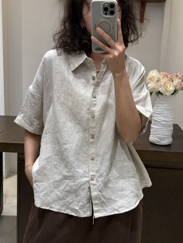 반팔 린넨 셔츠 여성의 여름 간단한 패션 유럽 제품 큰 옷깃 느슨한 슬림 캐주얼 카디건 탑스토어 가기