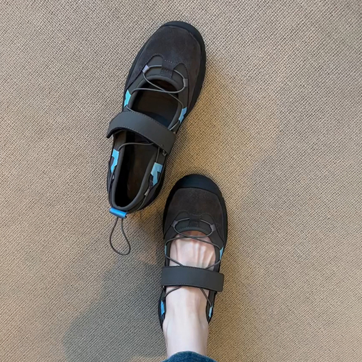 양가죽 버전 ~ 빈티지 등산 운동화 두꺼운 밑창 메리 제인 신발 여성 벨크로 기능성 정품 가죽 올매치 싱글 레이어 신발스토어 가기