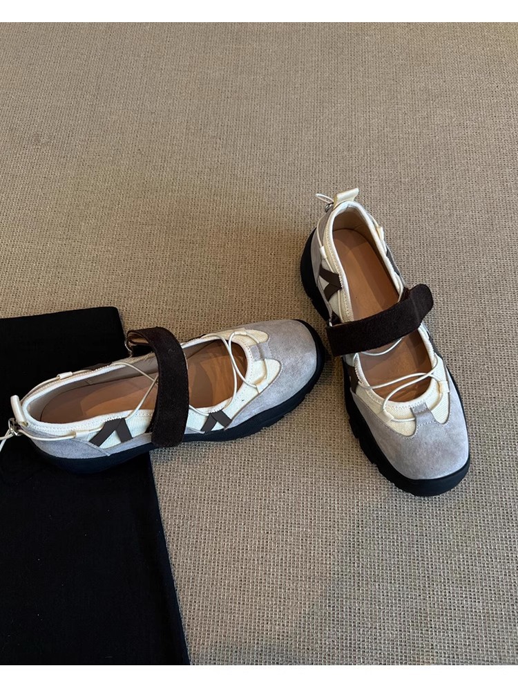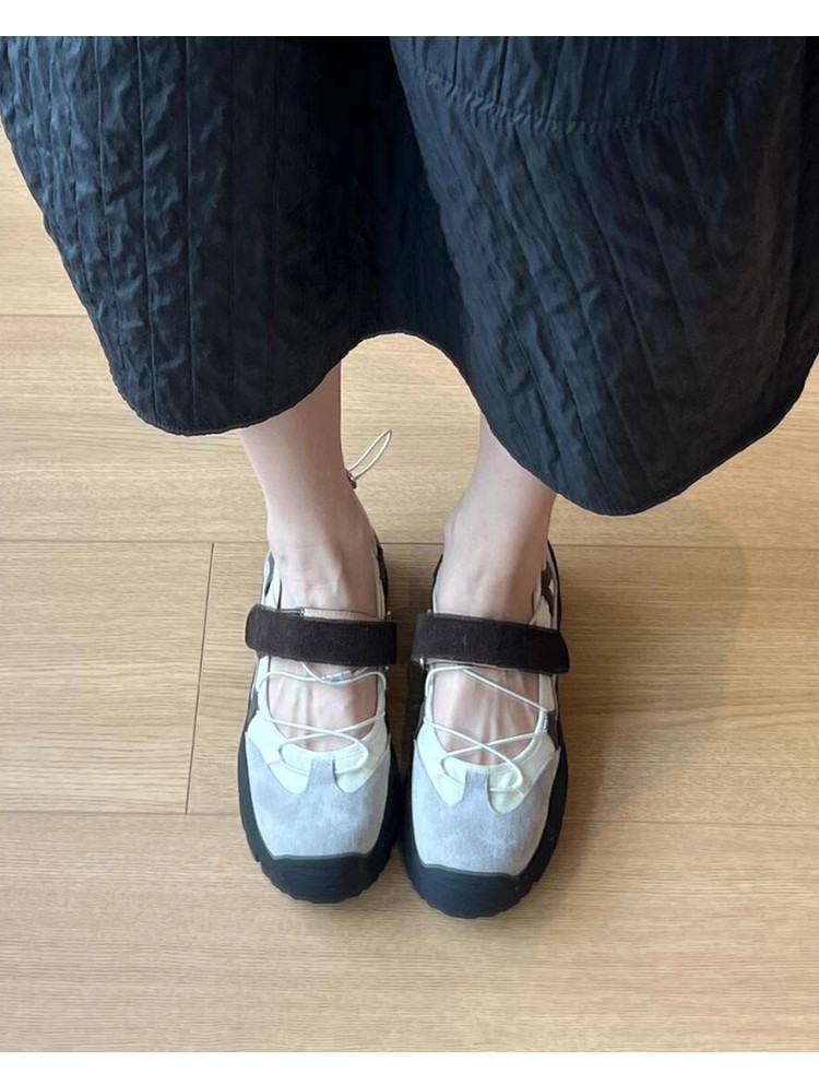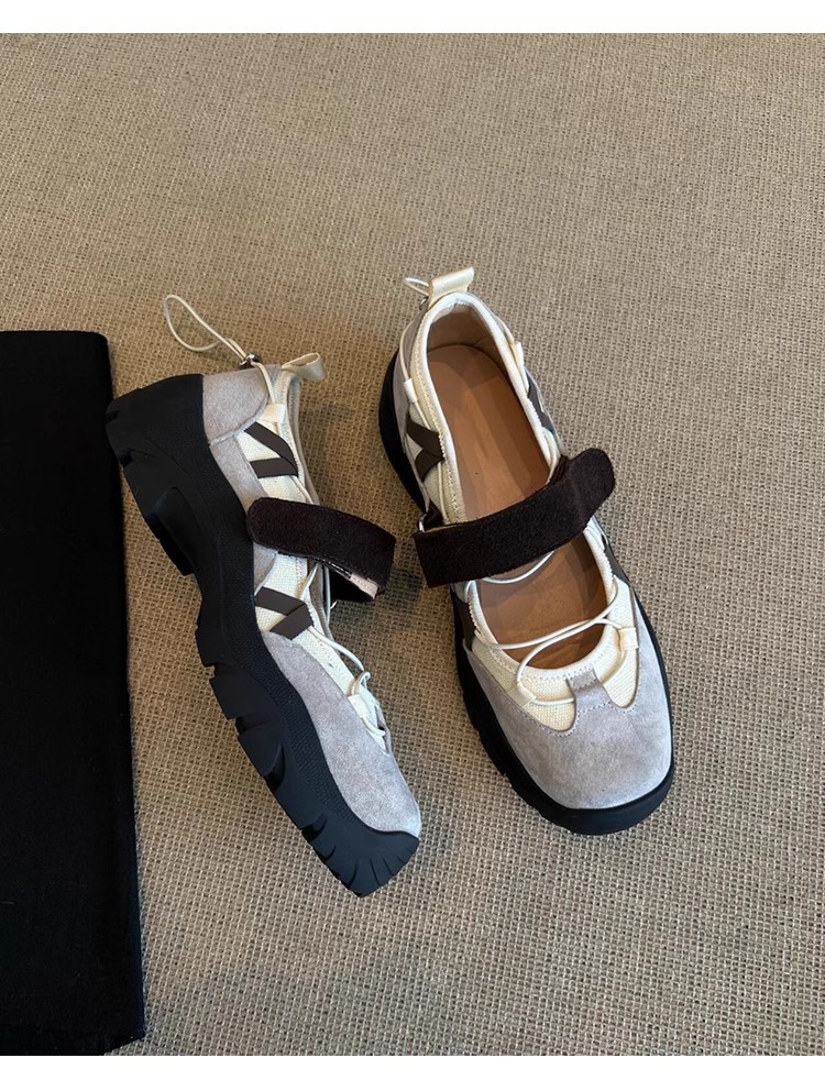 양가죽 버전 ~ 빈티지 등산 운동화 두꺼운 밑창 메리 제인 신발 여성 벨크로 기능성 정품 가죽 올매치 싱글 레이어 신발