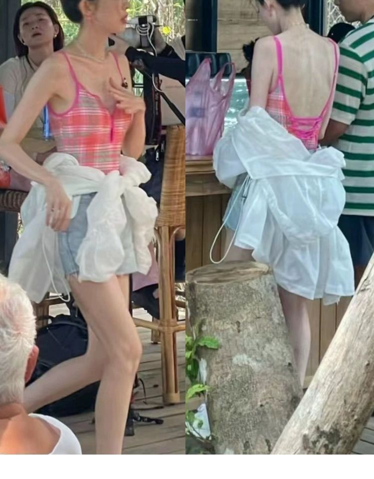 꽃과 소녀 나자 같은 스타일의 원피스 복고풍 핑크 체크 무늬 섹시한 백리스 스트랩 슬리밍 여성용 휴가 수영복스토어 가기