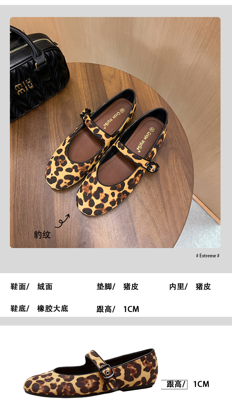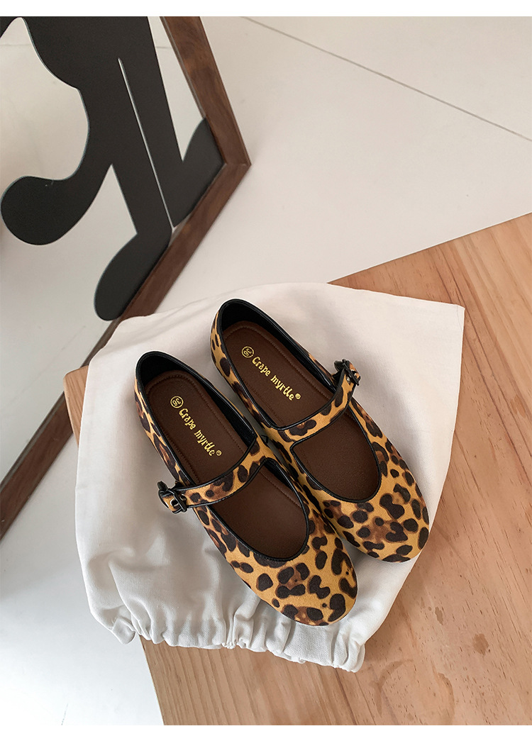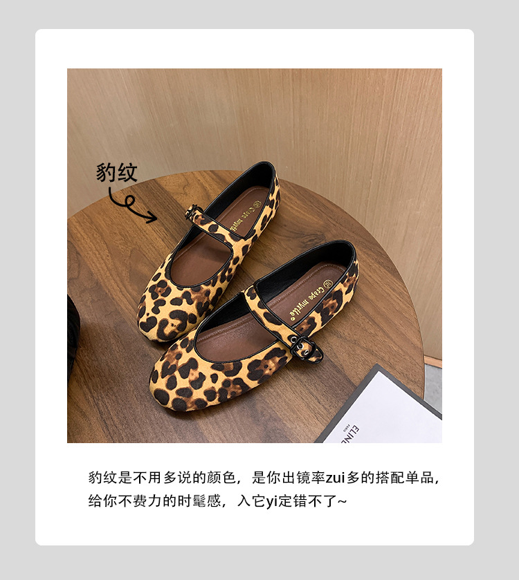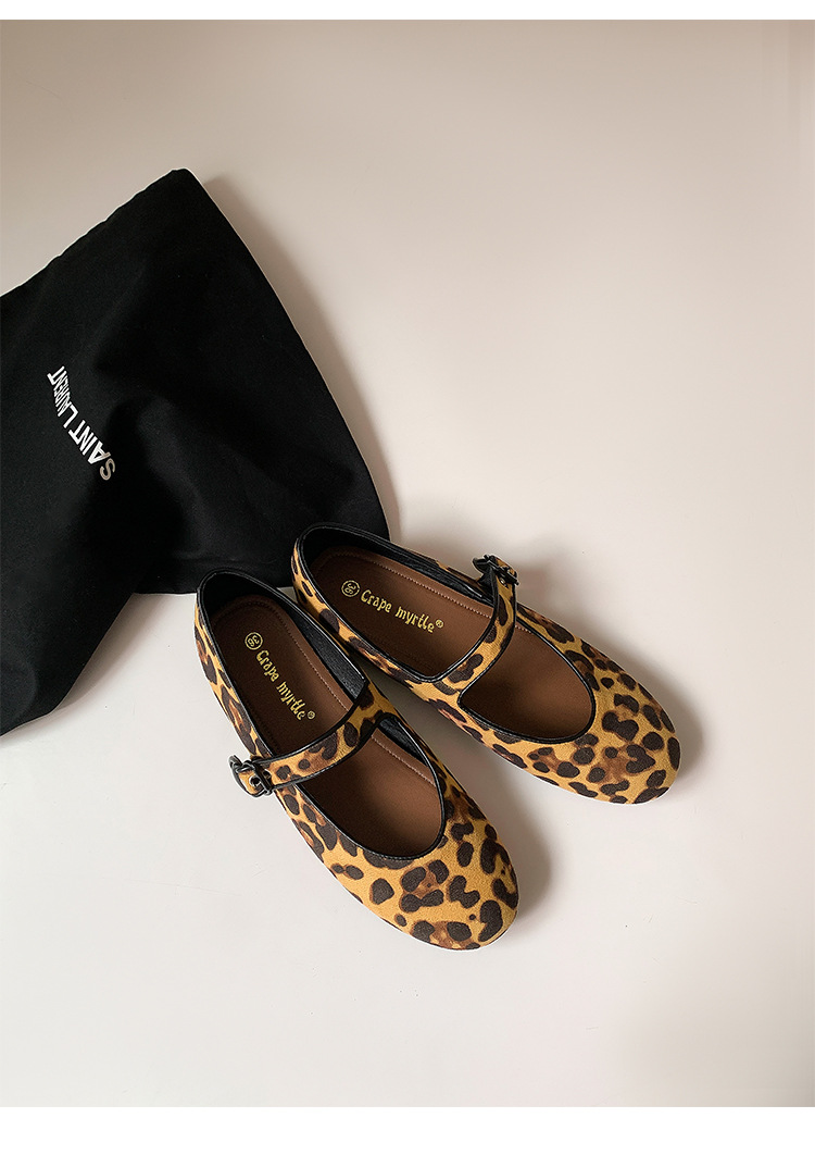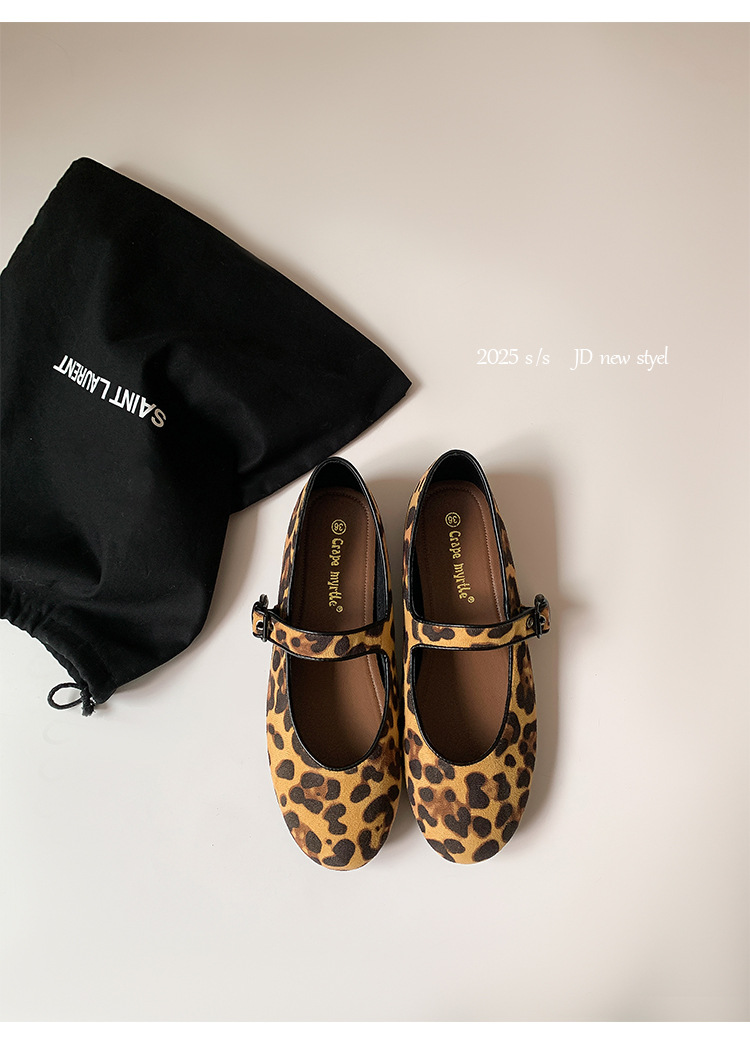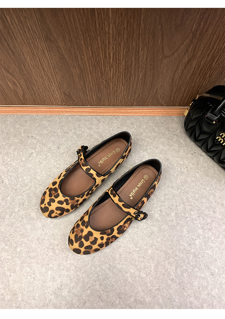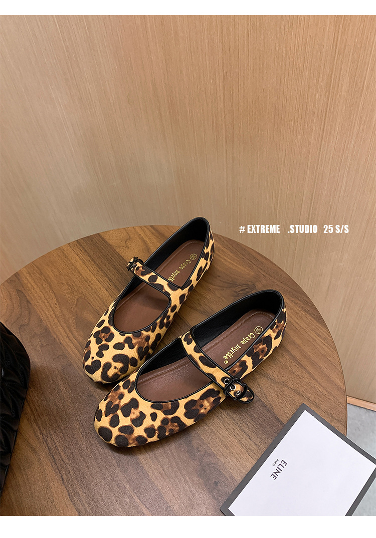 2025 봄 신상 라운드 토 레오파드 버클 플랫 메리제인 발레 슈즈 여성용 할머니 신발스토어 가기
