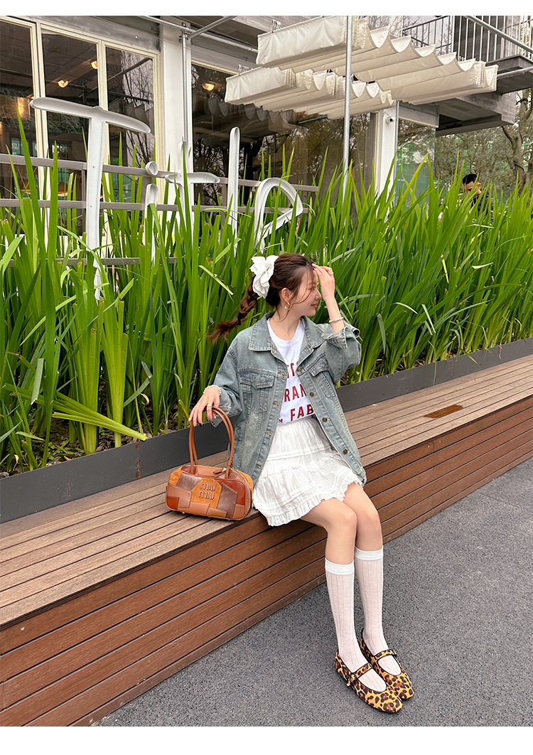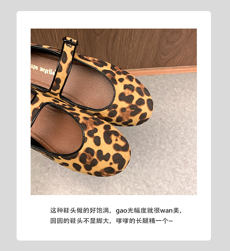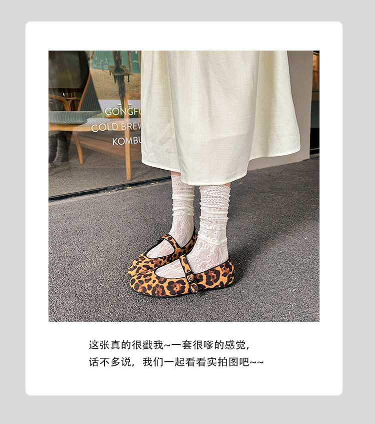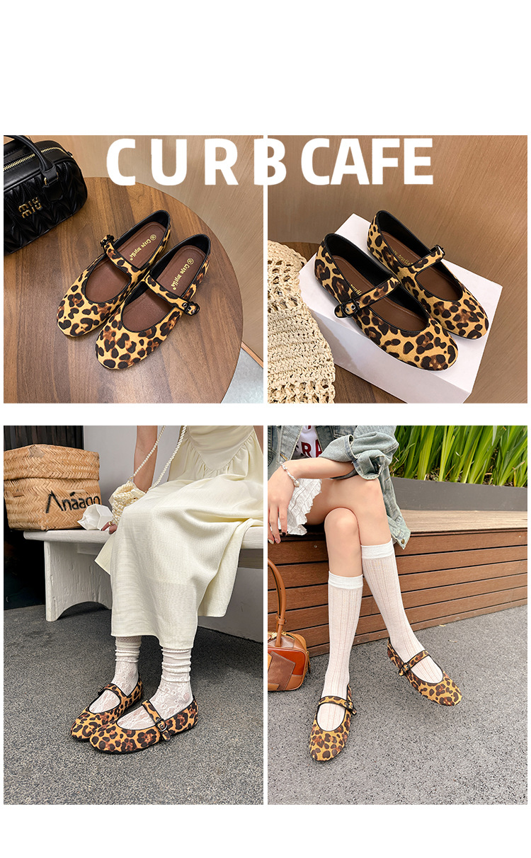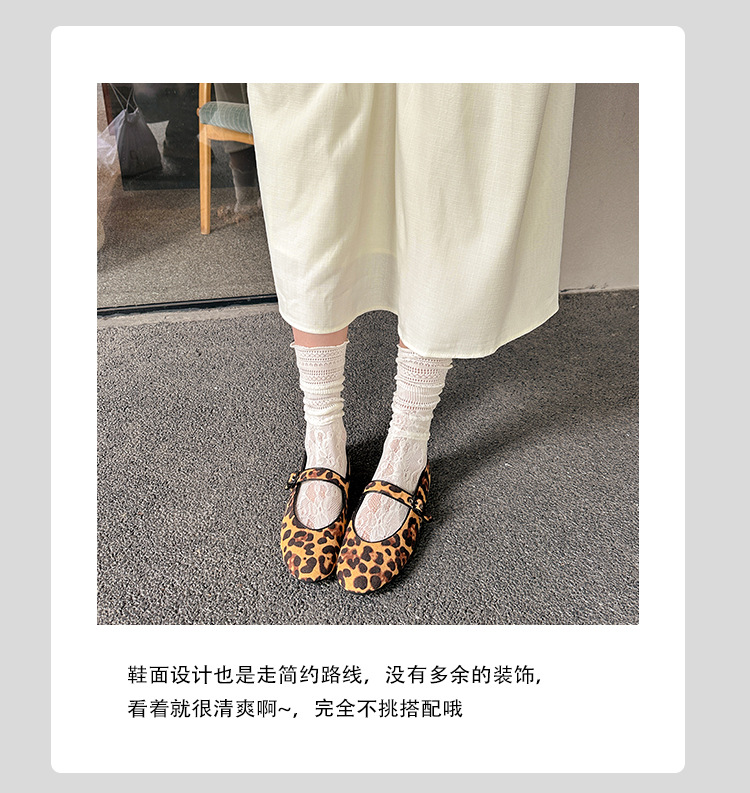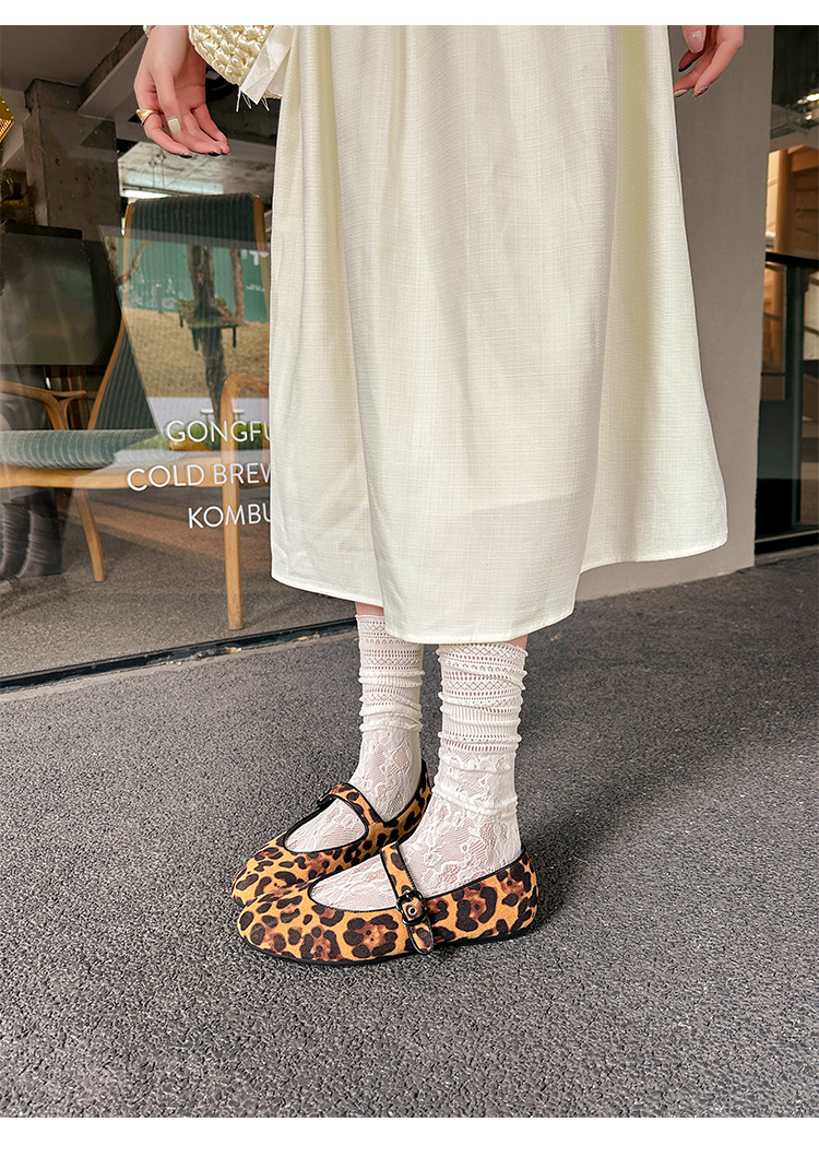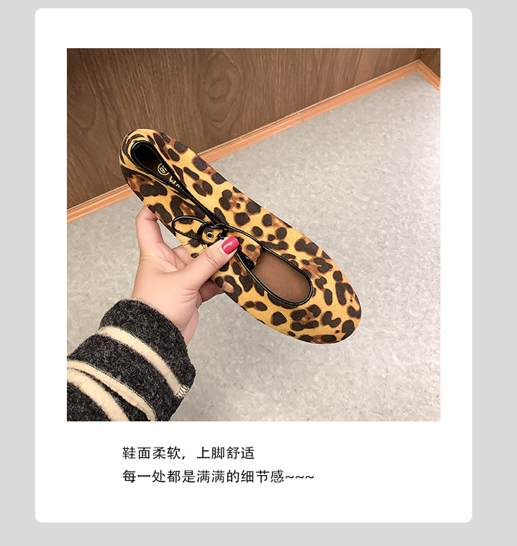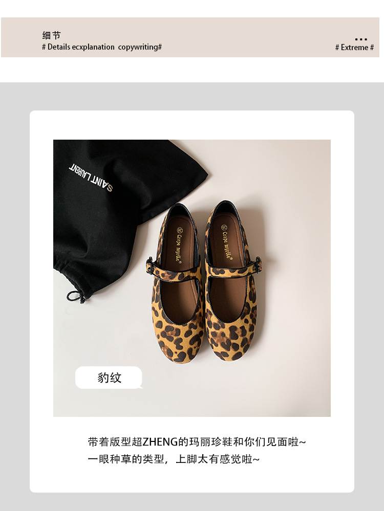 2025 봄 신상 라운드 토 레오파드 버클 플랫 메리제인 발레 슈즈 여성용 할머니 신발스토어 가기
